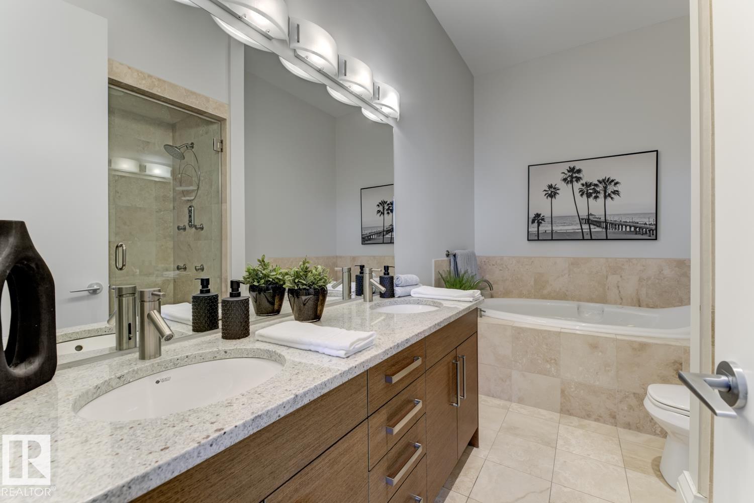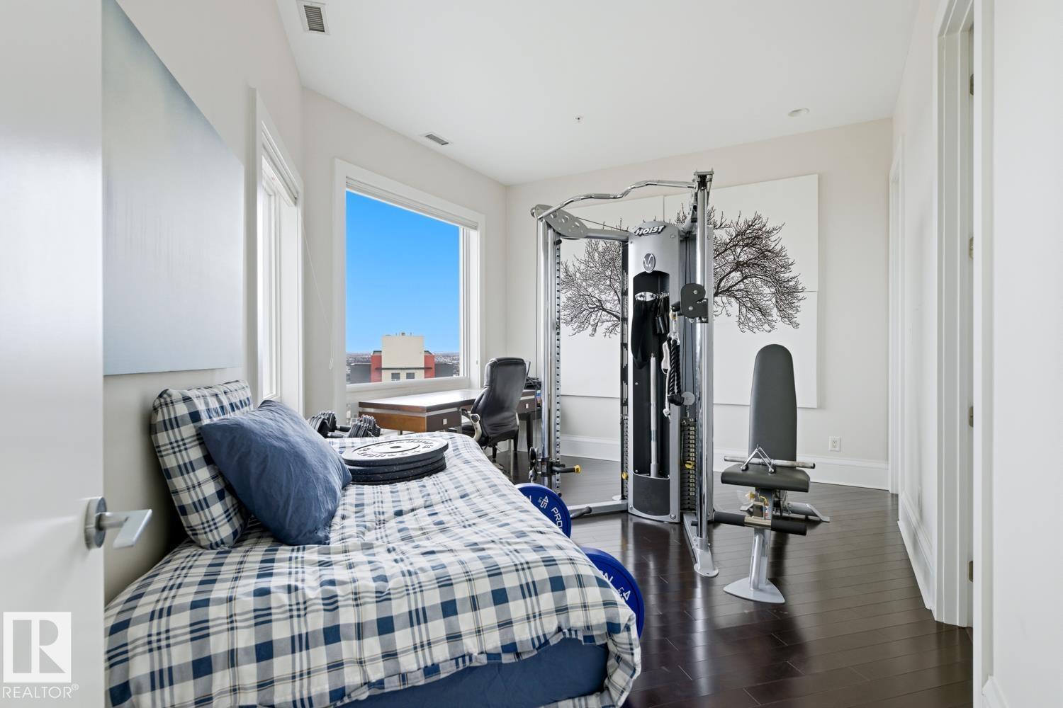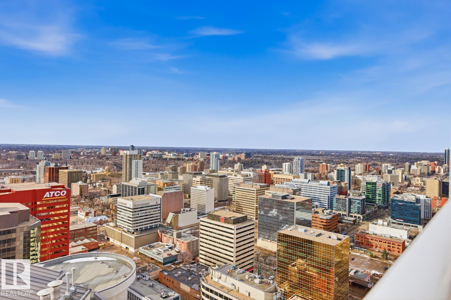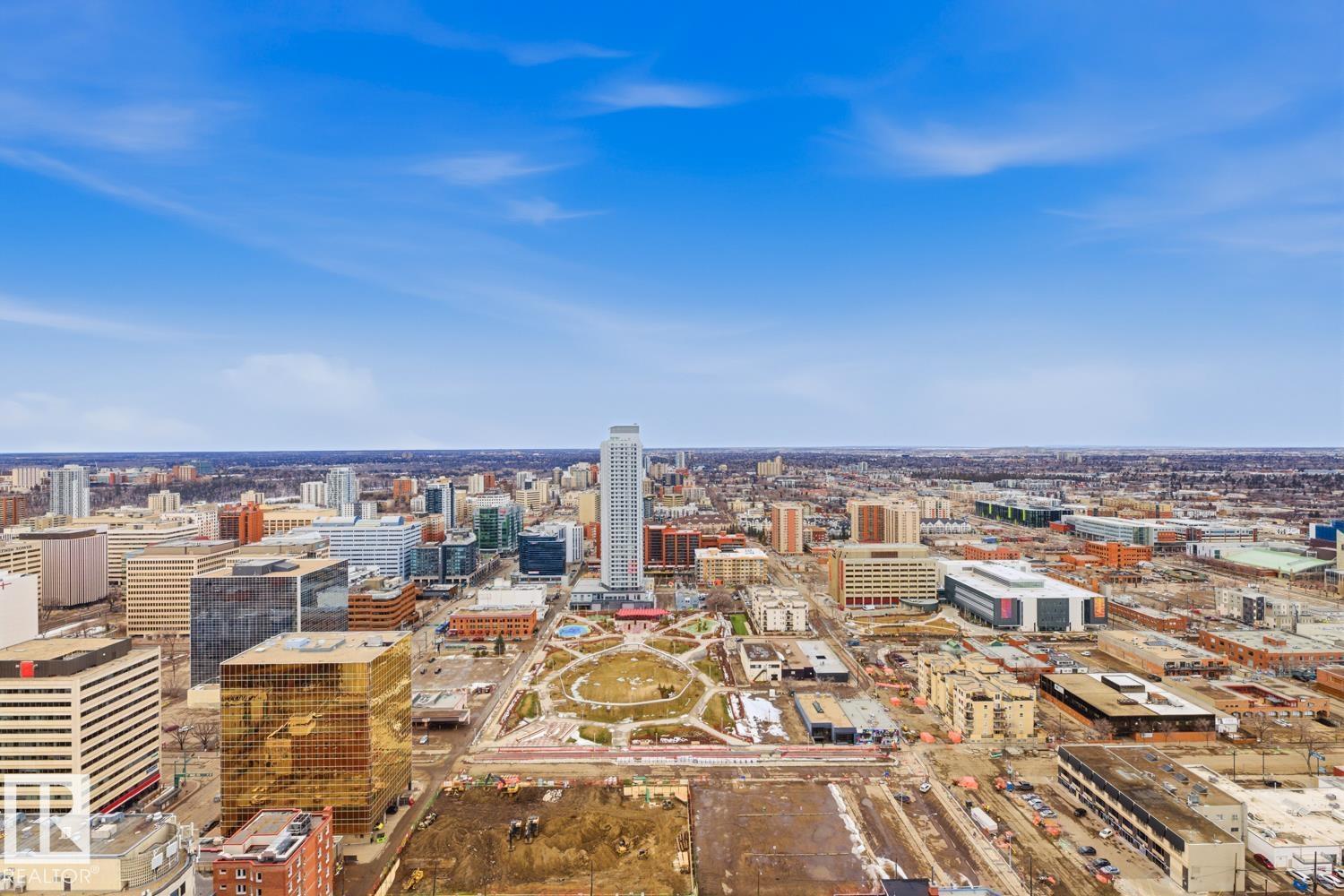 A rare opportunity to claim the penthouse in Icon II — where you can enjoy sweeping views over Edmonton expand from the Ice District to the horizon, over your daily morning coffee. Soaring 10’ ceilings and expansive walls of glass fill the space with natural light and frame the city below. The kitchen is both elegant and functional, finished with granite countertops, stainless steel appliances and rich hardwood flooring, all flowing seamlessly into the spacious living room with fireplace and an expansive dining area. Designed with privacy and comfort in mind, there are two beautifully appointed bedroom suites, each with its own ensuite. The primary retreat is further enhanced by a wraparound balcony, large walk-in closet, and stylish ensuite. A second private balcony, in-suite laundry, and a sleek 2-piece powder room add further convenience and functionality. Complete with two titled underground parking stalls and the security of a well-managed building, this is elevated downtown living at its finest. (id:51989)