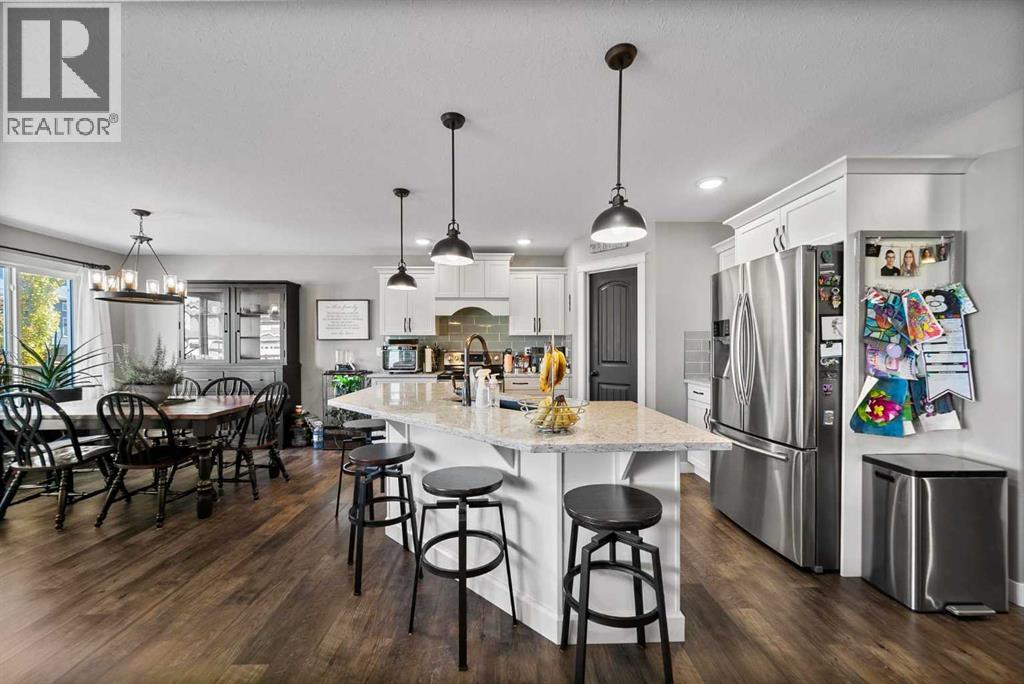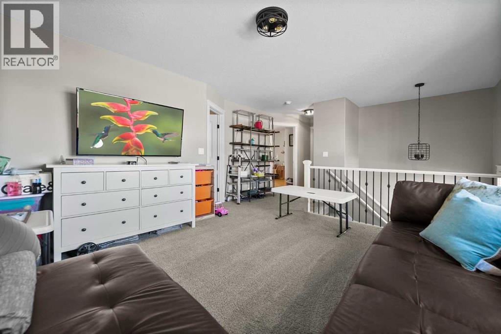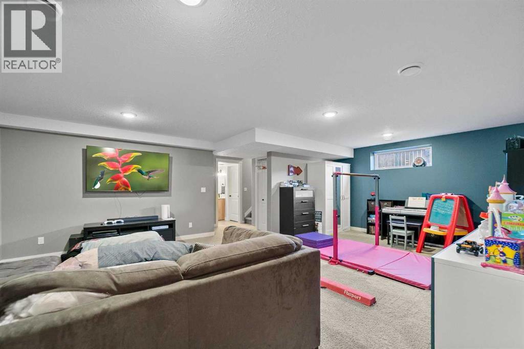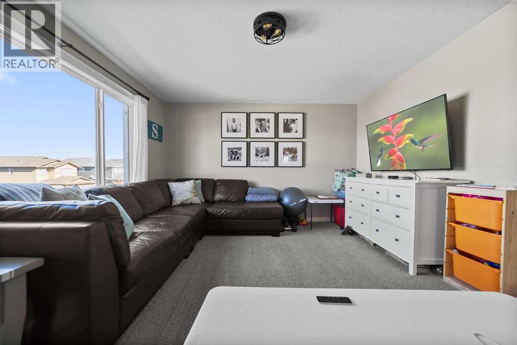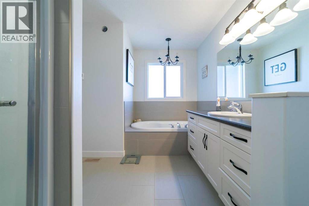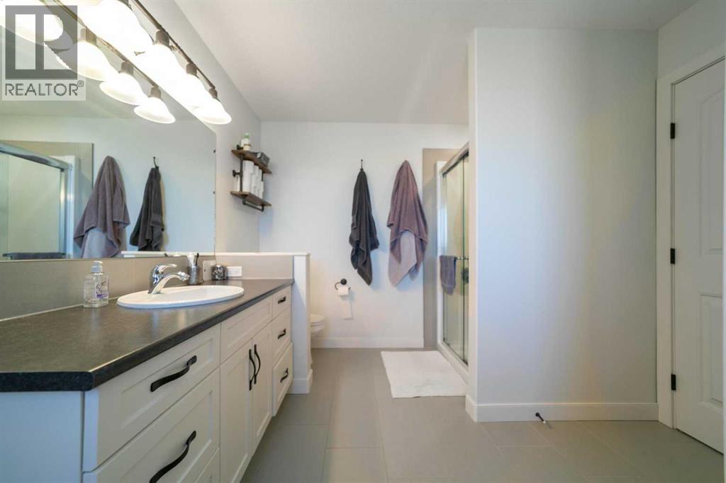 Beautiful and bright two storey home located in the family friendly neighbourhood of Creekview. The main floor is both spacious and bright and features a wonderful kitchen and dining area with quartz counter tops, cozy family room with gas fireplace, walk through pantry and main floor laundry room. Upstairs you'll love the bonus rooms that act's as another family/sitting room, three bedrooms, one of which is the primary bedroom with ensuite and walk in closet. Downstairs is fully finished and complete with family room, bedroom and bathroom. Outside you'll enjoy the lovely covered back deck that leads to a beautiful yard that has been well looked after and maintained. Central air conditioning, attached heated garage, exterior spa plug for hot tub, zone heating, 30 amp RV plug and additional side yard parking all in one of Camrose's most sought after subdivisions. Close to the U of A, Camrose Hospital and connected to the miles of breathtaking walking paths! (id:51989)
