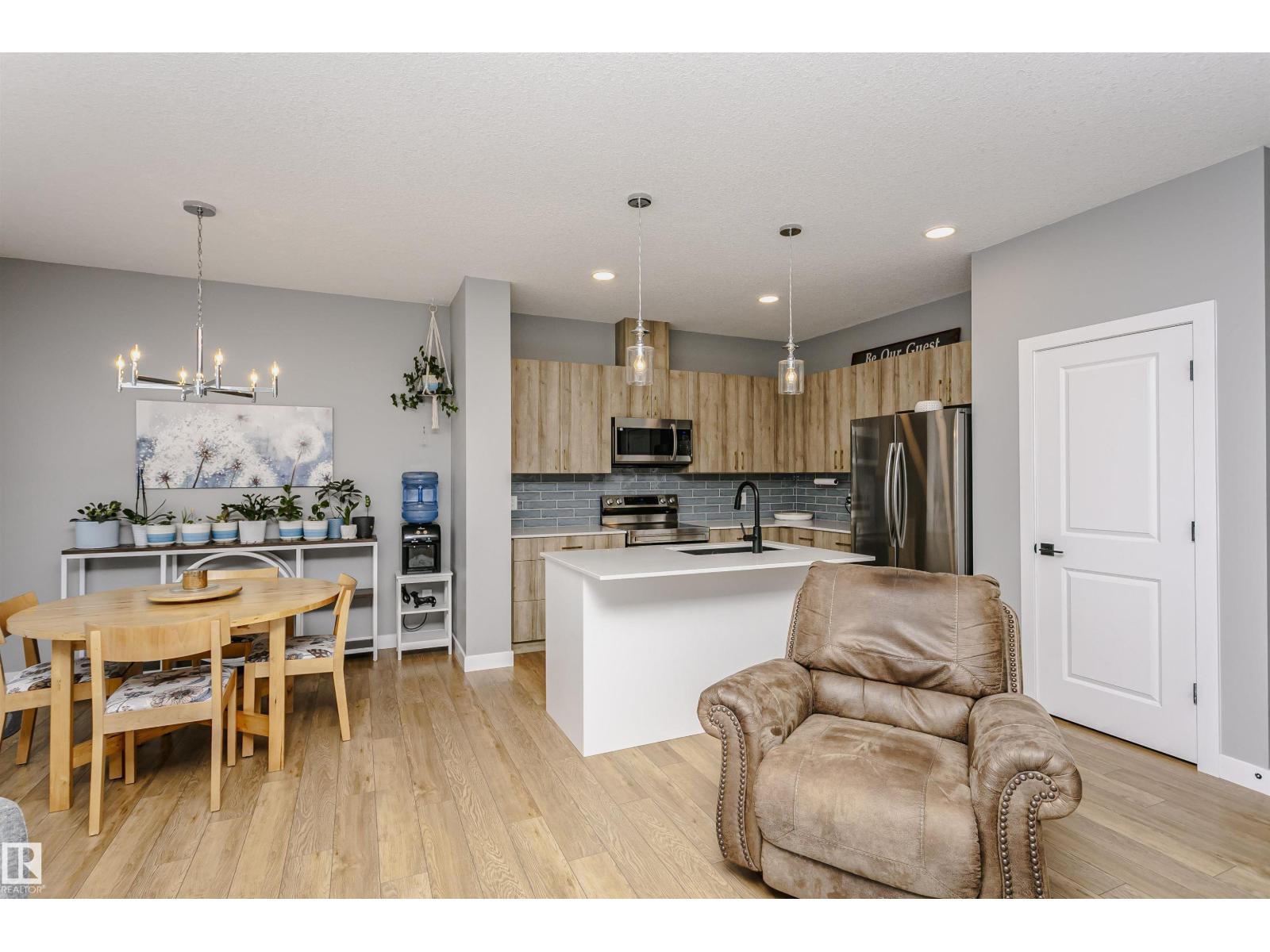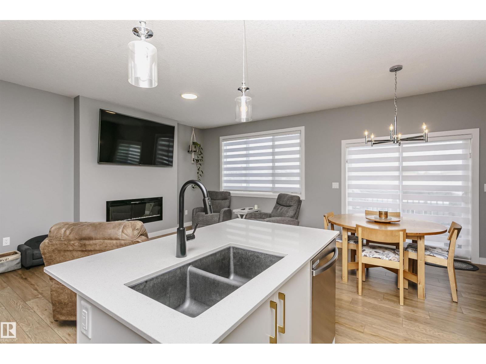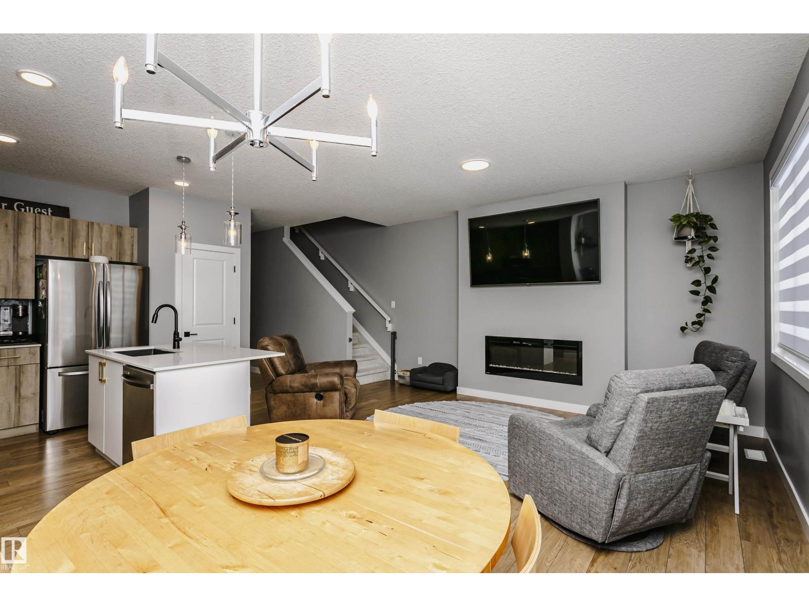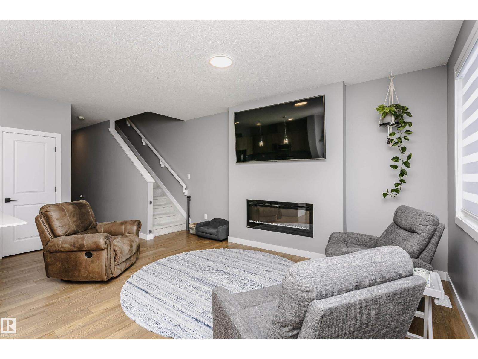 Welcome to this beautifully maintained home built by Alquinn Homes, now ready for its second owner. The bright open-concept main floor features a modern kitchen, dining area, and spacious great room, perfect for everyday living and entertaining. A cozy electric fireplace adds warmth and charm to the space. Upstairs you’ll find three generously sized bedrooms, including a primary suite with a 4-piece ensuite, an additional full bathroom, and the convenience of upstairs laundry. The unfinished basement is ready for your future plans—whether that’s a family room, gym, or extra living space. Outside, the yard is fully landscaped so you can simply move in and enjoy. Located in a quiet neighbourhood just a short walk to everyday amenities including a gas station, convenience store, daycare, restaurants, and more. A modern, move-in ready home with room to grow! (id:51989)