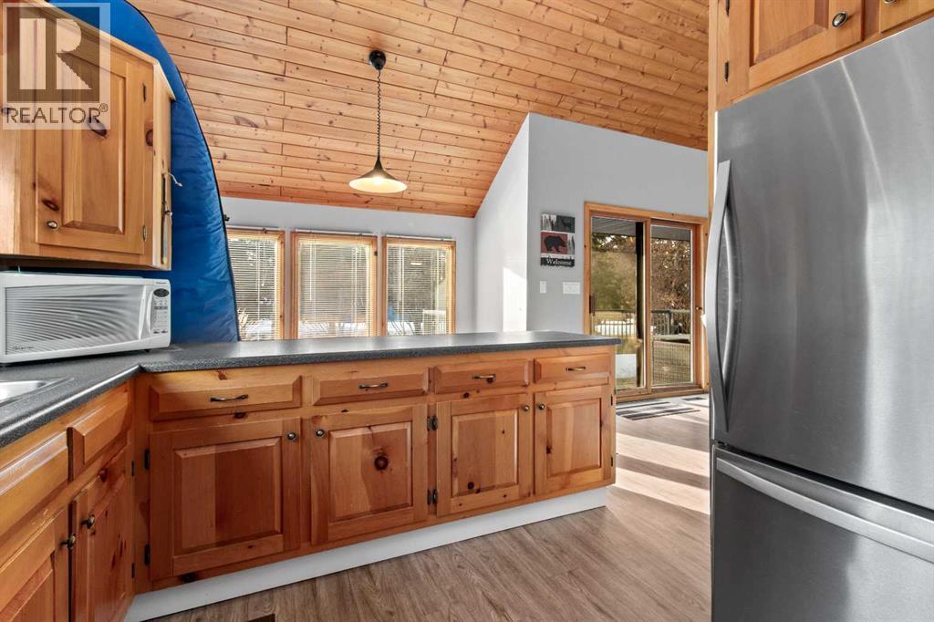Discover the perfect lakeside retreat in the sought-after Birch Bay community on the northwest shores of Gull Lake, a premier recreational destination in Central Alberta. Nestled midway between Edmonton and Calgary, this peaceful, family-friendly subdivision offers private beach access, scenic parks, walking trails, a community boat launch, and a welcoming atmosphere ideal for seasonal cabin living or year-round enjoyment.This charming, turn-key 4 season cottage has been thoughtfully renovated and upgraded since 2018, blending rustic charm with modern comforts . The open-concept main floor features soaring beamed ceilings, abundant natural light from skylights, a spacious living/dining area, and a fully equipped kitchen ready for family gatherings and entertaining.Accommodations include a cozy main-floor bedroom with a queen-sized bottom bunk and single top bunk, plus a convenient 3-piece bathroom. A central spiral staircase leads to the upper level, where you’ll find a generous loft area perfect for additional guest sleeping or relaxation, and a primary bedroom complete with a 4-piece ensuite and private deck access.Step outside to enjoy not one, but two expansive decks: the front deck offers sunny southern exposure for basking in the warmth, while the covered back deck provides shaded comfort and enhanced privacy within the secluded, treed yard. Just a short stroll along quiet roads or scenic paths leads to the private community beach, boat launch, and park—your gateway to endless lake activities including boating, swimming, fishing, and more. Nearby amenities feature a 9-hole golf course, with winter recreation options such as ice fishing, curling, hockey, and snowmobiling adding year-round appeal.Escape the city hustle and embrace quality family time—whether playing games, reading by the fire, or simply soaking in the natural beauty and tranquility of lakeside living. This meticulously updated cottage is ready for immediate enjoyment. Don’t miss your oppo rtunity to own a piece of Birch Bay paradise! (id:51989)
