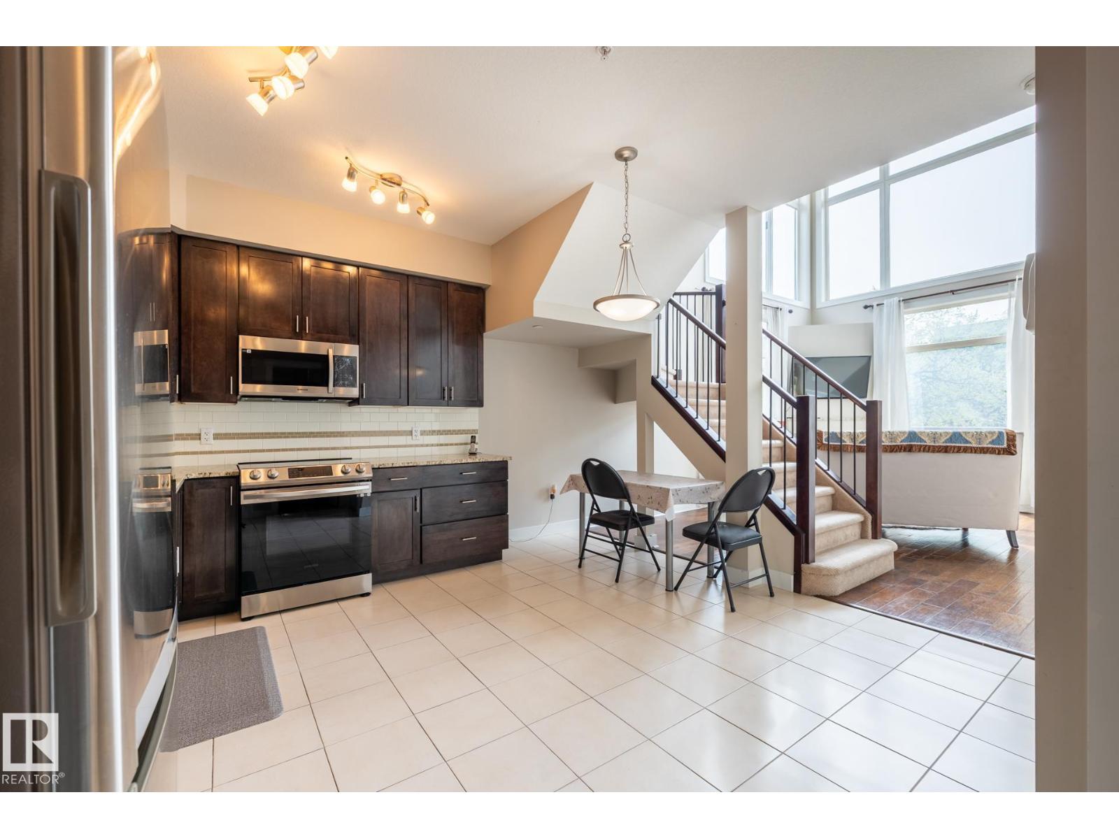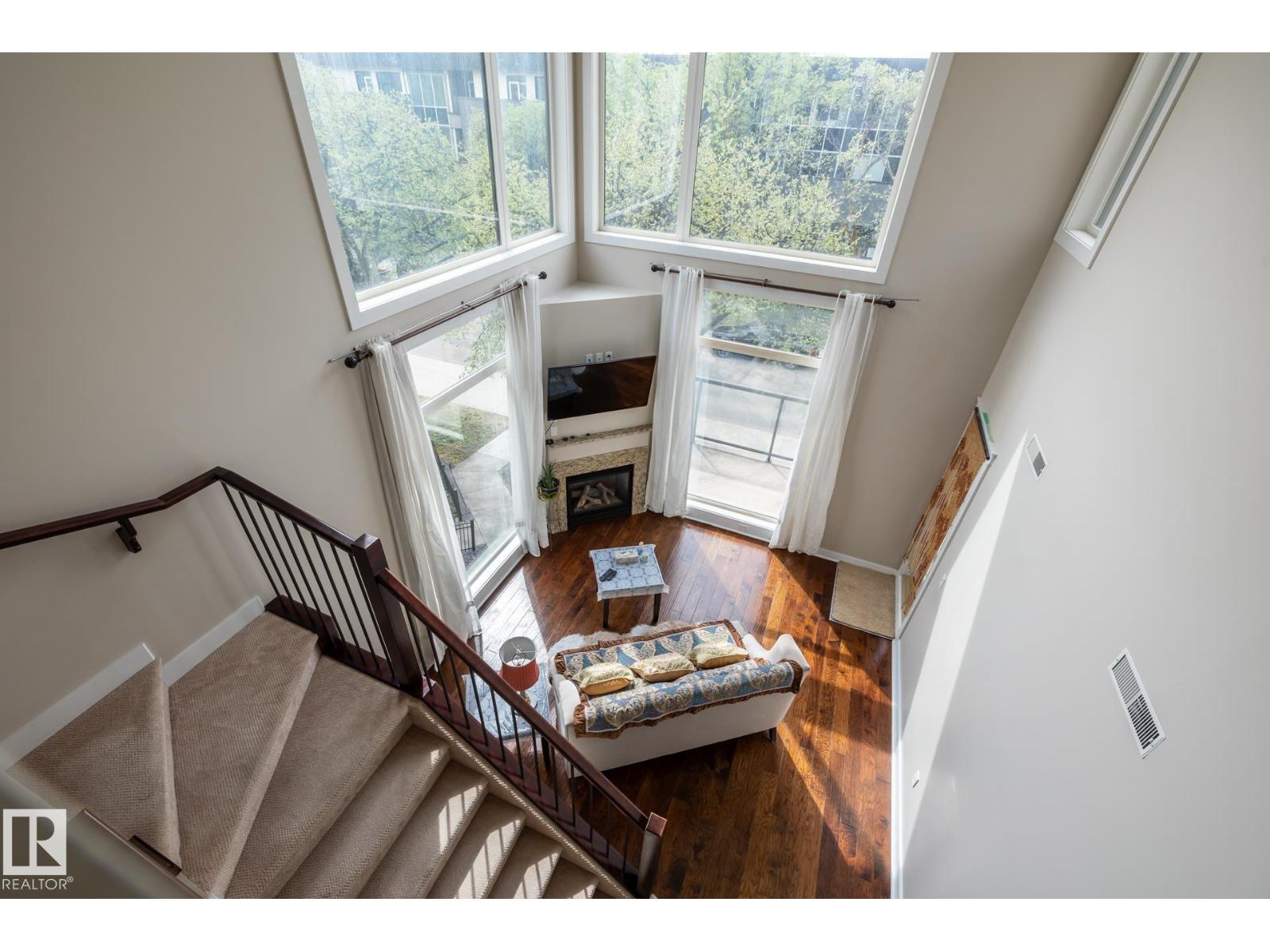 A rare find luxurious 2 storey style 2 bedroom + den unit with 2 U/G PARKING STALLS is perfectly located in PRETIGIOUS BELGRAVIA just a short walk to U of A campus, hospitals, EDMONTON CLINIC & LRT station. This gorgeous top floor corner unit is highlited by a spectacular open plan w/ a sun filled living room, 2 storey high ceilings and surrounded by soaring windows. Fabulous open eat in kitchen features premium maple cabinetry, upgraded stainless appliances & granite tops. Upper level boasts a large den, and a large primary bedrm w/ walkin closet, 5 pcs ensuite bath and a private balcony w/ tree top view. Convenient Main Fl. bedroom w/full bath and a large laundry/storage room. Other features include 9 ft. ceilings, A/C, fireplace, huge balcony off LR w/ gas BBQ outlet, extra U/G storage cage & more. Classy & stylish building has car wash, fitness & social rooms, bike & visitor parking, and a PERFECT QUIET & CONVENIENT UNIVERSITY LOCATION. (id:51989)