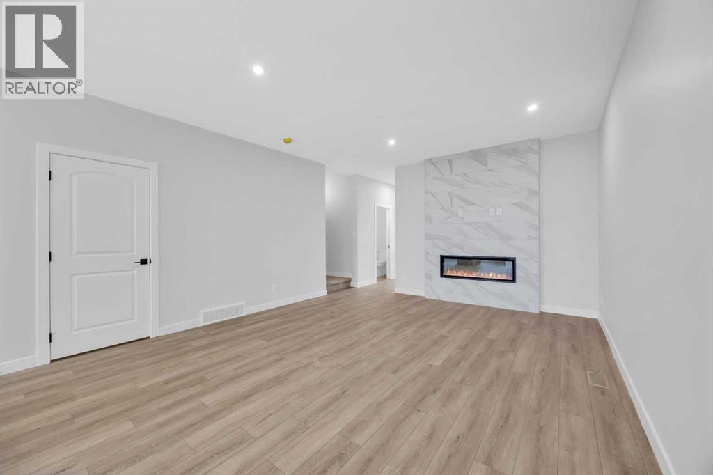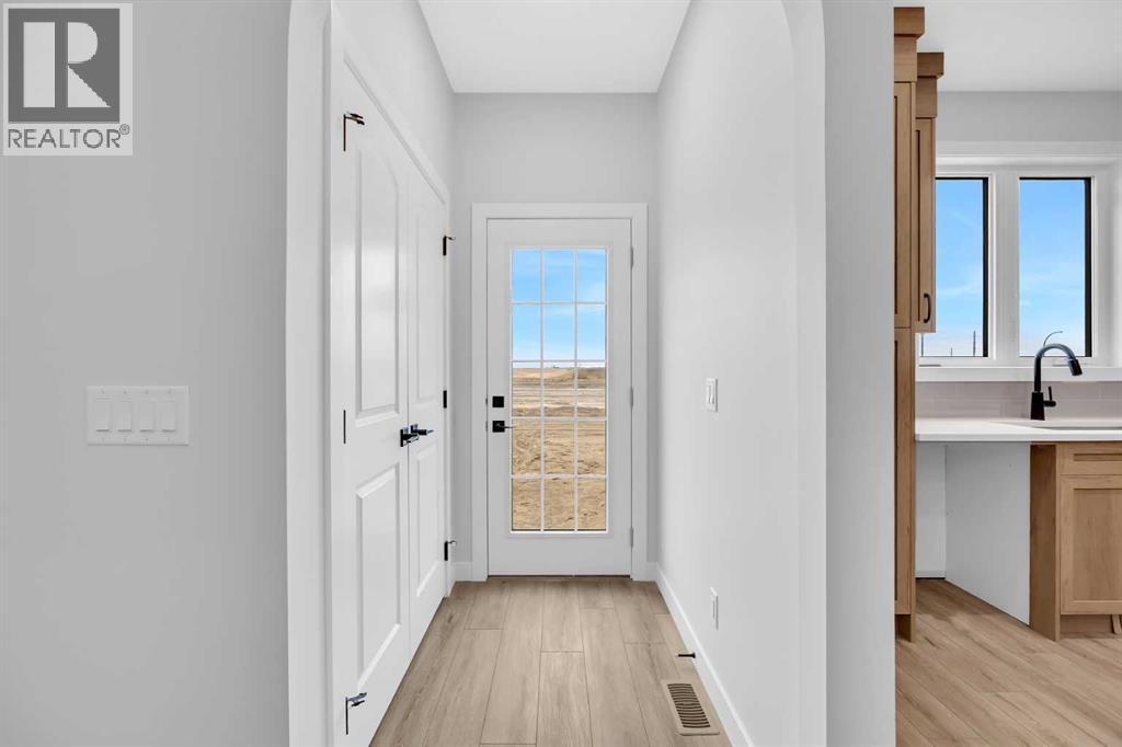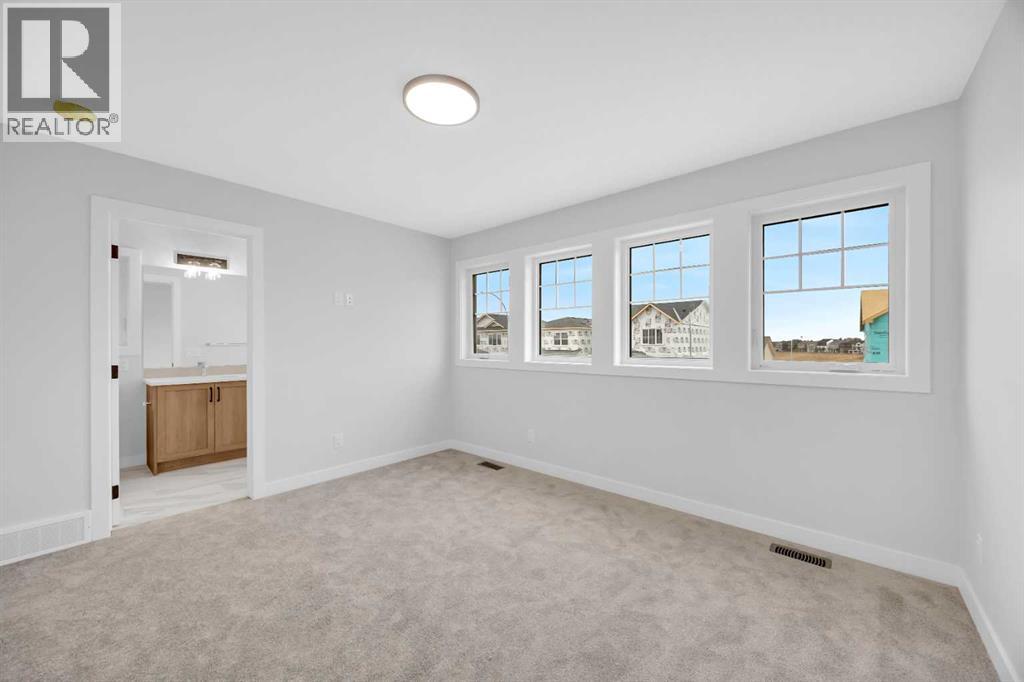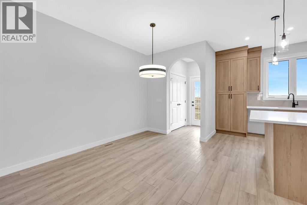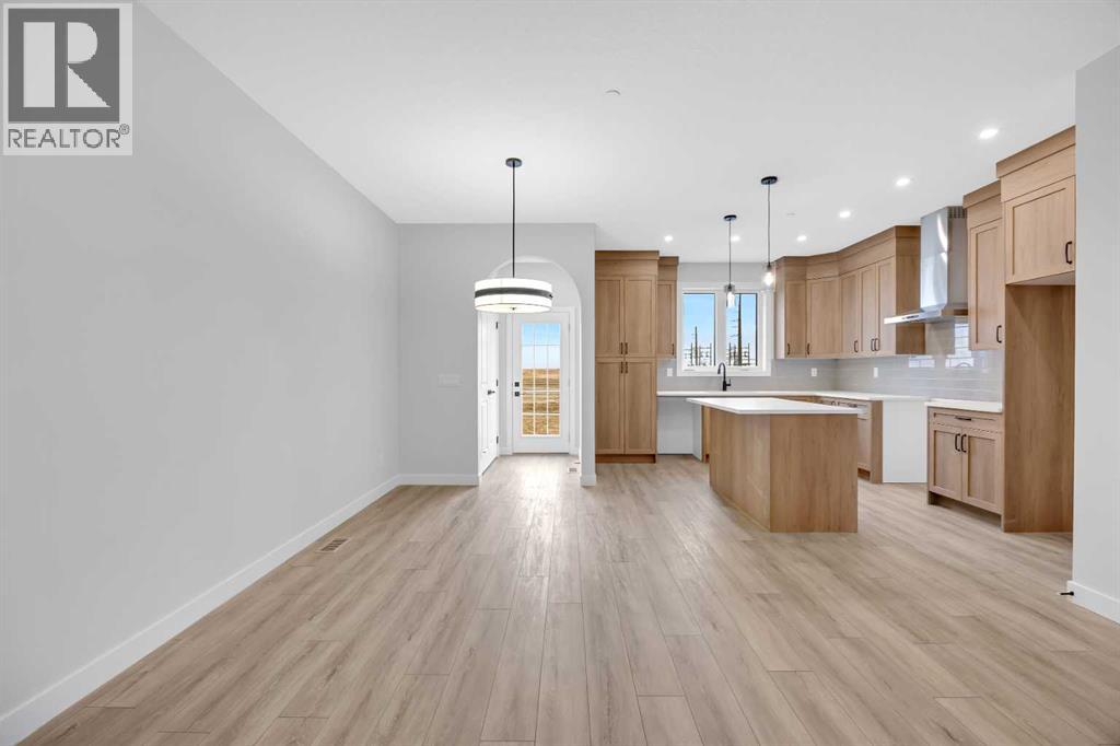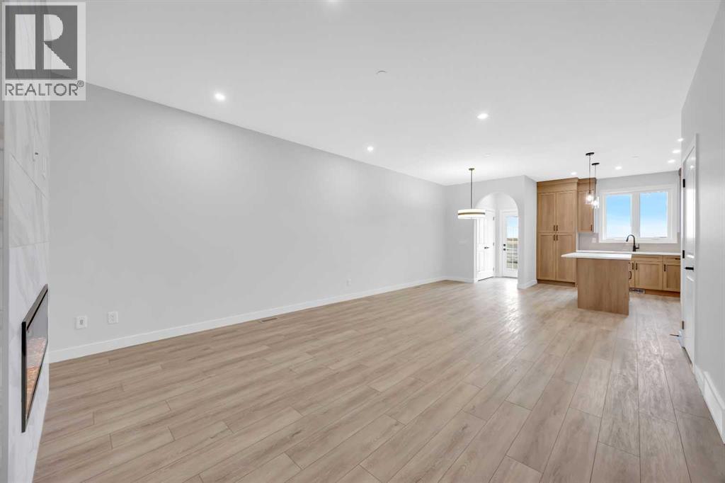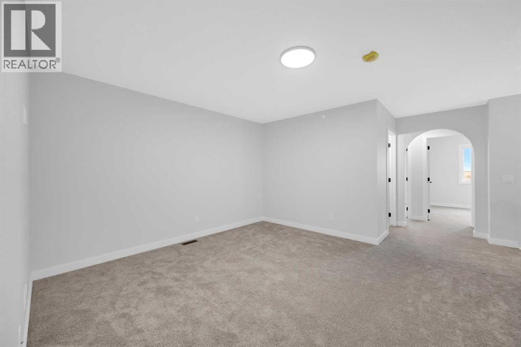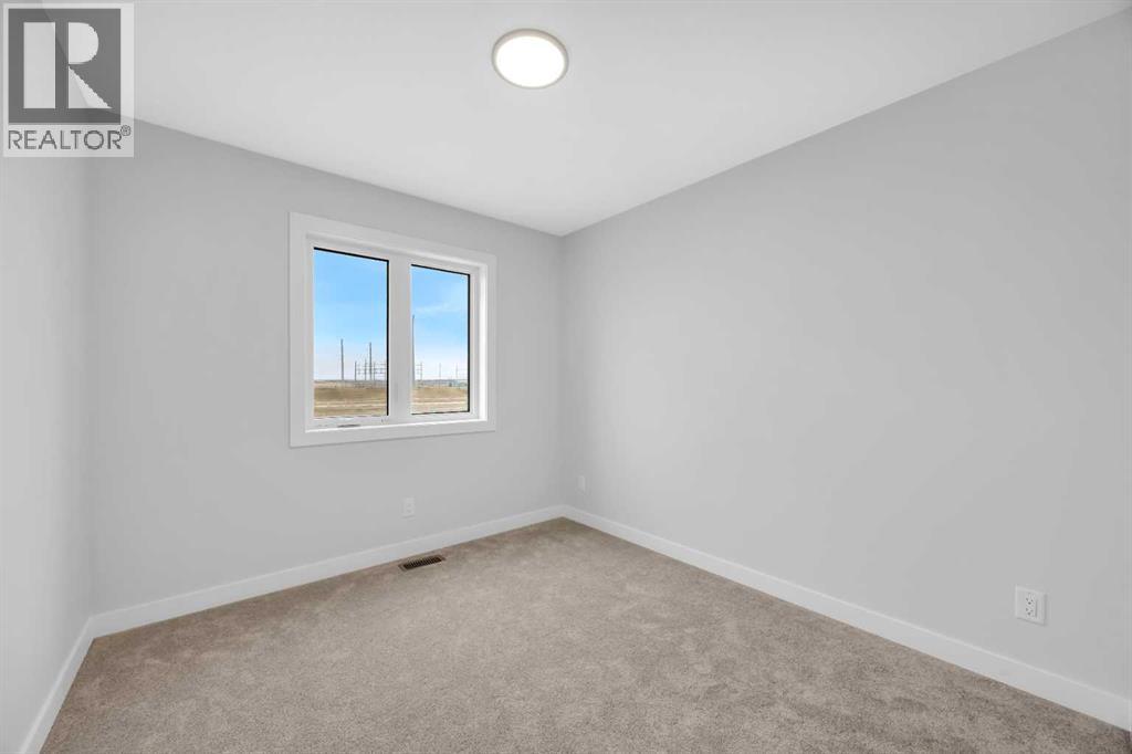 Welcome to the Elliot by Broadview Homes, a thoughtfully designed new construction home in the southeast Calgary community of Hotchkiss. Offering 1,877 square feet above grade, this brand new home in SE Calgary features a main floor flex room, separate side entrance, upper-level bonus room, walk-in closets in every bedroom, and a functional layout designed for modern family living. Step inside to a versatile front flex space, ideal for a home office, playroom, study area, or quiet workspace. The main level offers an open-concept design with a bright central kitchen complete with a large island, ample cabinetry, and excellent flow into the dining area. The spacious great room is ideal for relaxing or entertaining and is highlighted by an electric fireplace with stunning floor-to-ceiling tile detail that creates a stylish focal point. A convenient powder room and practical rear entry with a generous closet complete the main floor. The separate side entrance adds convenience and flexibility for future possibilities. Upstairs, the layout is both smart and family-friendly. Two secondary bedrooms, each with their own walk-in closet, are separated by a central bonus room that works beautifully as a media room, homework zone, play area, or second lounge. A dedicated upper floor laundry room adds everyday convenience. The primary suite offers a private retreat with an oversized walk-in closet and a spacious 5-piece ensuite featuring dual sinks and a tub/shower combination. Located in Hotchkiss SE Calgary, one of Calgary’s newest master-planned communities, residents enjoy scenic pathways, parks, open green spaces, and a planned 30-acre wetland designed to connect the community with nature. With quick access to Stoney Trail and Highway 22X, commuting to Seton, South Health Campus, the YMCA, shopping, restaurants, and other major amenities is simple. This is an excellent opportunity to own a brand new Broadview home in southeast Calgary with modern design, flexible living spac e, and strong value in a growing community. (id:51989)