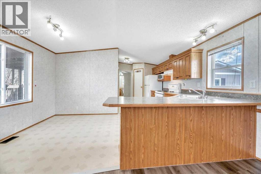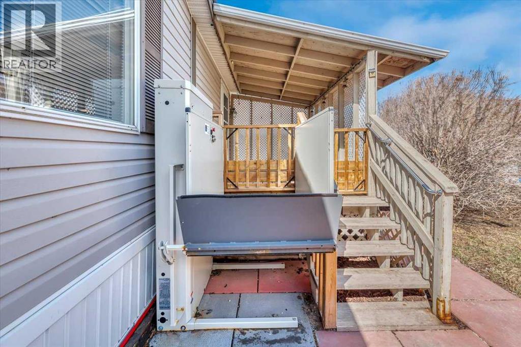 Welcome to easy, secure living in the sought-after Ranch Estates—Strathmore’s pet friendly, gated adult community designed for comfort, convenience, and peace of mind.This beautifully updated and very well maintained home offers 3 bedrooms and 2 full bathrooms, with a bright, functional layout that’s perfect for downsizing without compromise. Step inside to find new flooring, adding a fresh, modern feel to the space, while the newer roof provides added confidence for years to come.What truly sets this home apart is its maintenance free living and accessibility features, including a mobility lift, making it an excellent option for those seeking barrier-free living or planning ahead for long-term comfort where the lot lease takes care of snow removal and lawn care. Outside, you’ll love the added bonus of two covered decks, one with a vertical lift, beautiful shrubs and trees and a large parking pad and community RV parking, giving you the flexibility for travel and storage that’s hard to find in many communities.Located within a quiet, well-maintained, gated adult community, Ranch Estates offers a relaxed lifestyle with a strong sense of community—just minutes from all the amenities Strathmore has to offer.Low-maintenance living, thoughtful updates, and accessibility—this is a home that truly works for you. (id:51989)