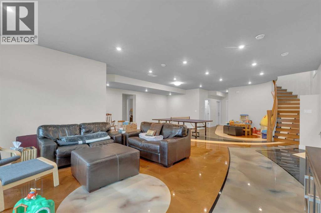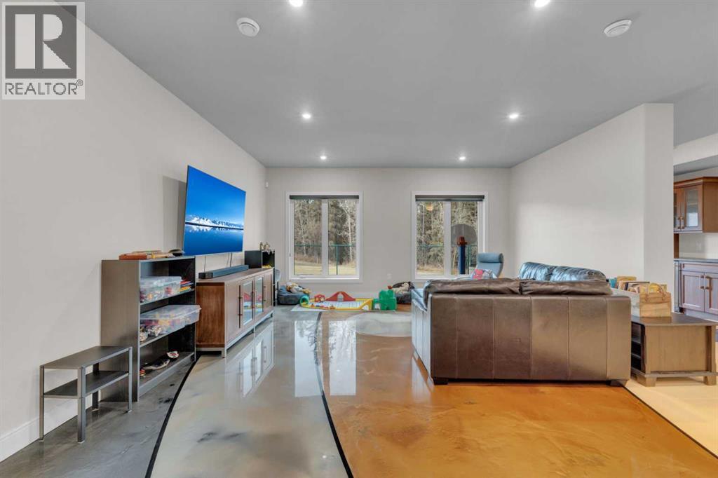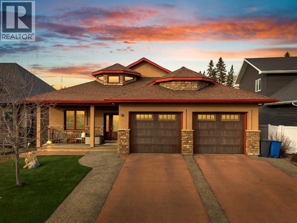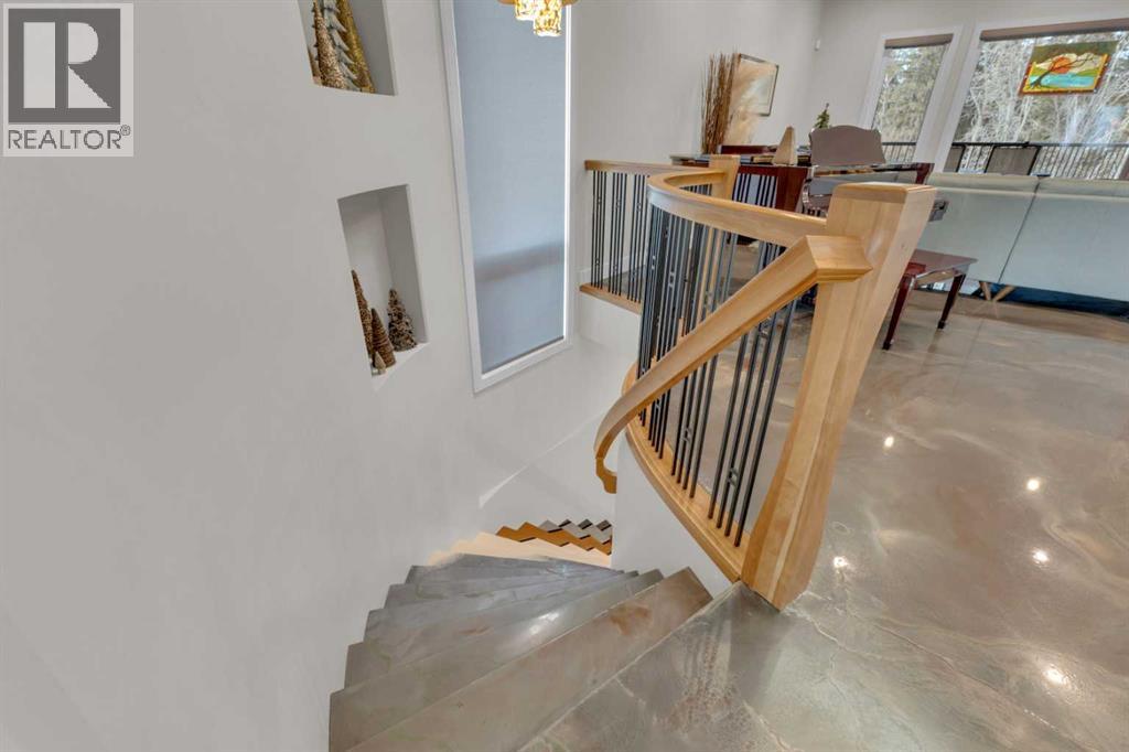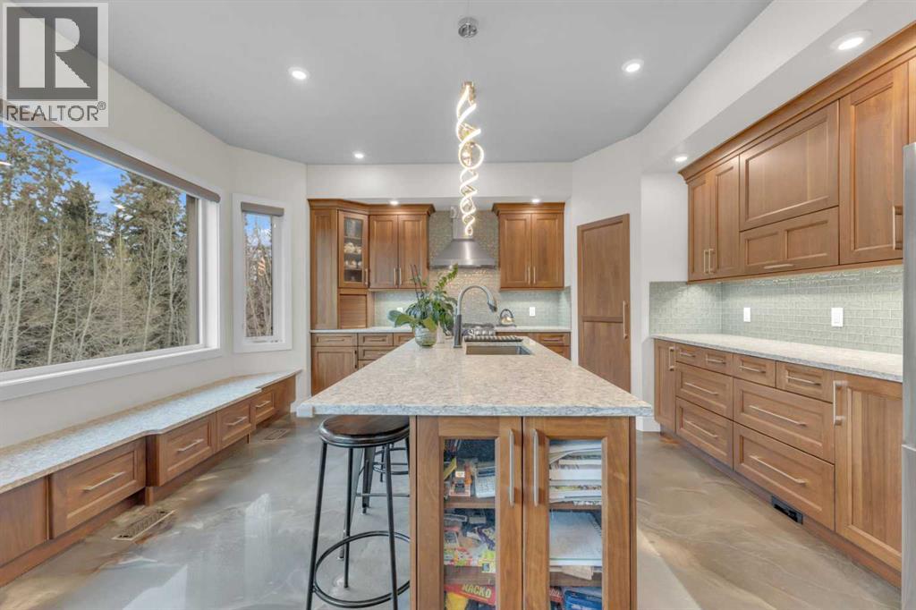 Prepare to be mesmerized by this stunning walkout bungalow, nestled on a serene cul-de-sac that backs onto a protected reserve and the renowned Red Deer trail system. As you step inside this exquisite residence, you'll immediately appreciate its refined charm. The custom epoxy concrete floors guide you into a remarkable living space, where a spacious living room adorned with an impressive array of windows showcases breathtaking views of the natural surroundings right outside your door.The kitchen is a chef's paradise, featuring elegant quartz countertops, a generous island area, and rich, custom cabinetry that adds a touch of sophistication.The main level of this exceptional home also includes a sizable office, convenient laundry facilities, and a tranquil primary suite complete with a spacious walk-in closet and a well-appointed ensuite, boasting both a separate shower and a luxurious soaking tub.Venturing to the basement, you'll discover a vast family room equipped with a wet bar and walkout access to the backyard deck, along with three additional bedrooms, a full bathroom, and a bonus area that was previously a workshop but could easily transform into the ultimate man cave or home gym. This unique space features a permanent scissor lift for effortless transport of heavy items from the garage to the basement.The true allure of this property lies in the spectacular views from both the expansive upper and lower decks, which offer both covered and uncovered areas for your enjoyment. Additionally, the lower patio is pre-wired for a hot tub, ready for your relaxation.Situated on a peaceful keyhole close, this home combines luxurious living with a serene country ambiance.Recent updates include fresh epoxy flooring in 2022, a new dishwasher, a water distiller, and modernized lighting fixtures, ensuring that this home is both stylish and functional. (id:51989)