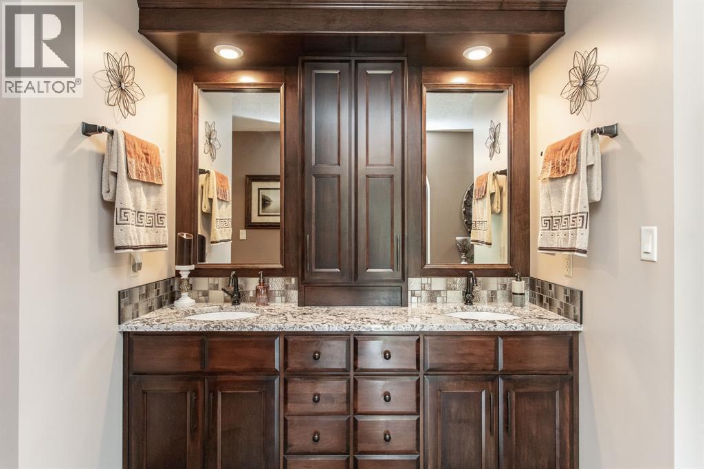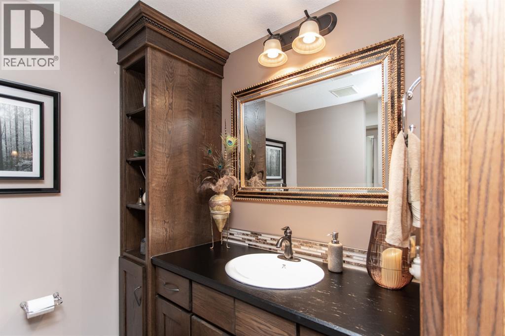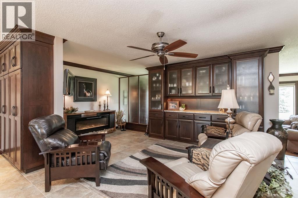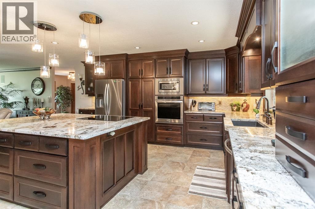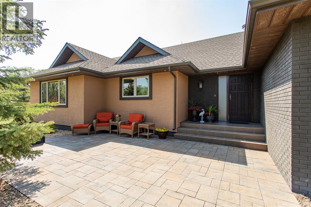 The perfect acreage for the discerning buyer—where unmatched quality, luxury, and lifestyle come together effortlessly. Set on 32 private acres, this extraordinary property features a beautifully renovated 3,100+ sq.ft. bungalow with an attached heated Garage and Workshop, plus a fully equipped 52x70 detached shop. Every want is fulfilled—from refined interior finishes to exceptional outdoor space, privacy, and functionality. This is a property that exceeds expectations, offering a rare combination of sophistication, space, and seclusion for those who value excellence in every detail. Completely renovated from top to bottom, including brand new furnaces and water tanks, this home reflects careful craftsmanship throughout. From the 200-year-old reclaimed hardwood floors to the sprinkler system servicing the spruce trees on the berm along the south side of the driveway, every element has been thoughtfully selected and executed by Central Alberta’s skilled tradespeople. The spacious Chef’s Kitchen features granite counters, a massive centre island, upgraded stainless appliances including an induction stove, and custom cabinetry throughout—including a rich dark cherrywood wall pantry. Grouted vinyl tile floors, LED and recessed lighting, and a travertine backsplash (which continues on a striking feature wall in the Dining Area) contribute to the home’s refined atmosphere. The attached Sitting Room is ideal for after-dinner conversation, while the Living Room—anchored by a true wood-burning masonry fireplace—offers a warm and inviting space to unwind while taking in the East-facing views. When it’s time to entertain, head downstairs to the Theatre Room with a 98” screen and wet bar, or step outside onto the expansive 1,000 sq.ft. west-facing Wolf-brand deck, complete with powder-coated aluminum railings and LED lighting on every post, all backing onto the peaceful beauty of Jones Creek. The main floor features three Bedrooms, including an exceptional Primary Suit e with dual vanities, a tiled rain shower, and a luxurious Dressing Room with built-in makeup vanity and an impressive walk-in closet finished with custom wood cabinetry for organized storage. The attached heated Double Garage and 15x22 Workshop with in-floor heat provide flexibility for hobbies, projects, or additional storage. The 52x70 detached shop is equally impressive, complete with a Bathroom, radiant gas heat, and two 14x14 overhead electric doors—ideal for business use or substantial recreational storage. Additional highlights include energy-efficient triple-pane windows, updated electrical and plumbing, Hunter Douglas blinds, solid core interior doors, and a custom stone pillar security gate at the entrance. Surrounded by mature trees and backing onto Jones Creek, this acreage offers remarkable privacy just 10 minutes from Red Deer.Properties of this caliber are rare—this is a distinctive opportunity to own one of Central Alberta’s (id:51989)