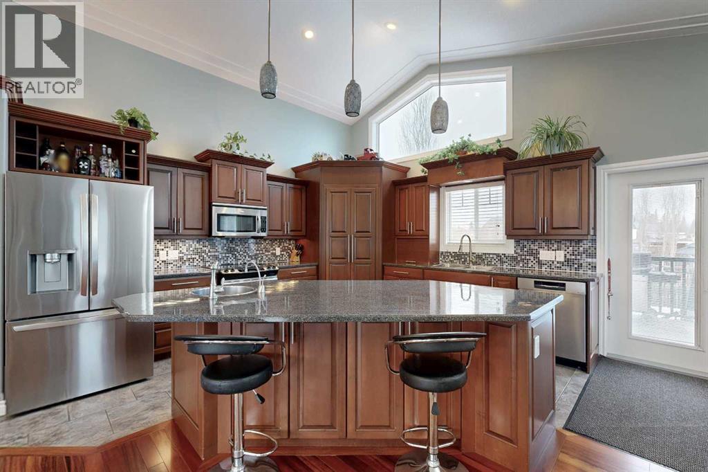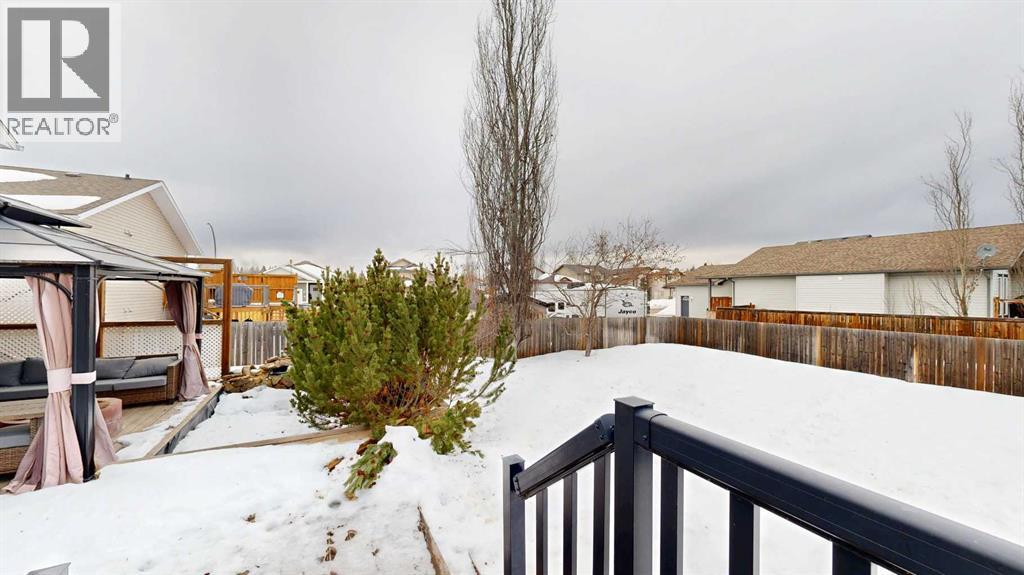 Spacious & Upgraded 5-Bedroom Home on a Premium LotThis custom-built 5-bedroom, 4-bathroom home delivers over 2,800 sq.ft. of quality living space on a 9,562 sq.ft. lot—complete with back alley access, fenced RV parking, and a shed for extra storage. Fully landscaped with a beautiful two-tier deck and natural gas BBQ hookup, it’s perfect for summer entertaining.Inside, the open-concept design features soaring vaulted ceilings and a cozy natural gas fireplace. The kitchen is a showstopper with a large island, under/over-cabinet lighting, reverse osmosis, an instant hot water tap for near-boiling water on demand—perfect for tea, coffee, cooking prep, and cutting meal times—hot water on demand, and a gas line for your BBQ. This feature is a true convenience upgrade that adds efficiency and a touch of luxury to everyday living.Upstairs, you’ll find generous bedrooms, including a primary suite roughed-in for its own laundry. The basement is a standout—ideal for teens or guests—with two large bedrooms, each with a private ensuite and walk-in closet for unmatched privacy and comfort.Extra perks include in-floor heating and central air conditioning for year-round comfort.Located in a sought-after neighborhood near the hospital, schools, and rec center, this home blends space, style, and smart design—a rare find for growing families. (id:51989)