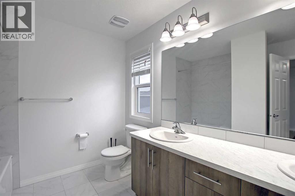 Say hello to this beautifully maintained, like-new townhome with NO CONDO FEES in the growing community of Yorkville, just minutes from Spruce Meadows.The open-concept main floor features durable oak luxury vinyl plank flooring and a bright, spacious kitchen complete with quartz countertops, a large white island, subway tile backsplash, stainless steel appliances (including a new dishwasher), and warm oak cabinetry. The kitchen flows seamlessly into the dining and living areas, creating the perfect space for everyday living and entertaining. The home has been professionally painted throughout and features brand-new light beige carpet on the stairs and upper level.Upstairs offers three bedrooms, including a spacious primary retreat with a huge walk-in closet, a stunning 5-piece ensuite featuring Carrara tile, and a private balcony. Two additional bedrooms, a 4-piece bathroom with double sinks, and a convenient upper-level laundry room with Samsung washer and dryer complete the upper floor.Additional highlights include a double attached garage, keeping you warm and dry year-round. Ideally located across from a park and walking pathways surrounding the pond, and just minutes from Granary Road and a short 10-minute drive to the Shawnessy CTrain Station.This move-in-ready home is a fantastic opportunity for homeowners or investors in one of South Calgary’s newest communities. Book your showing today! (id:51989)