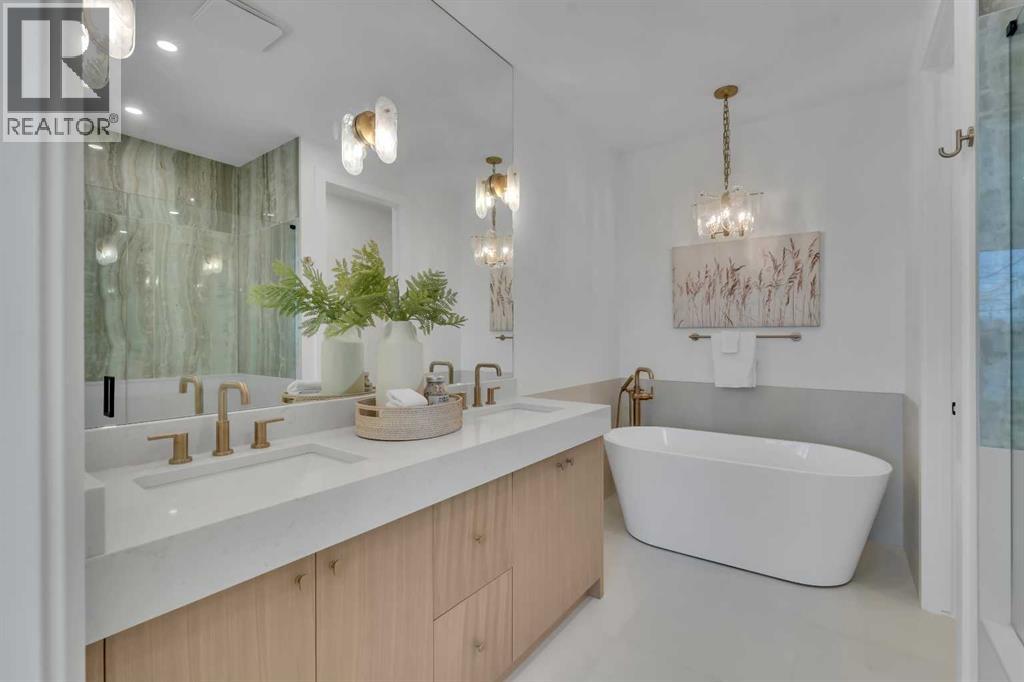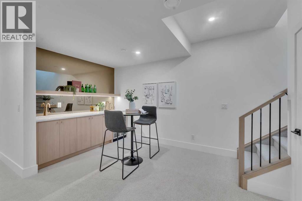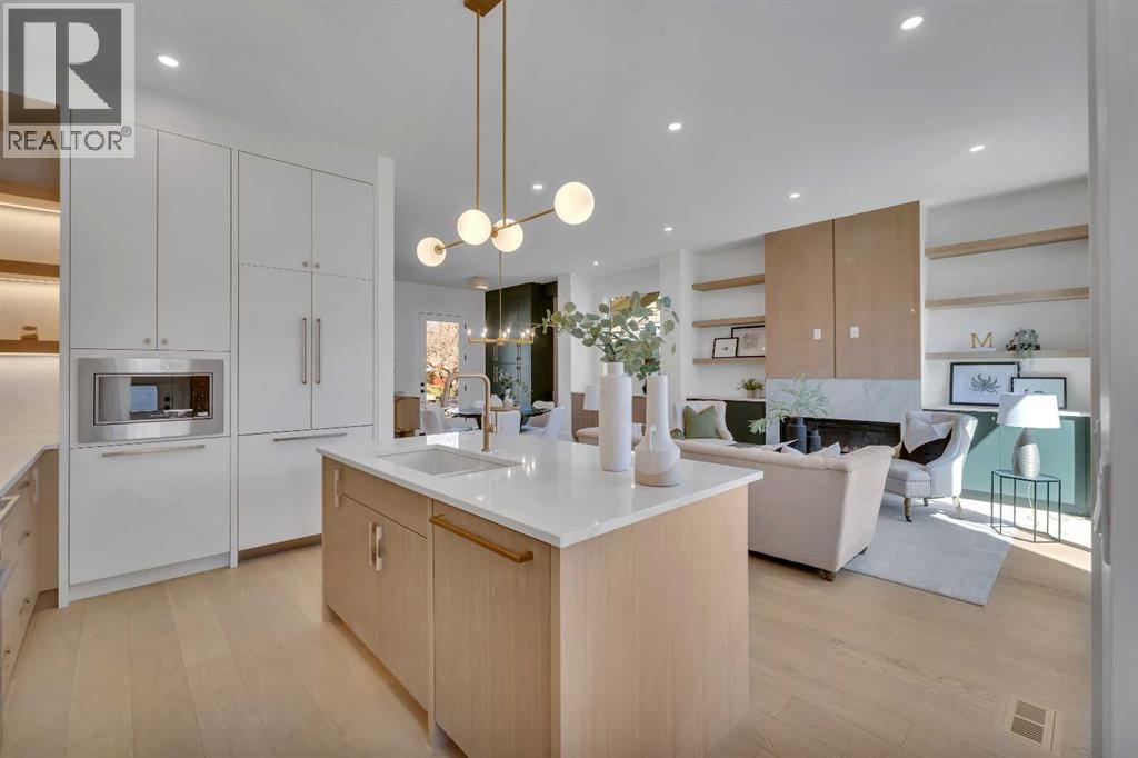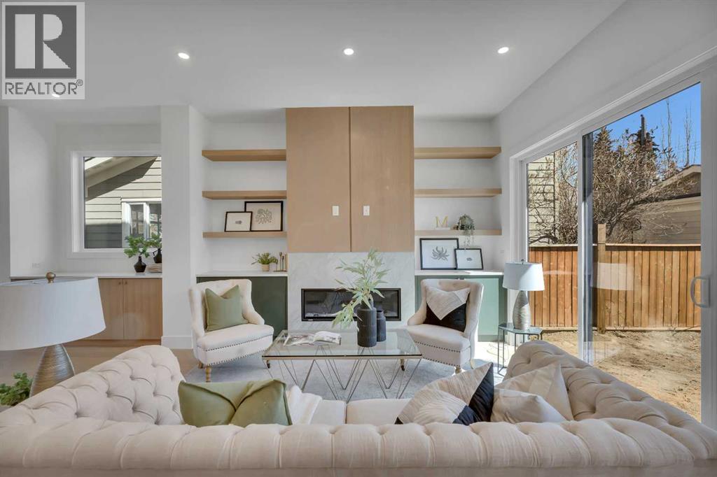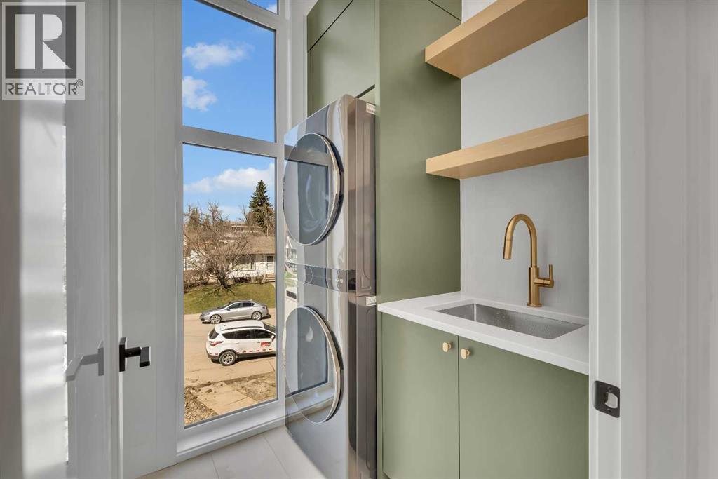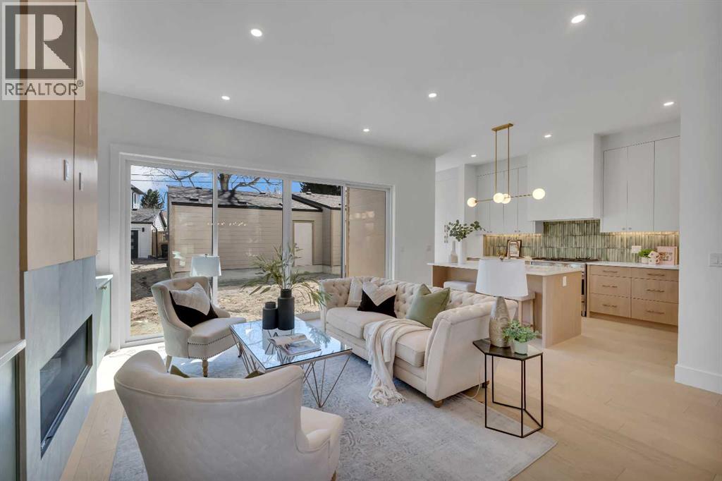 A statement of inner city luxury, this extra-wide residence by Ambedo Custom Homes and Stephanie Martin Interior Design redefines the duplex category. Moving beyond the generic "spec-build" aesthetic, the home is defined by an earthy sophistication, featuring white oak and olive green cabinetry and champagne brass fixtures throughout. From the custom tiling to the specialized party wall engineered for a level of quiet not found in standard builds, the home has been curated for the homeowner who values both scale and quality.The main level features 10-foot ceilings that soar over a chef-inspired kitchen and open-concept living area. The culinary space is anchored by a professional 36" gas range, panel-ready Fisher & Paykel appliances, and seamless custom millwork. Natural light pours through 14-foot architectural patio doors, dissolving the boundary between the serene interior and the south-facing backyard.The vaulted primary retreat serves as a sanctuary, complemented by two additional large bedrooms. Intentionally designed without a secondary suite, the lower level is dedicated entirely to personal luxury, offering a massive recreation area and custom wet bar.Wrapped in a striking metal and stucco facade with a double garage, you are a short stroll from the Westbrook CTrain station and vibrant new coffee shops. Discover the exclusivity of a designer-led, extra-wide build—book your tour today. (id:51989)