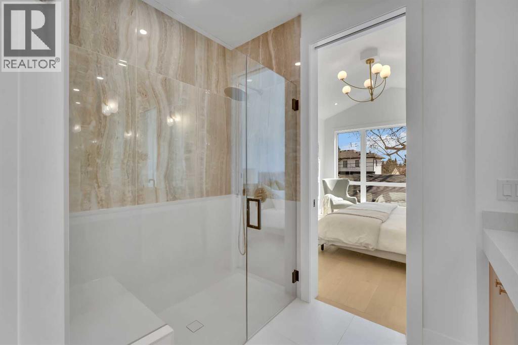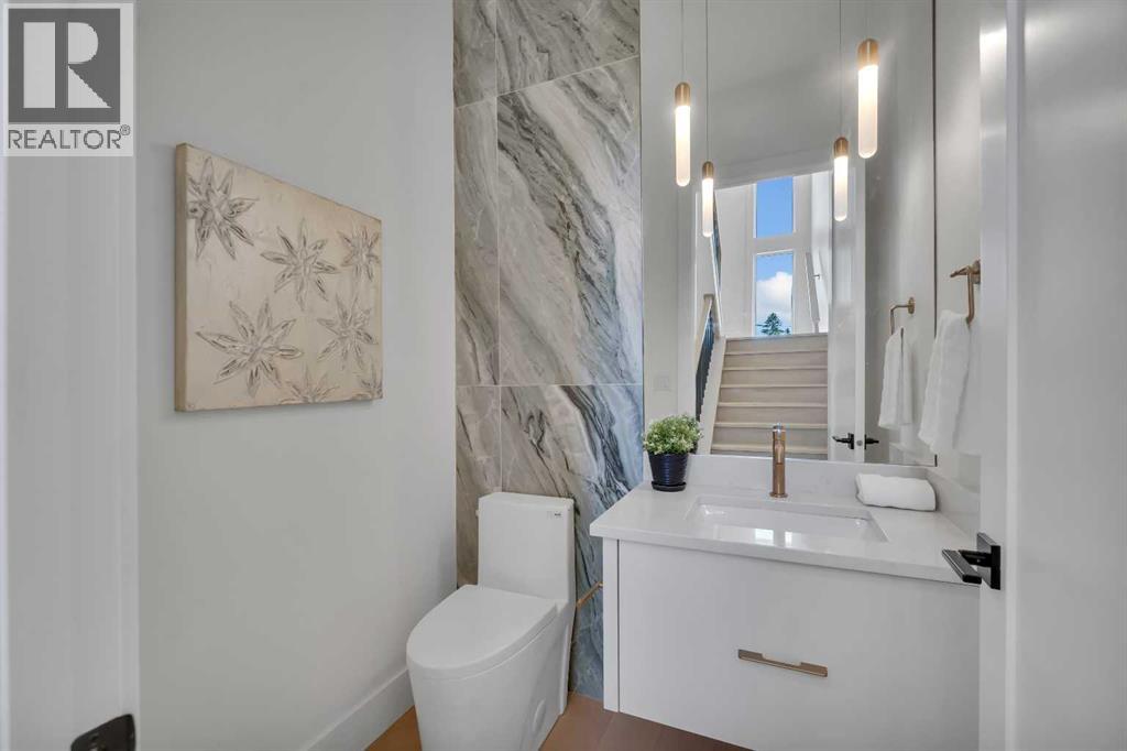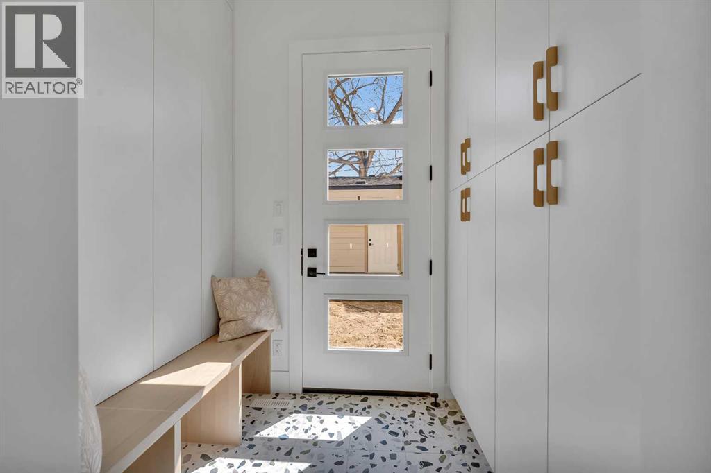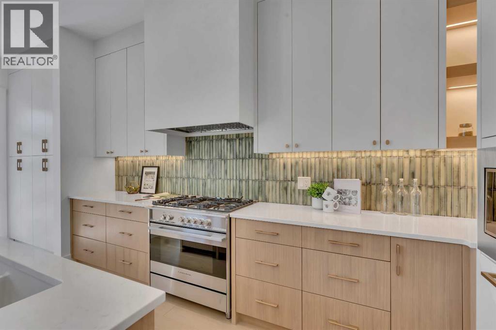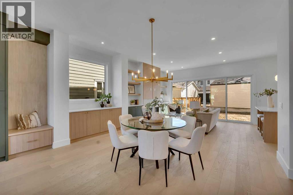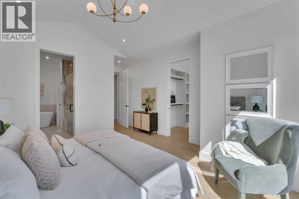 A statement of inner city luxury, this extra-wide residence by Ambedo Custom Homes and Stephanie Martin Interior Design redefines the duplex category. Moving beyond the generic "spec-build" aesthetic, the home is defined by an earthy sophistication, featuring white oak and olive green cabinetry and champagne brass fixtures throughout. From the custom tiling to the specialized party wall engineered for a level of quiet not found in standard builds, the home has been curated for the homeowner who values both scale and quality.The main level features 10-foot ceilings that soar over a chef-inspired kitchen and open-concept living area. The culinary space is anchored by a professional 36" gas range, panel-ready Fisher & Paykel appliances, and seamless custom millwork. Natural light pours through 14-foot architectural patio doors, dissolving the boundary between the serene interior and the south-facing backyard.The vaulted primary retreat serves as a sanctuary, complemented by two additional large bedrooms. Intentionally designed without a secondary suite, the lower level is dedicated entirely to personal luxury, offering a massive recreation area and custom wet bar.Wrapped in a striking metal and stucco facade with a double garage, you are a short stroll from the Westbrook CTrain station and vibrant new coffee shops. Discover the exclusivity of a designer-led, extra-wide build—book your tour today. (id:51989)
