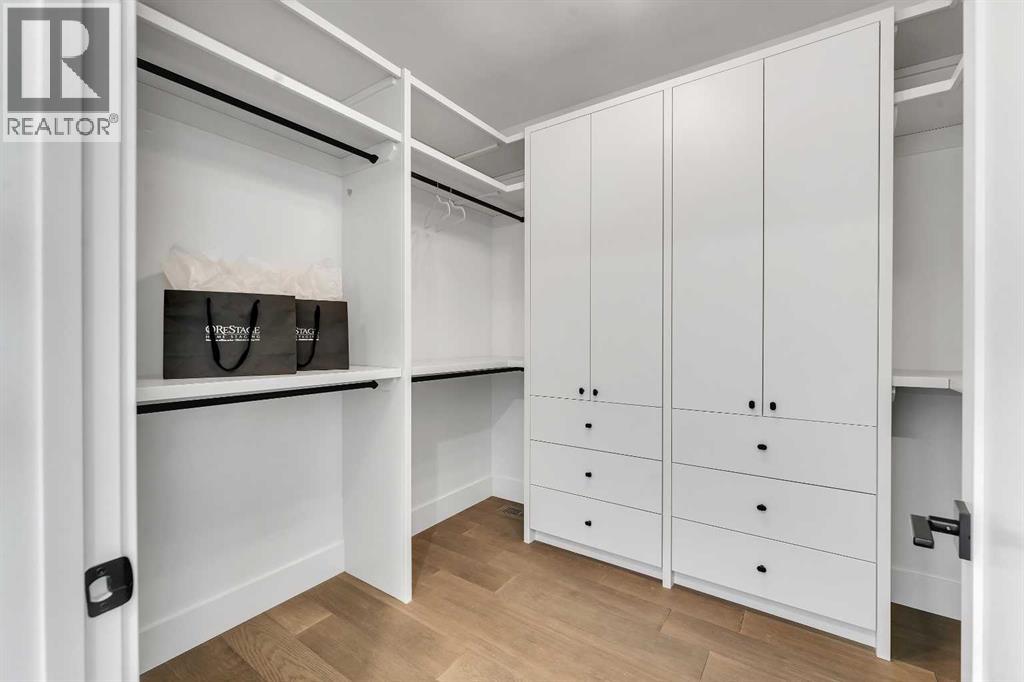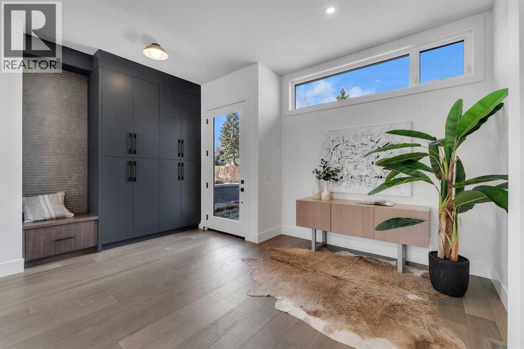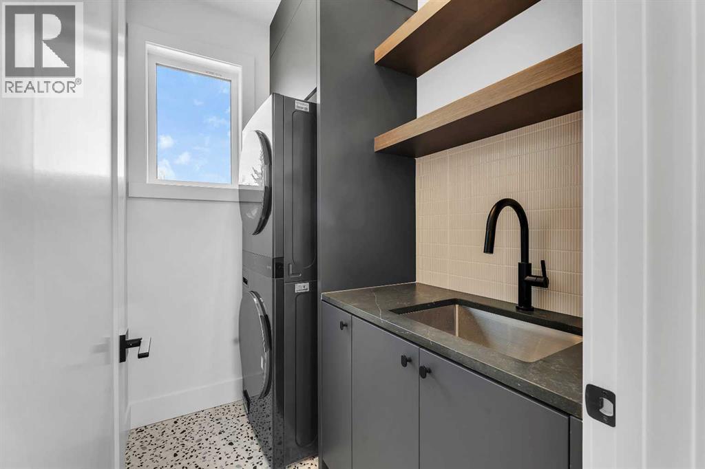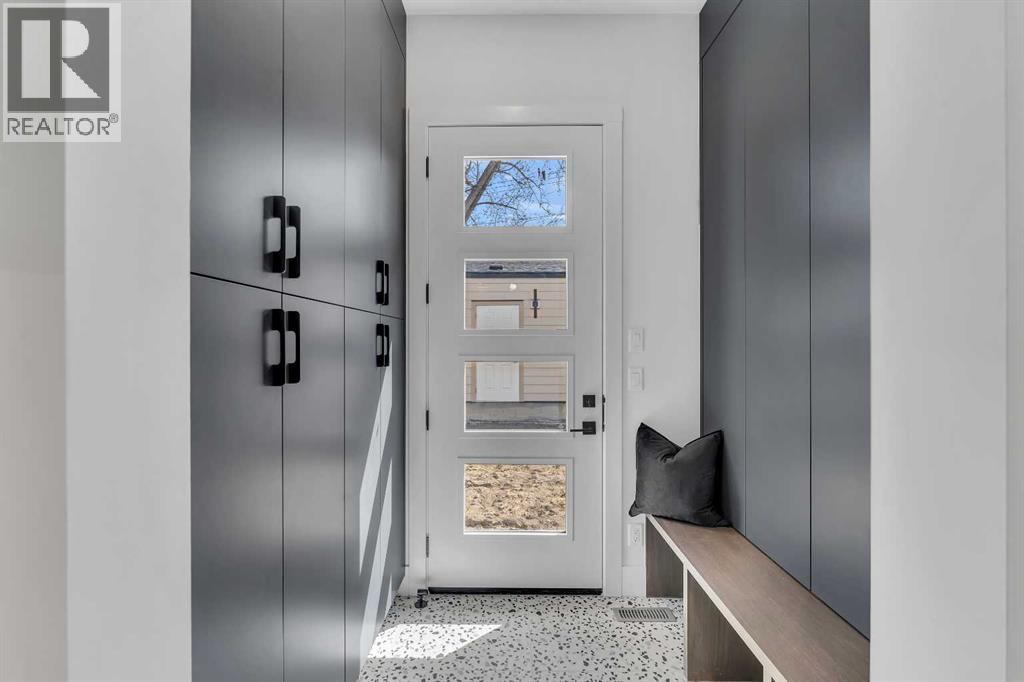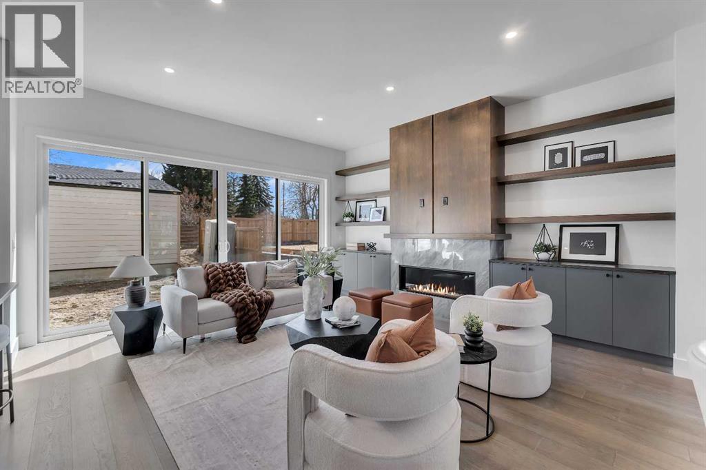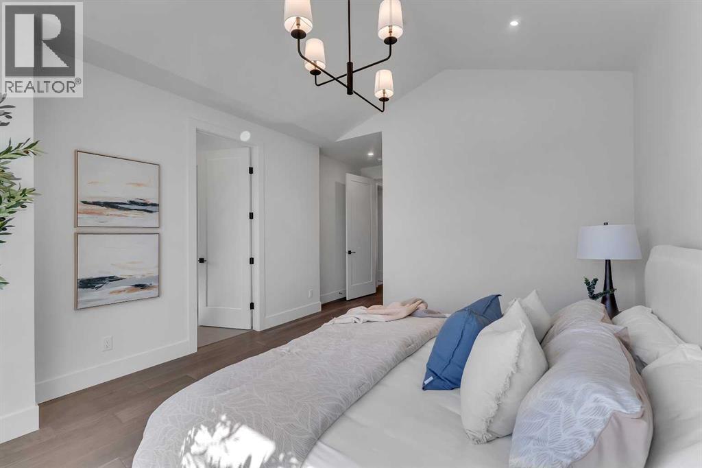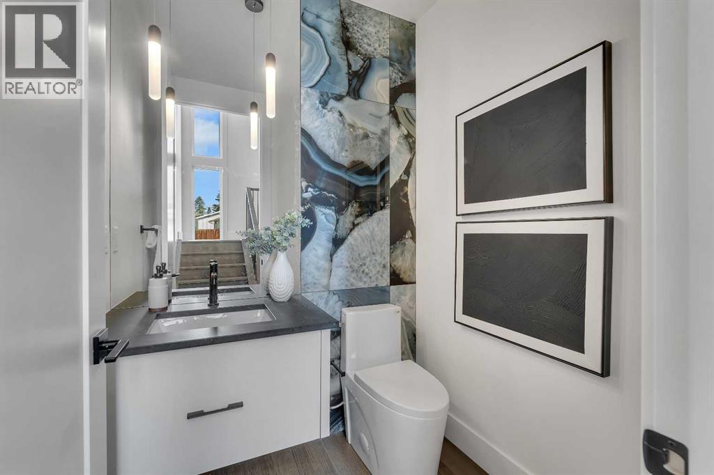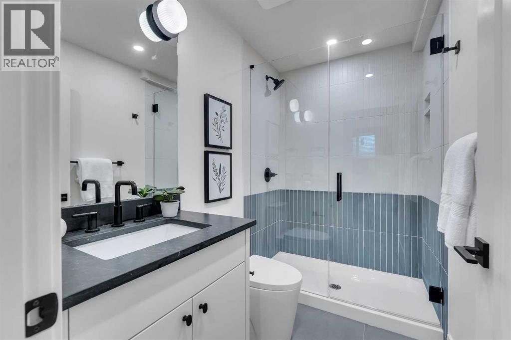 A statement of inner city luxury, this extra-wide residence by Ambedo Custom Homes and Stephanie Martin Interior Design redefines the duplex category. Moving beyond the generic "spec-build" aesthetic, the home embraces a "dark-themed serenity" that feels deeply personal and curated. Every element, from the custom tiling throughout to the specialized party wall engineered for a level of quiet not found in standard builds, has been selected for the homeowner who values both scale and quality.The main level features 10-foot ceilings that soar over a chef-inspired kitchen defined by its moody allure and intentional design. The space is anchored by a professional 36" gas range, panel-ready Fisher & Paykel appliances, and bespoke cabinetry. Natural light pours through 14-foot architectural patio doors, dissolving the boundary between the sophisticated interior and the south-facing backyard.The vaulted primary retreat serves as a sanctuary, joined by two additional large bedrooms. Intentionally designed without a secondary suite, the lower level is dedicated entirely to personal use, offering a massive recreation area and custom wet bar.Wrapped in a striking metal and stucco facade with a double garage, you are a short stroll from the Westbrook CTrain station and vibrant new coffee shops. Discover the exclusivity of a designer-led, extra-wide build—book your tour today. (id:51989)