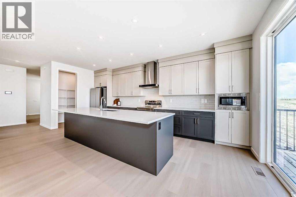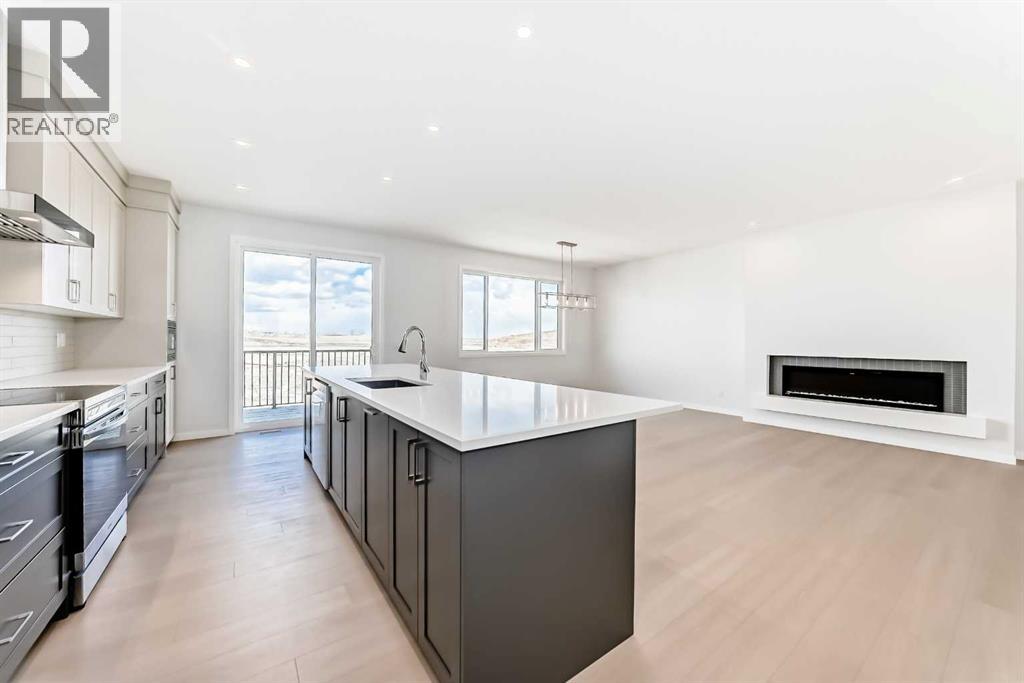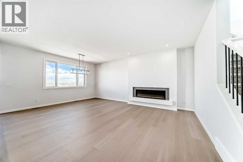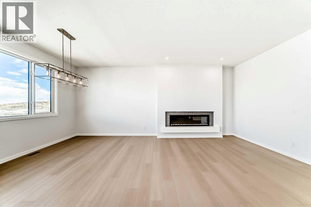 Walk out and back on the pond side green space, on a conventional lot, and brand new, welcome to this 2472 sqft single family home in popular Livingston. It features main floor bedroom/office with full bath ensuite, LVP flooring throughout the main floor, 9 feet ceiling on the main floor and basement, 8 feet height doors on the main floor, upgraded cabinets with 2 tone colors, quartz counter tops in the kitchen and bathrooms, knock down ceiling, wrought iron spindles on the stairs, and large deck. Upper floor has 3 bedrooms all with walk in closet, large master bedroom with beautiful view, large ensuite with double vanity sinks, large soaker tub, and separated tiled shower, and large walk-in closet, large bonus room with window, and spacious laundry room. Main floor has large living room, large electrical fireplace, huge kitchen with upgraded stainless-steel appliances and a chimney hood fan, built in microwave, sliding door to large deck, and upgraded lighting package. Walk out basement with lots windows rough-ins for future hood fan, bathroom, and washer/dryer. It closes to green space, ponds, future school, and easy access to major roads. ** 396 Herron Landing NE ** (id:51989)