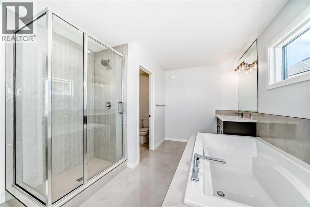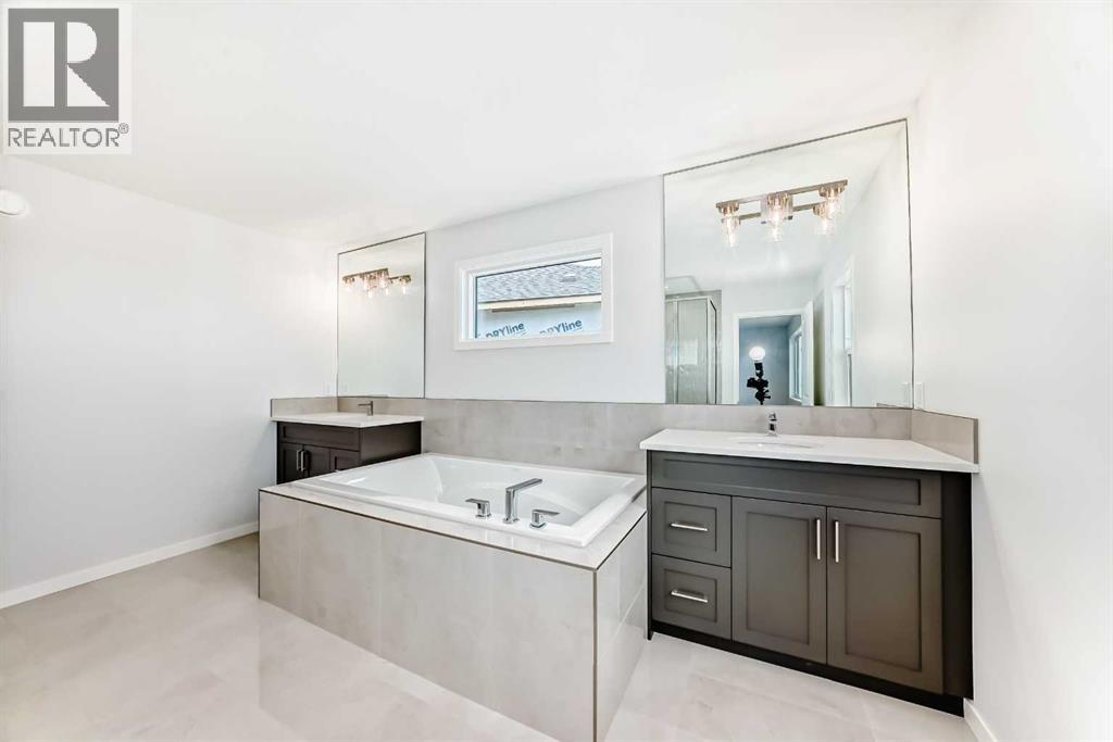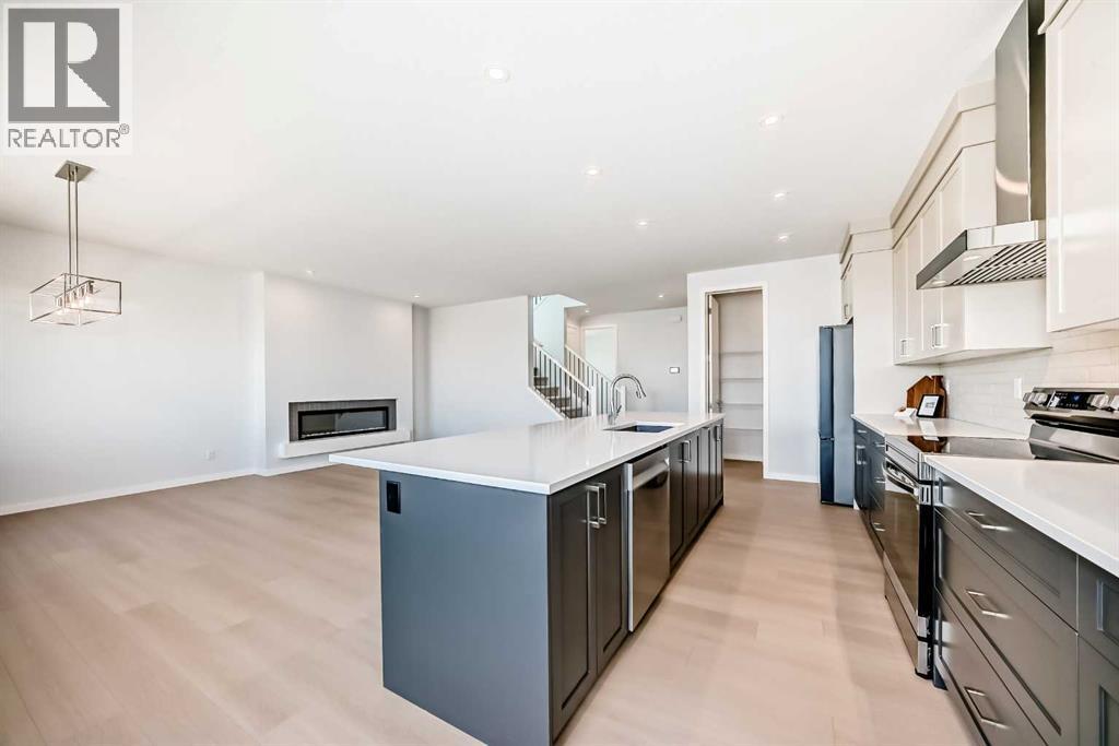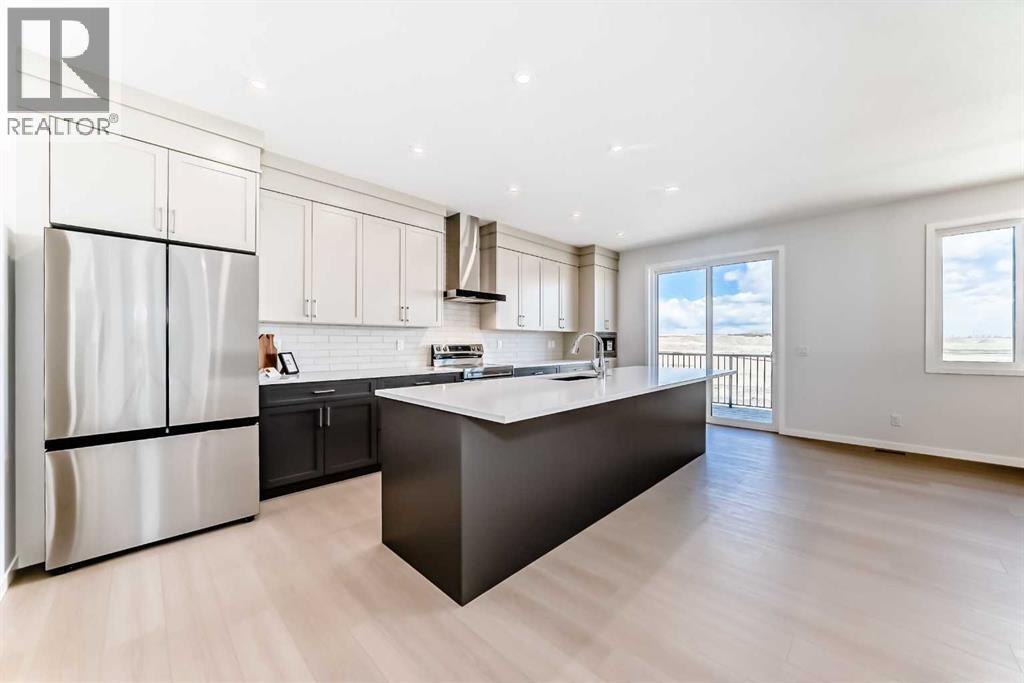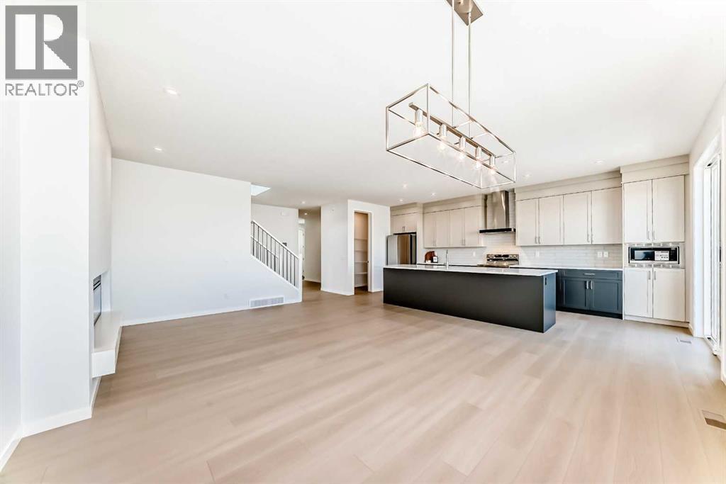 Walk out and back on the pond side green space, on a conventional lot, and brand new, welcome to this 2472 sqft single family home in popular Livingston. It features main floor bedroom/office with full bath ensuite, LVP flooring throughout the main floor, 9 feet ceiling on the main floor and basement, 8 feet height doors on the main floor, upgraded cabinets with 2 tone colors, quartz counter tops in the kitchen and bathrooms, knock down ceiling, wrought iron spindles on the stairs, and large deck. Upper floor has 3 bedrooms all with walk in closet, large master bedroom with beautiful view, large ensuite with double vanity sinks, large soaker tub, and separated tiled shower, and large walk-in closet, large bonus room with window, and spacious laundry room. Main floor has large living room, large electrical fireplace, huge kitchen with upgraded stainless-steel appliances and a chimney hood fan, built in microwave, sliding door to large deck, and upgraded lighting package. Walk out basement with lots windows rough-ins for future hood fan, bathroom, and washer/dryer. It closes to green space, ponds, future school, and easy access to major roads. ** 396 Herron Landing NE ** (id:51989)