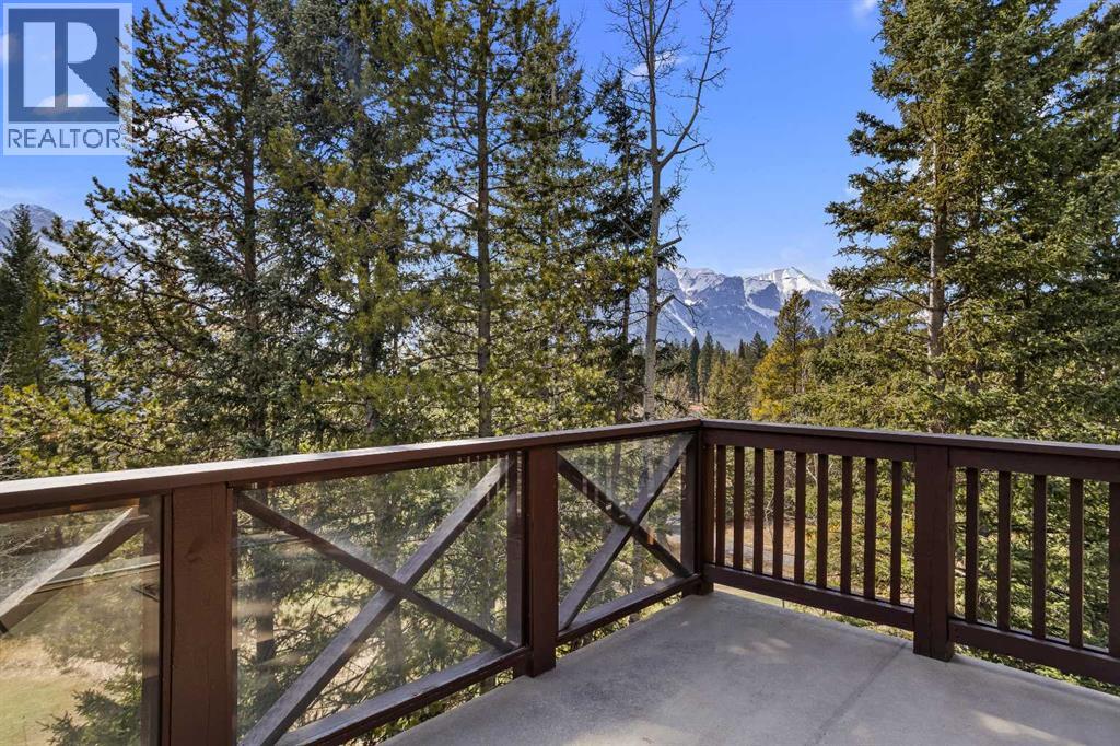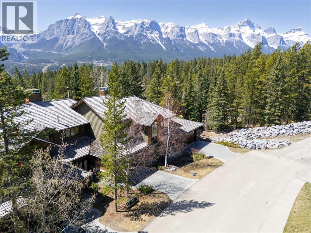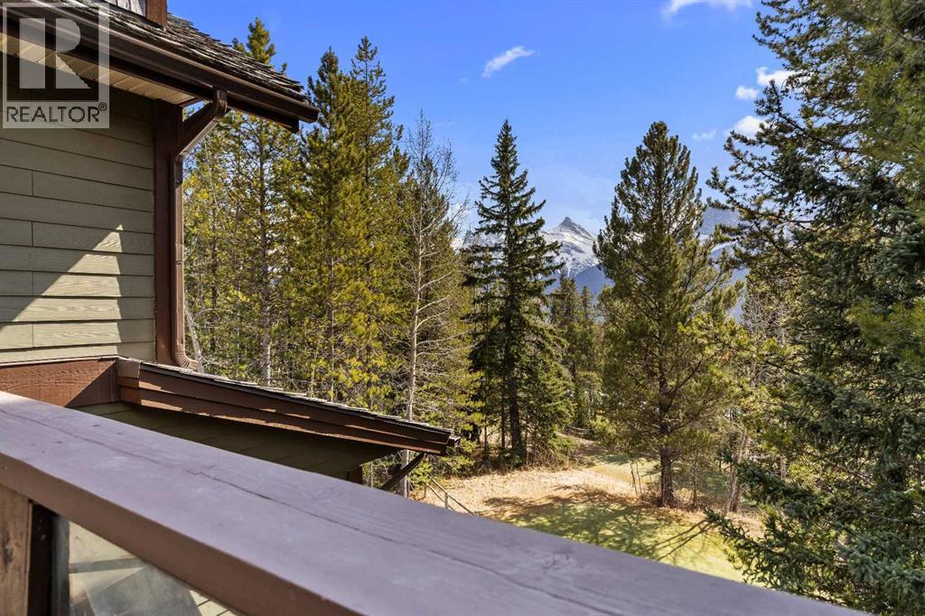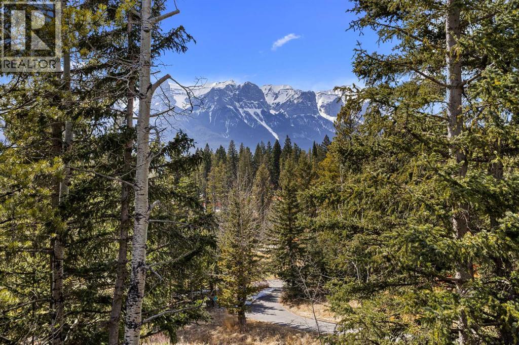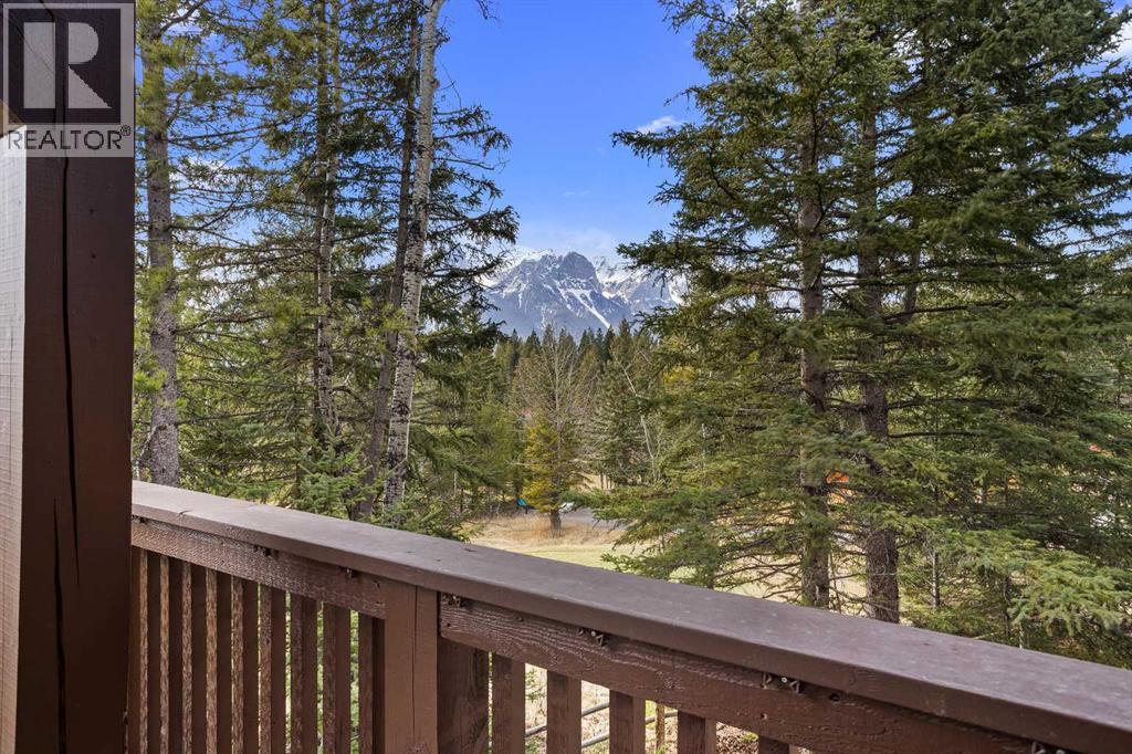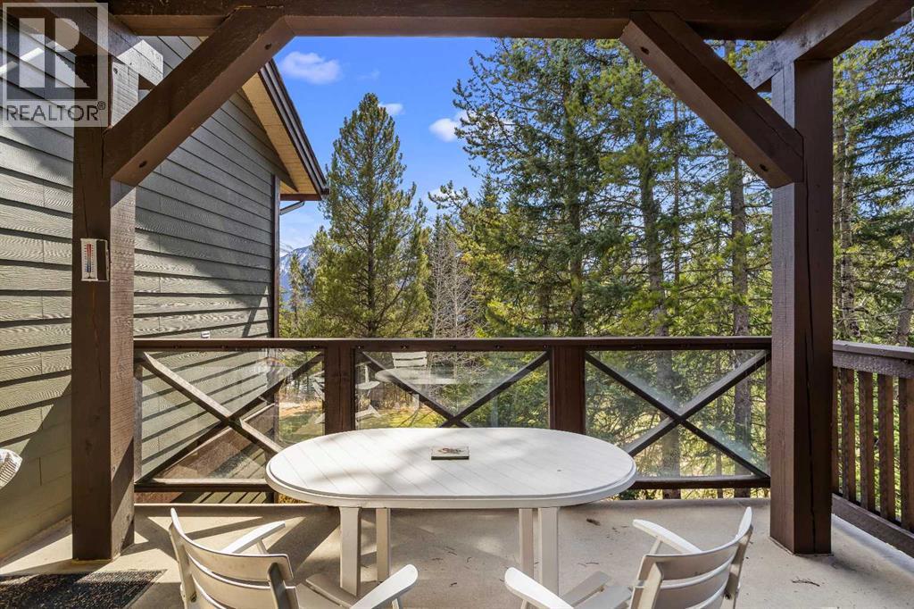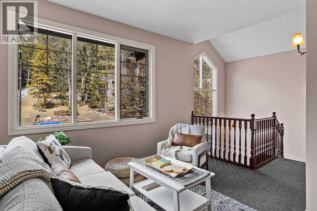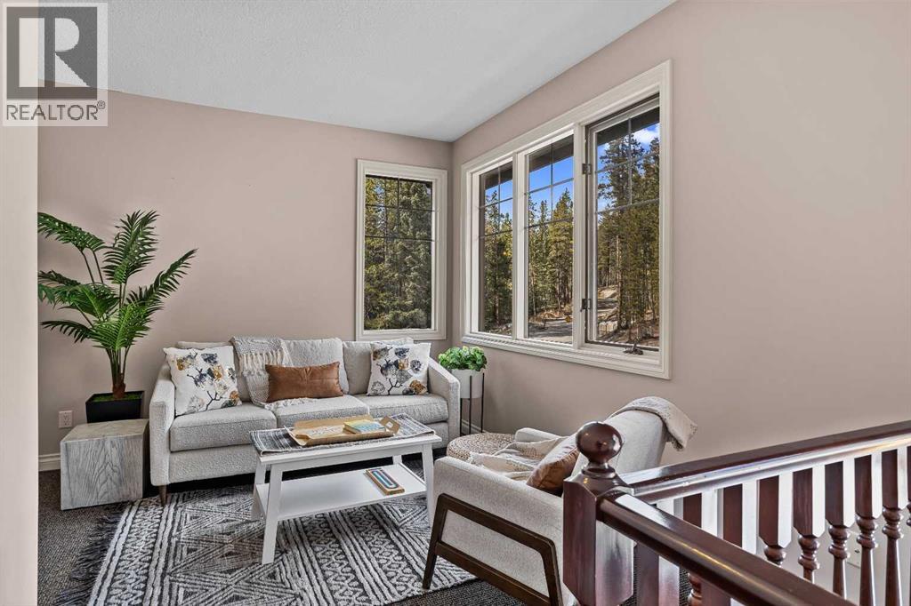 Some properties in Canmore have a great view. This one has the whole picture.Sitting at the quiet end of Stone Creek Road, this 3,000+ sq ft southwest-facing end-unit is perched up in the trees above the Bow Valley, looking out over the 9th tee of Silvertip Golf Course and the full south range beyond. Walk out your front door and you are straight onto the trail network. No neighbours behind, no traffic coming through, just the creek, the trees, and the mountains in every direction.From the moment you step inside, the pace of life slows down. The main floor is anchored by a Rundlestone fireplace, with big windows that bring the outside in and an open-concept kitchen and dining area designed for easy entertaining, framing uninterrupted views of the valley below from morning through to sunset. Tucked into the trees on the main level, a window-wrapped office offers a genuinely inspiring place to spend a morning.Upstairs, a tranquil sitting area gazes over the creek bed toward the peaks, alongside 2 spacious bedrooms and a primary retreat with a private balcony and elevated mountain views. The steam shower ensuite adds a layer of comfort that makes this space feel like a proper escape from the everyday.The walkout lower level includes a 3rd bedroom and a generous unfinished space with in-floor heating already roughed in, offering real potential for a 4th bedroom, media room, or whatever your lifestyle calls for. Large windows and direct patio access keep it bright and connected to the outdoors.With the Silvertip clubhouse, restaurant, and market just a short walk away and Canmore's trail network right at your door, this property offers a balance that is genuinely hard to find in the mountains. Privacy without isolation. Tranquility without compromise. Properties at this end of the road, up in the trees with this kind of setting, do not come available often. (id:51989)