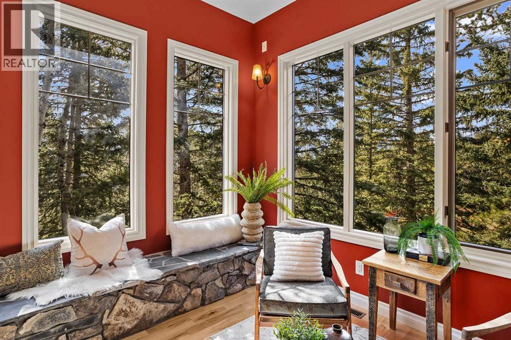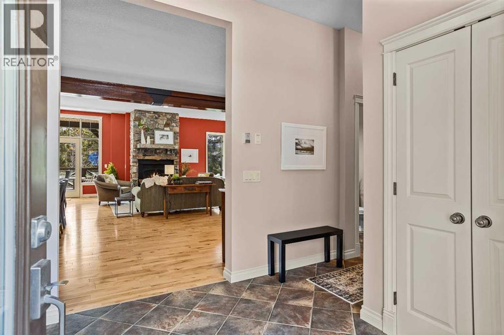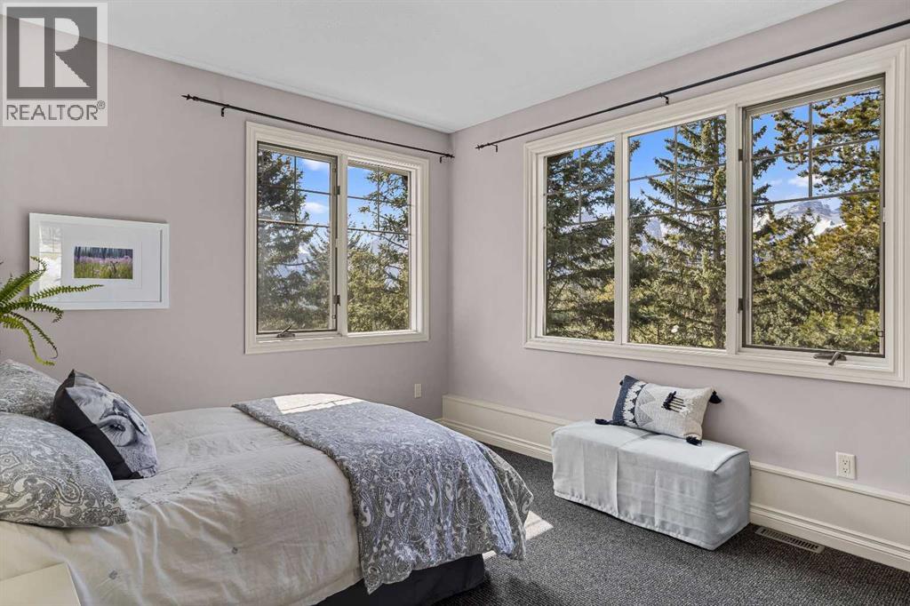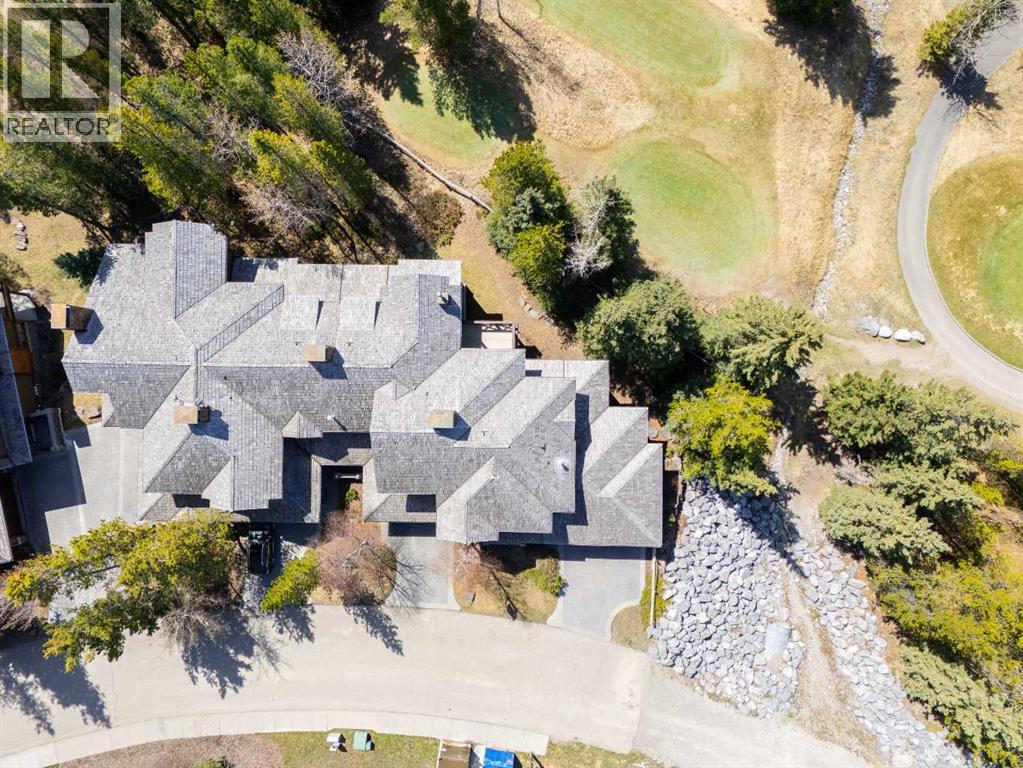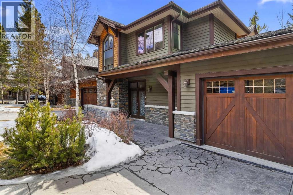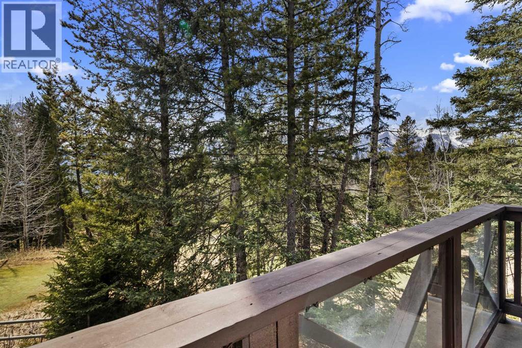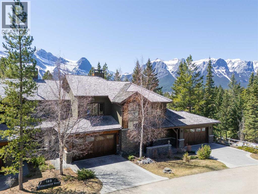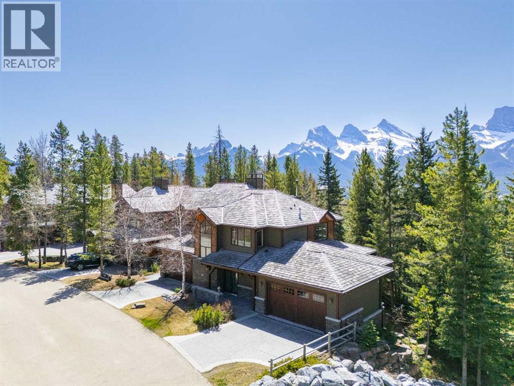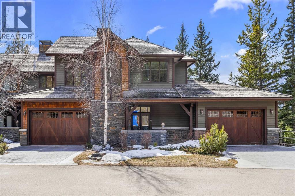 Some properties in Canmore have a great view. This one has the whole picture.Sitting at the quiet end of Stone Creek Road, this 3,000+ sq ft southwest-facing end-unit is perched up in the trees above the Bow Valley, looking out over the 9th tee of Silvertip Golf Course and the full south range beyond. Walk out your front door and you are straight onto the trail network. No neighbours behind, no traffic coming through, just the creek, the trees, and the mountains in every direction.From the moment you step inside, the pace of life slows down. The main floor is anchored by a Rundlestone fireplace, with big windows that bring the outside in and an open-concept kitchen and dining area designed for easy entertaining, framing uninterrupted views of the valley below from morning through to sunset. Tucked into the trees on the main level, a window-wrapped office offers a genuinely inspiring place to spend a morning.Upstairs, a tranquil sitting area gazes over the creek bed toward the peaks, alongside 2 spacious bedrooms and a primary retreat with a private balcony and elevated mountain views. The steam shower ensuite adds a layer of comfort that makes this space feel like a proper escape from the everyday.The walkout lower level includes a 3rd bedroom and a generous unfinished space with in-floor heating already roughed in, offering real potential for a 4th bedroom, media room, or whatever your lifestyle calls for. Large windows and direct patio access keep it bright and connected to the outdoors.With the Silvertip clubhouse, restaurant, and market just a short walk away and Canmore's trail network right at your door, this property offers a balance that is genuinely hard to find in the mountains. Privacy without isolation. Tranquility without compromise. Properties at this end of the road, up in the trees with this kind of setting, do not come available often. (id:51989)