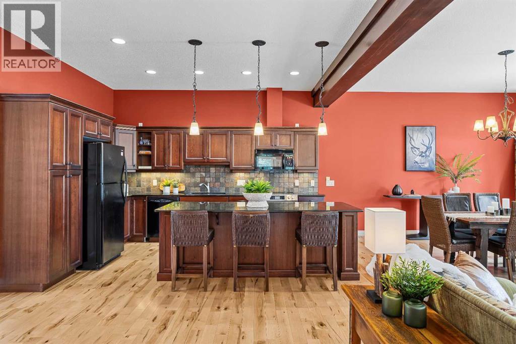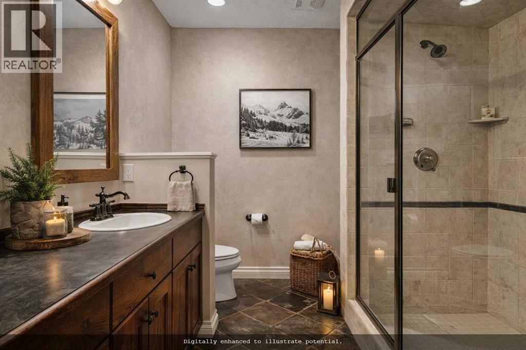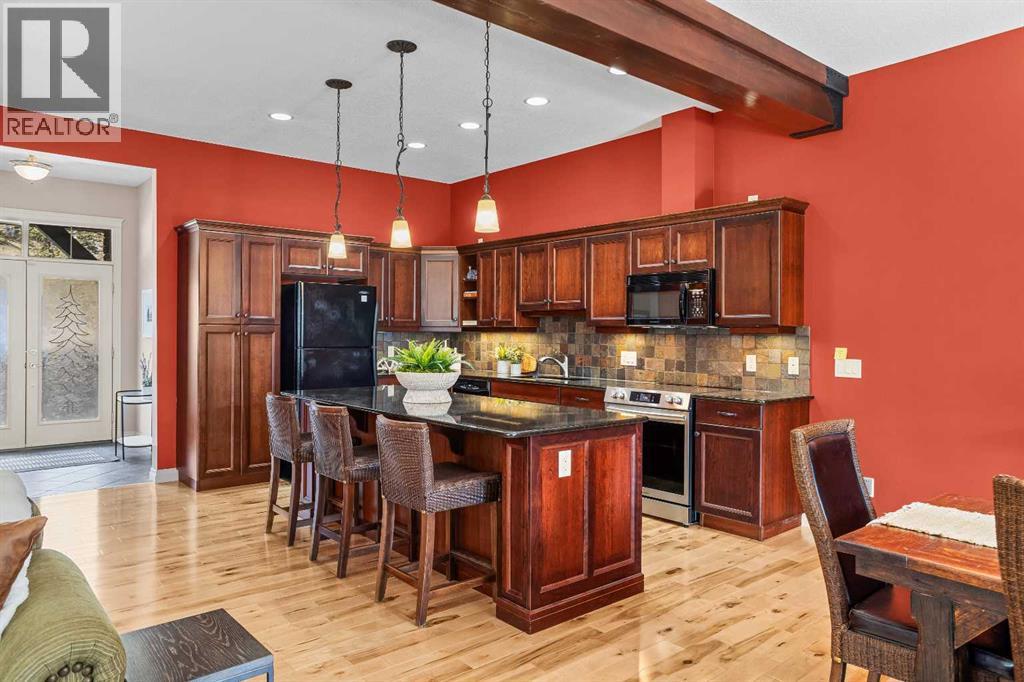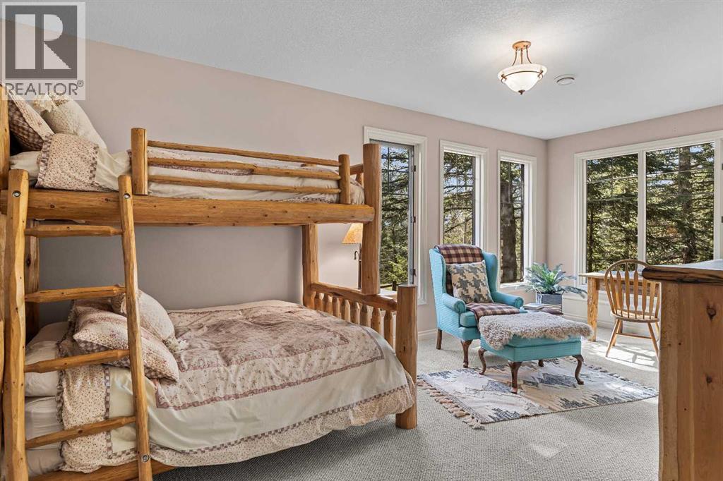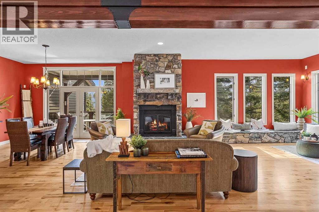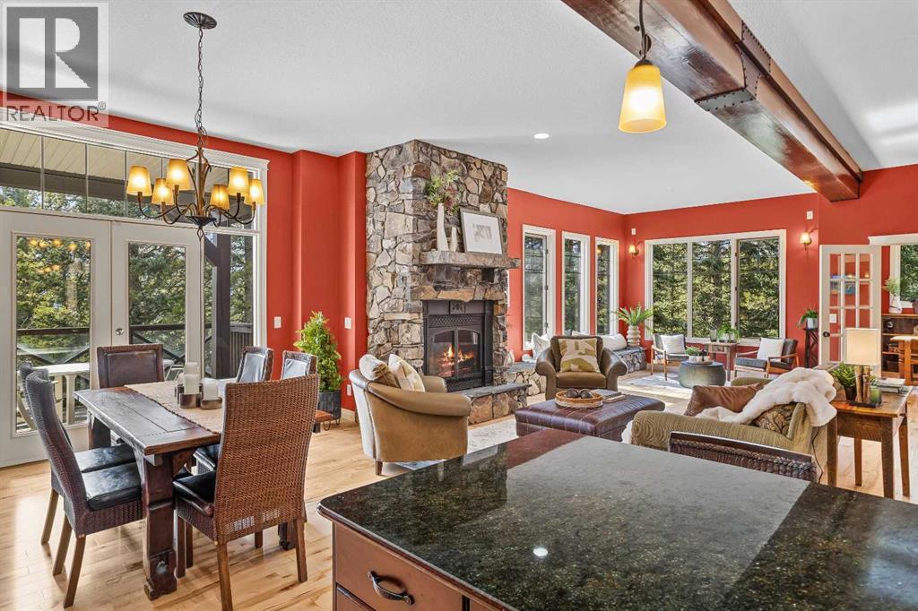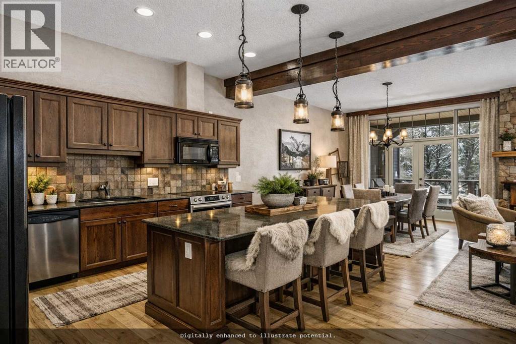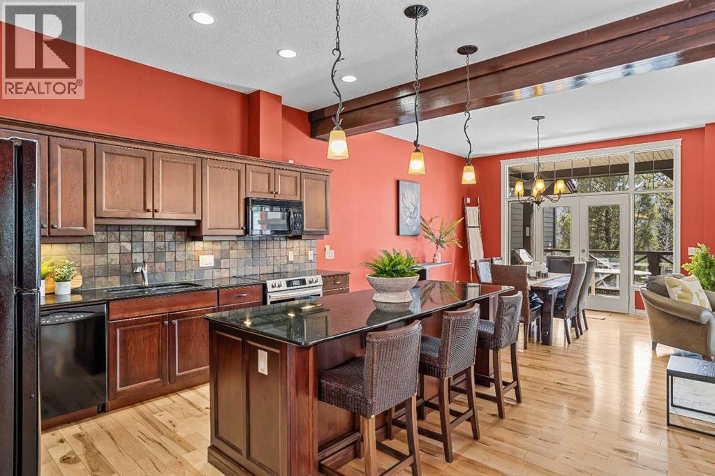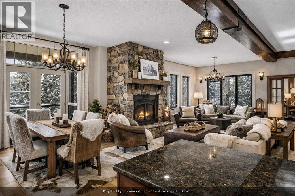 Some properties in Canmore have a great view. This one has the whole picture.Sitting at the quiet end of Stone Creek Road, this 3,000+ sq ft southwest-facing end-unit is perched up in the trees above the Bow Valley, looking out over the 9th tee of Silvertip Golf Course and the full south range beyond. Walk out your front door and you are straight onto the trail network. No neighbours behind, no traffic coming through, just the creek, the trees, and the mountains in every direction.From the moment you step inside, the pace of life slows down. The main floor is anchored by a Rundlestone fireplace, with big windows that bring the outside in and an open-concept kitchen and dining area designed for easy entertaining, framing uninterrupted views of the valley below from morning through to sunset. Tucked into the trees on the main level, a window-wrapped office offers a genuinely inspiring place to spend a morning.Upstairs, a tranquil sitting area gazes over the creek bed toward the peaks, alongside 2 spacious bedrooms and a primary retreat with a private balcony and elevated mountain views. The steam shower ensuite adds a layer of comfort that makes this space feel like a proper escape from the everyday.The walkout lower level includes a 3rd bedroom and a generous unfinished space with in-floor heating already roughed in, offering real potential for a 4th bedroom, media room, or whatever your lifestyle calls for. Large windows and direct patio access keep it bright and connected to the outdoors.With the Silvertip clubhouse, restaurant, and market just a short walk away and Canmore's trail network right at your door, this property offers a balance that is genuinely hard to find in the mountains. Privacy without isolation. Tranquility without compromise. Properties at this end of the road, up in the trees with this kind of setting, do not come available often. (id:51989)