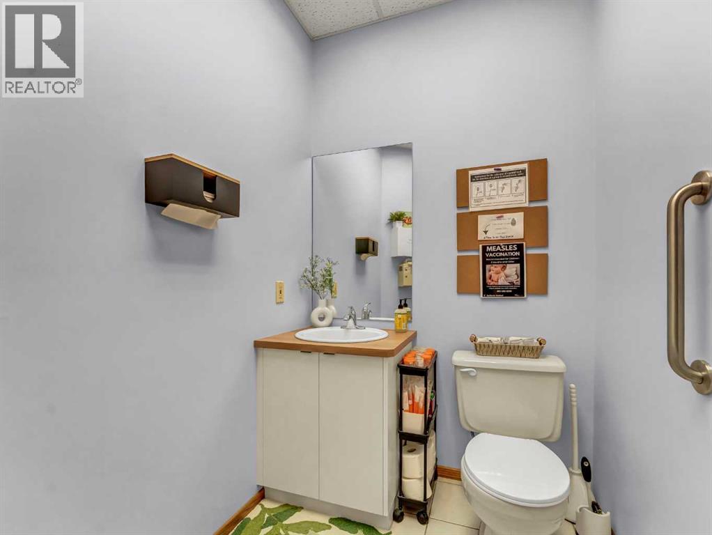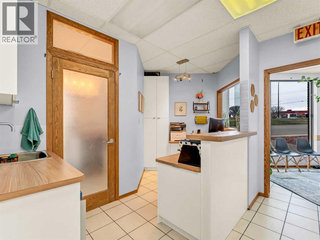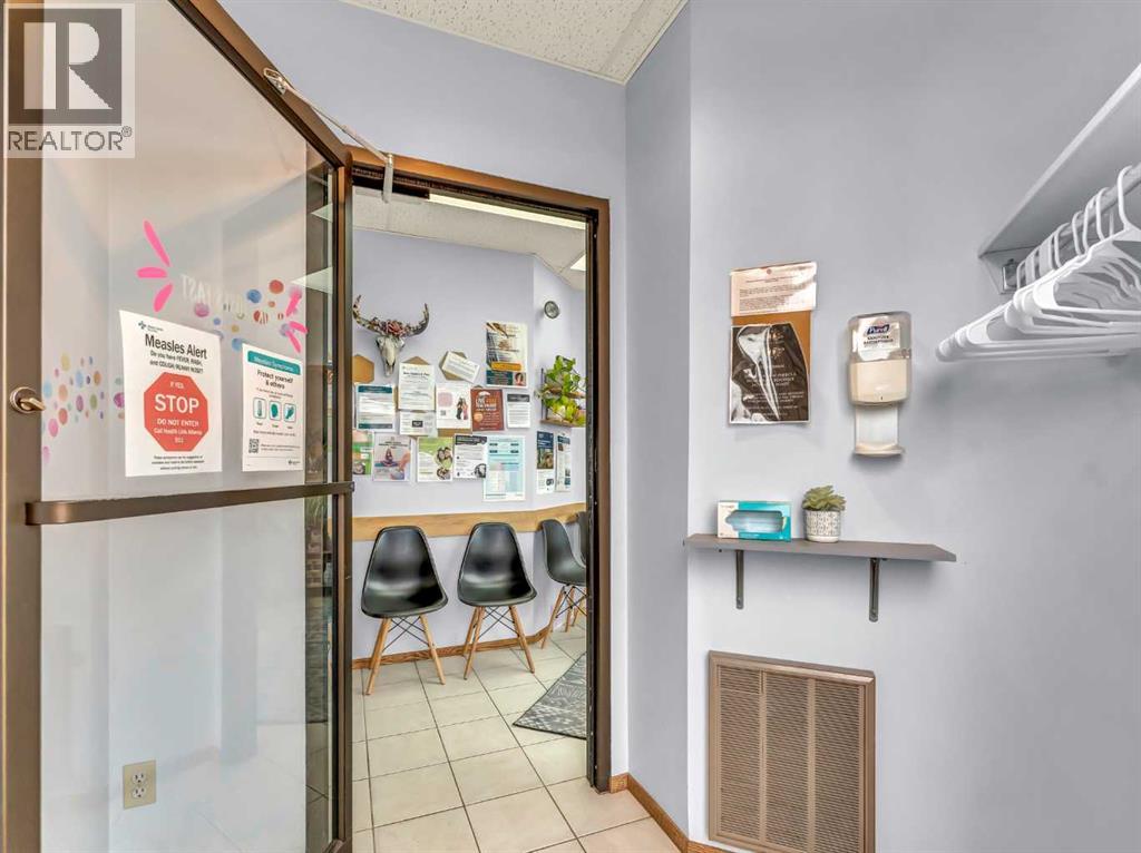 Opportunity knocks with this clean, functional, and professional commercial space located in a well established building housing medical and consulting businesses. Whether you’re looking to open a clinic, wellness practice, or professional office, this space is well suited to support your operation from day one. The layout offers a front reception area with designated waiting space, 3 private exam/patient rooms, a staff kitchen/lunchroom, and a 2-piece bathroom. The efficient floor plan allows for easy customization depending on your business needs. Located on a high exposure corner, this property benefits from strong visibility and easy access, complemented by ample on-site parking for both staff and clients. MU (Mixed Use) zoning provides added flexibility for a variety of permitted uses. Lease rate is $2,000/month + Utilities. An excellent opportunity to establish or expand your business in a proven professional setting. All office equipment, medical office furniture, and cabinetry are negotiable and may be included subject to the agreed-upon lease terms. This property is also for sale (MLS #A2302558). (id:51989)