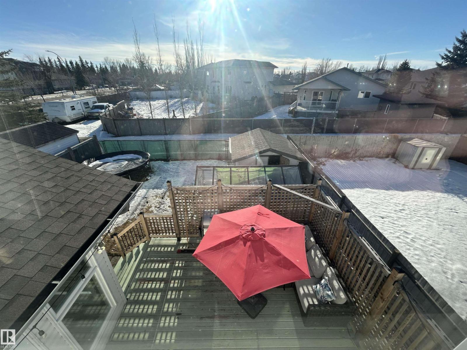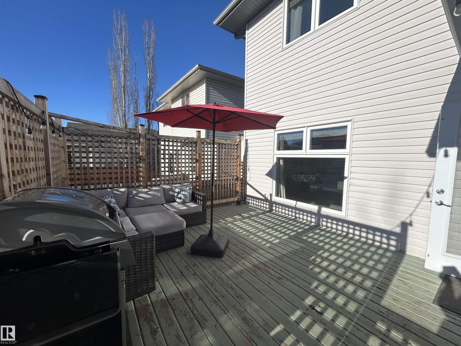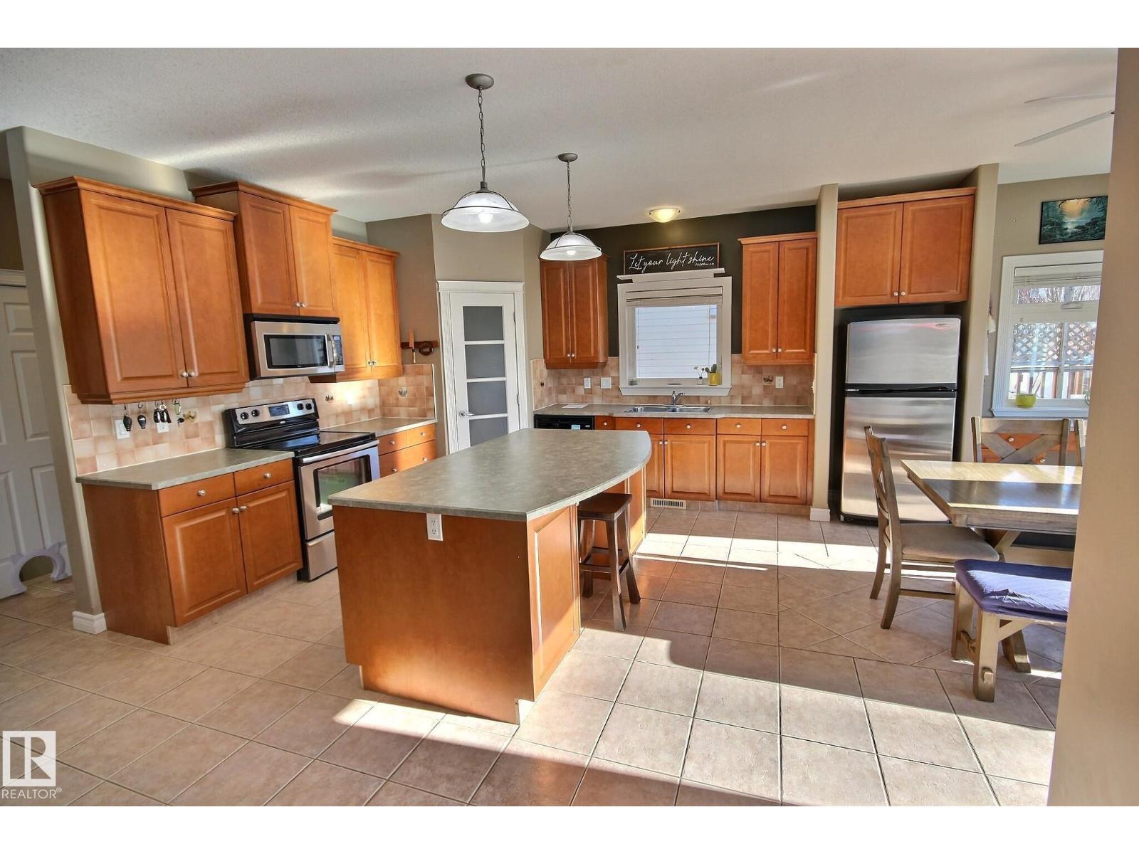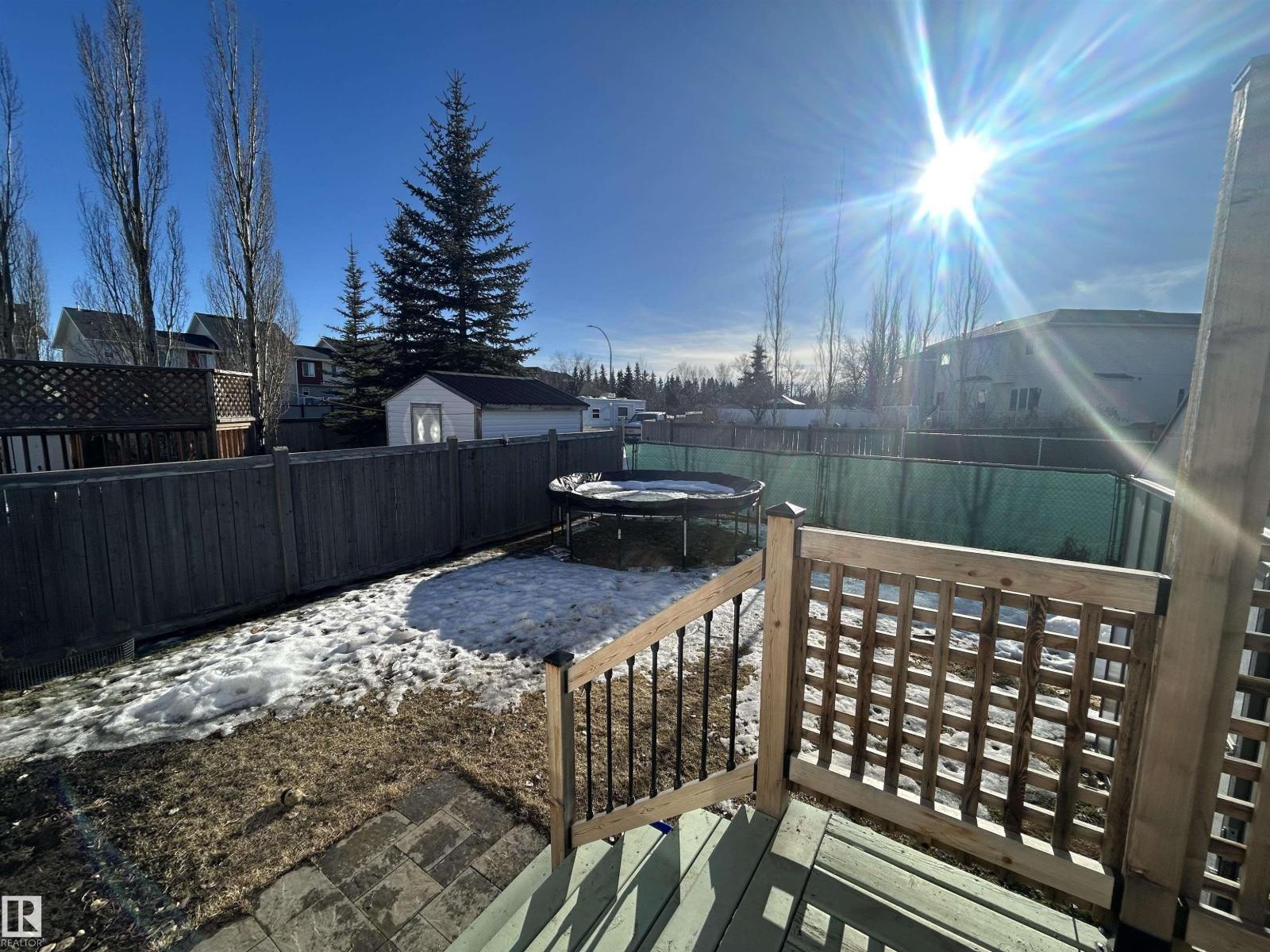$50,000 in recent renovations! ALL new triple pane windows, NEW HE furnace & NEW shingles! Air Conditioned & across the street from a park & greenspace this beautiful home offers a super functional layout, open concept main floor w/full wall of huge windows, SW exposure floods the home in natural light, loads of cabinetry, island w/ extended eating bar, walk thru pantry, open to dining nook with Garden door access to attached back deck & fenced and landscaped yard w/handy back alley access, open to living room anchored by GAS fireplace w/mantle, down hall to 1/2 bath & laundry, upper level w/big vaulted bonus room. 3 bedrooms, primary ensuite with jetted tub & shower, other 2 rooms a good size & share a 4 piece bath, framed basement being used as a big playroom with carpeting & offers loads of framed in storage. Close to schools, around the corner from shops and restaurants, easy access to Edmonton and the international airport. Nothing to do here but move in and enjoy! (id:51989)