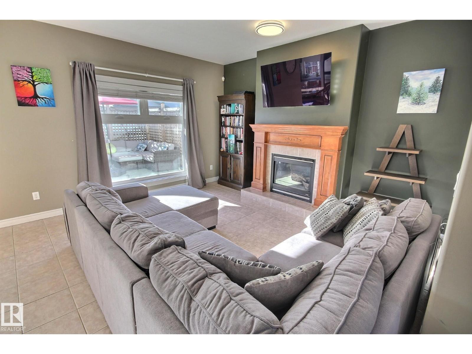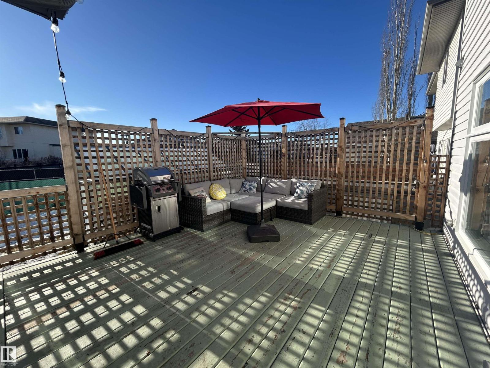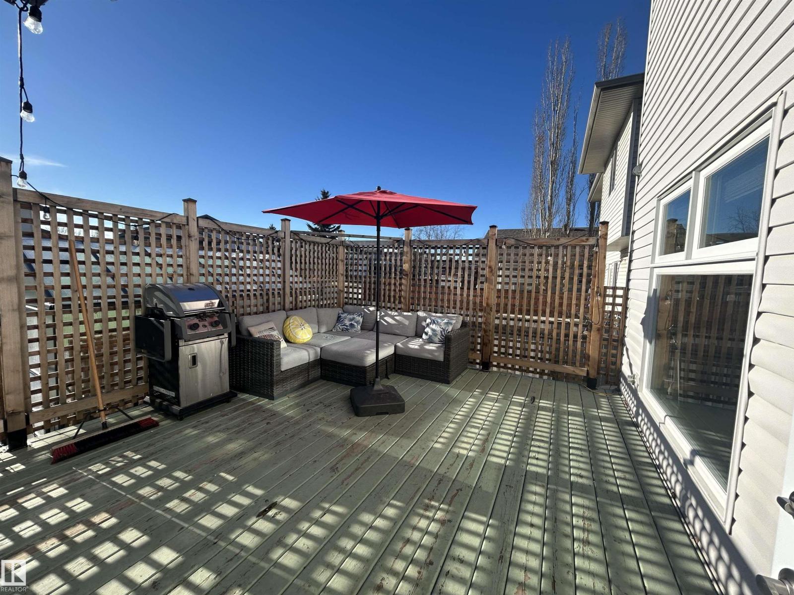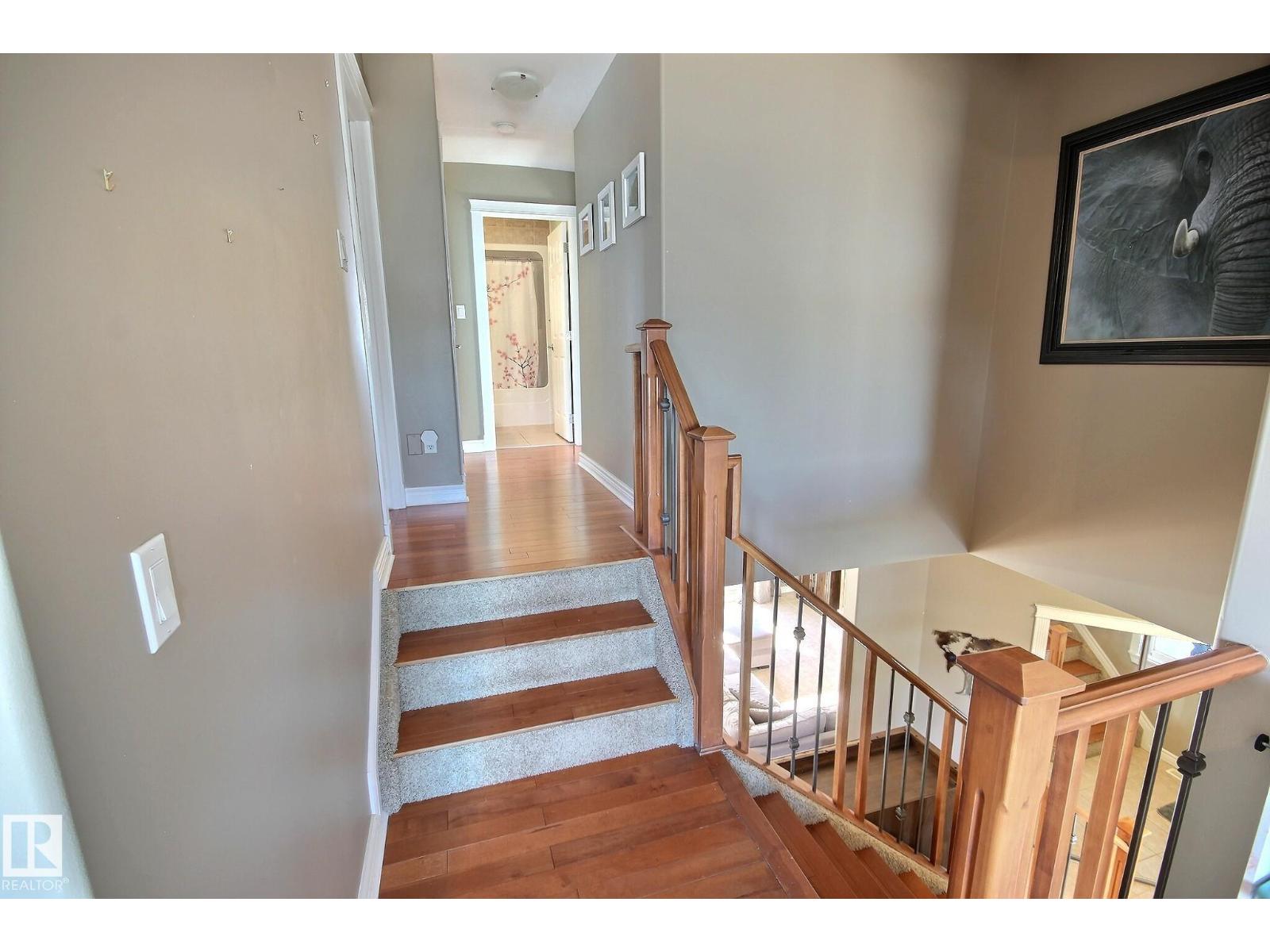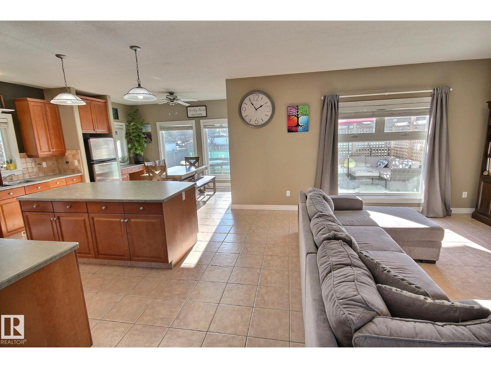 $50,000 in recent renovations! ALL new triple pane windows, NEW HE furnace & NEW shingles! Air Conditioned & across the street from a park & greenspace this beautiful home offers a super functional layout, open concept main floor w/full wall of huge windows, SW exposure floods the home in natural light, loads of cabinetry, island w/ extended eating bar, walk thru pantry, open to dining nook with Garden door access to attached back deck & fenced and landscaped yard w/handy back alley access, open to living room anchored by GAS fireplace w/mantle, down hall to 1/2 bath & laundry, upper level w/big vaulted bonus room. 3 bedrooms, primary ensuite with jetted tub & shower, other 2 rooms a good size & share a 4 piece bath, framed basement being used as a big playroom with carpeting & offers loads of framed in storage. Close to schools, around the corner from shops and restaurants, easy access to Edmonton and the international airport. Nothing to do here but move in and enjoy! (id:51989)