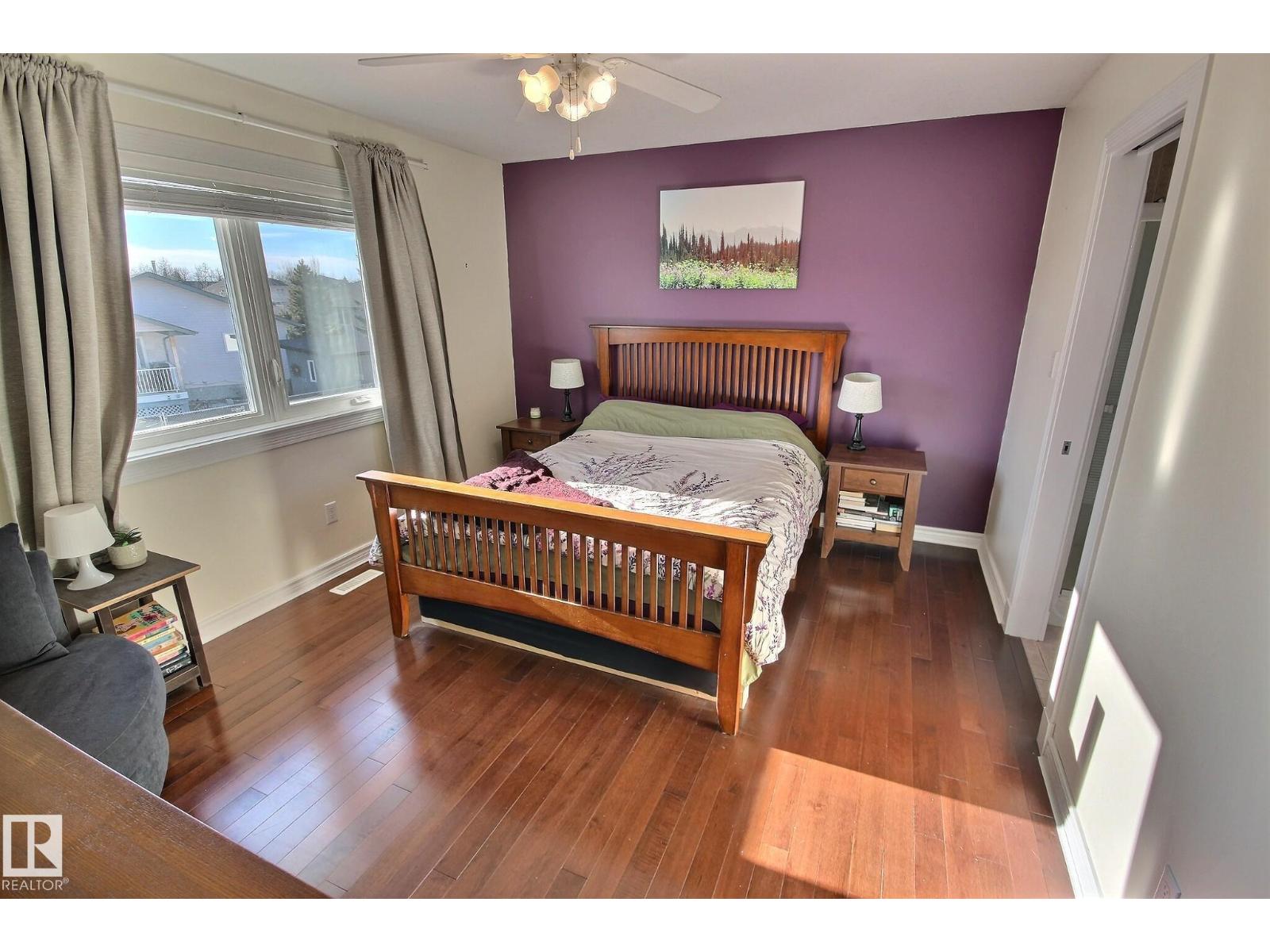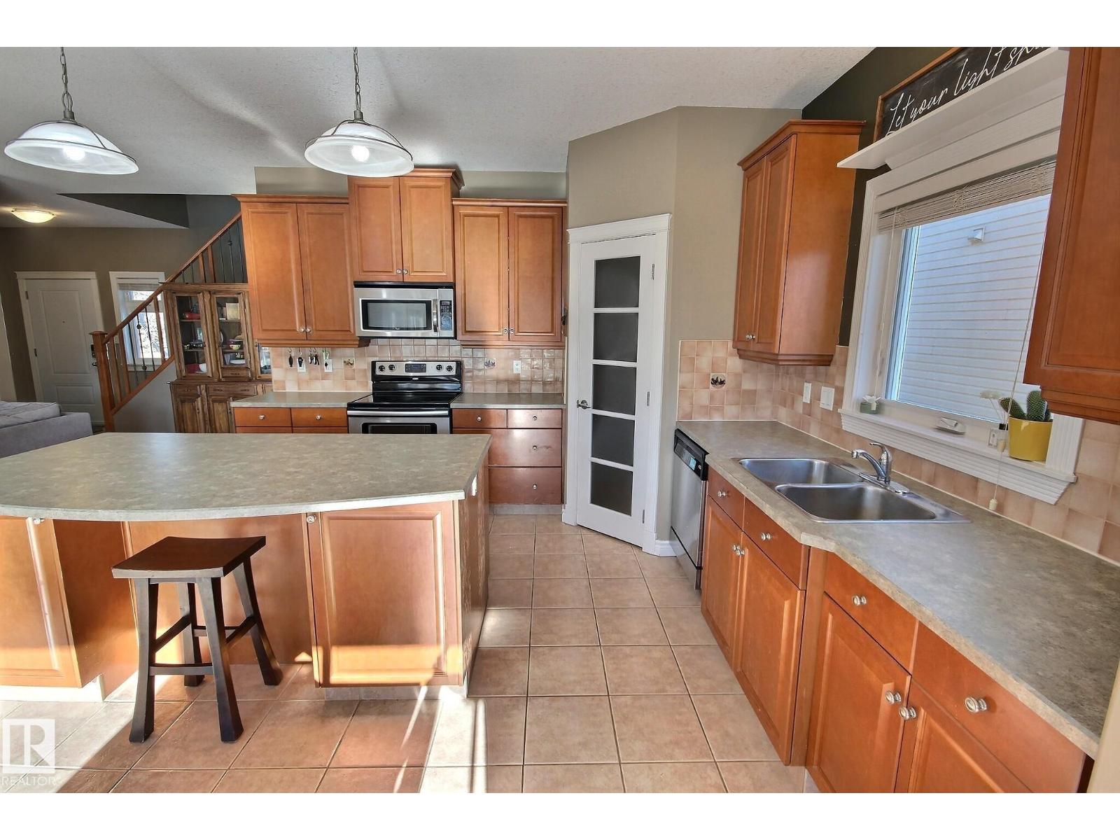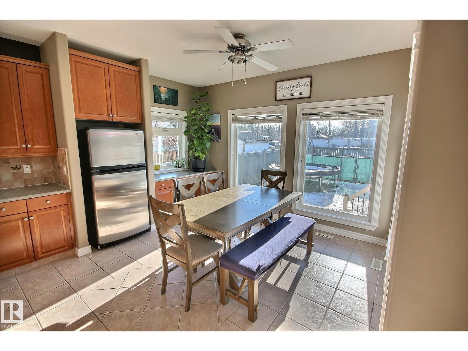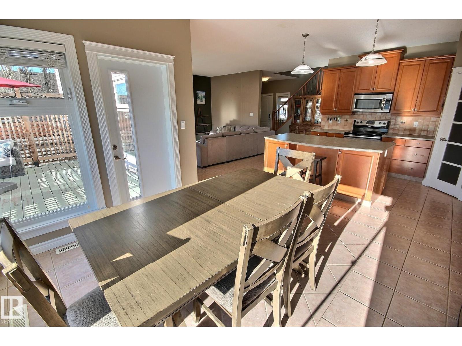 $50,000 in recent renovations! ALL new triple pane windows, NEW HE furnace & NEW shingles! Air Conditioned & across the street from a park & greenspace this beautiful home offers a super functional layout, open concept main floor w/full wall of huge windows, SW exposure floods the home in natural light, loads of cabinetry, island w/ extended eating bar, walk thru pantry, open to dining nook with Garden door access to attached back deck & fenced and landscaped yard w/handy back alley access, open to living room anchored by GAS fireplace w/mantle, down hall to 1/2 bath & laundry, upper level w/big vaulted bonus room. 3 bedrooms, primary ensuite with jetted tub & shower, other 2 rooms a good size & share a 4 piece bath, framed basement being used as a big playroom with carpeting & offers loads of framed in storage. Close to schools, around the corner from shops and restaurants, easy access to Edmonton and the international airport. Nothing to do here but move in and enjoy! (id:51989)