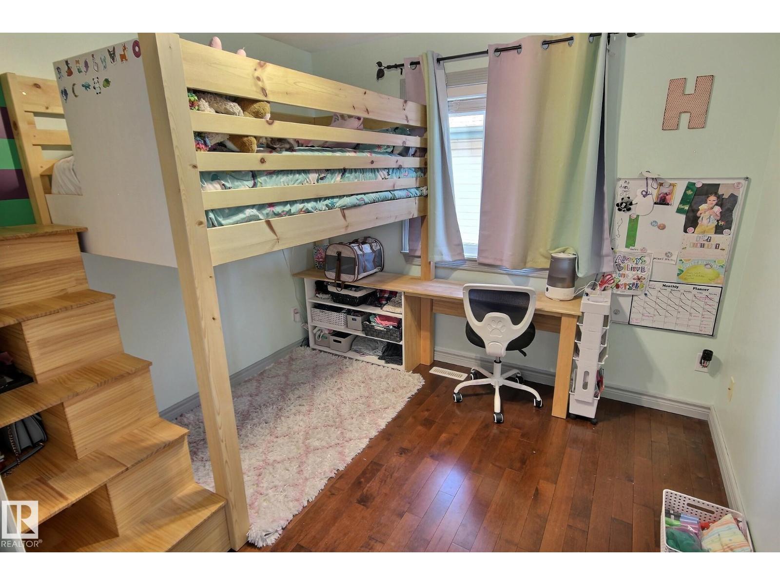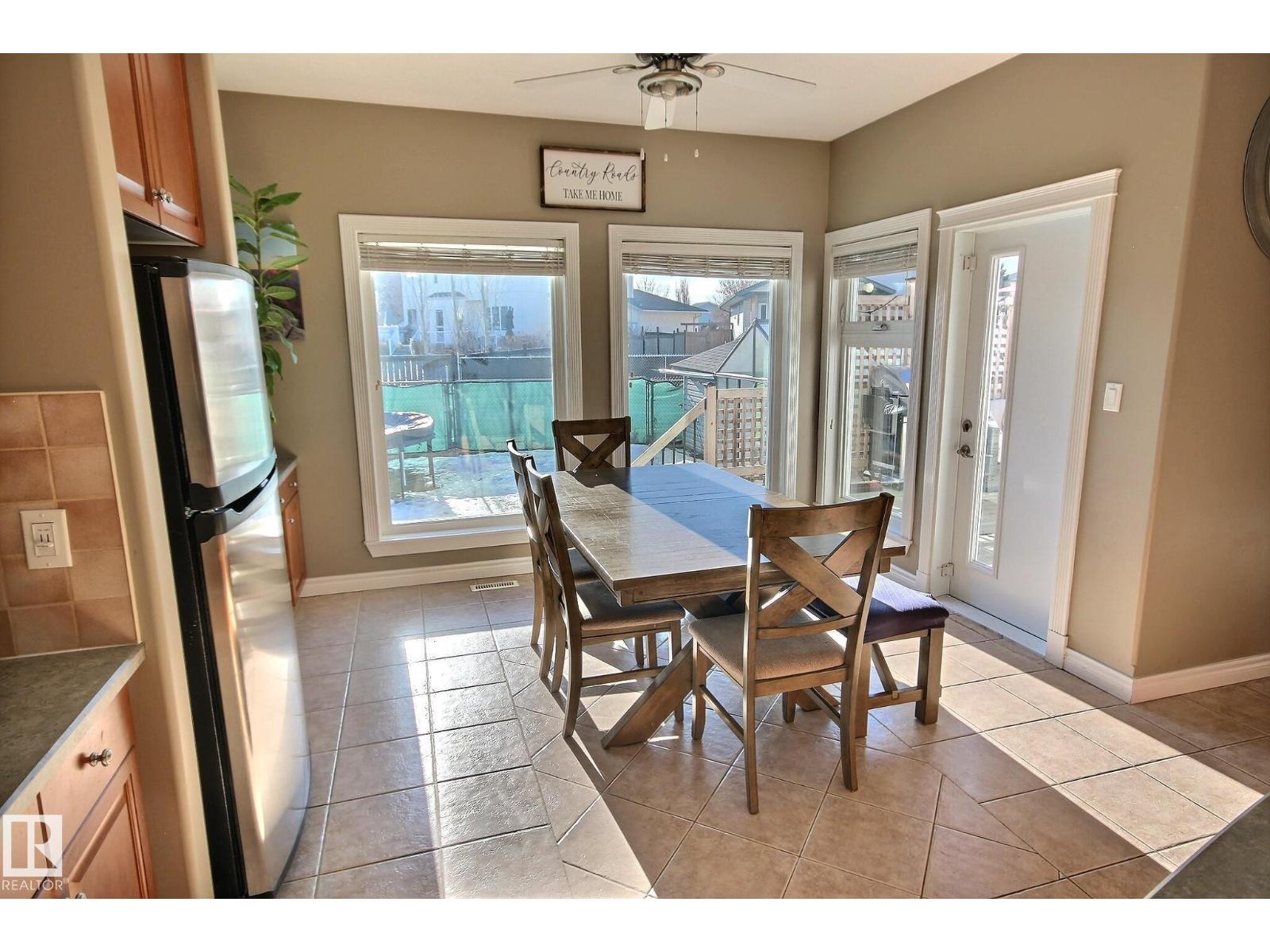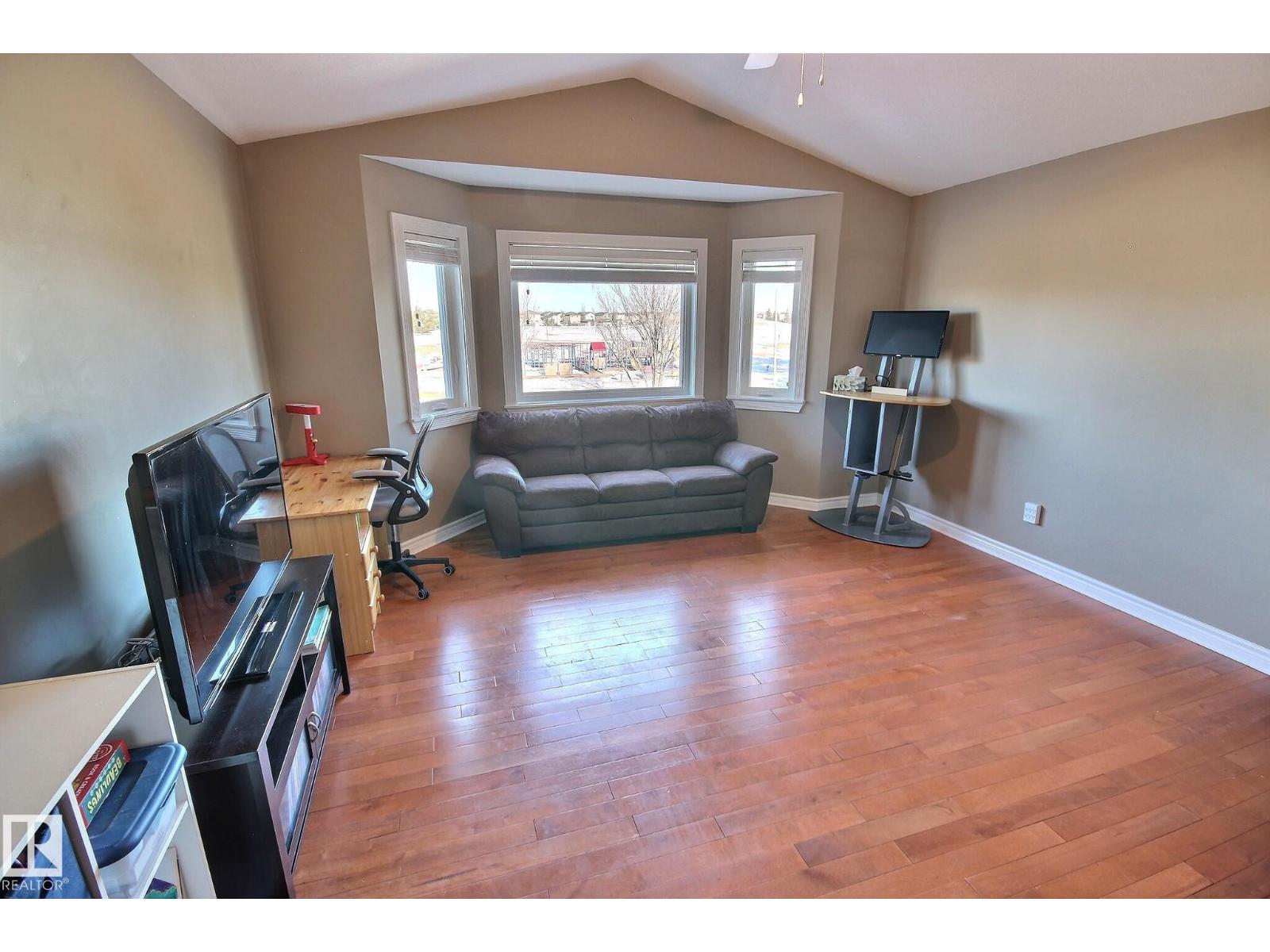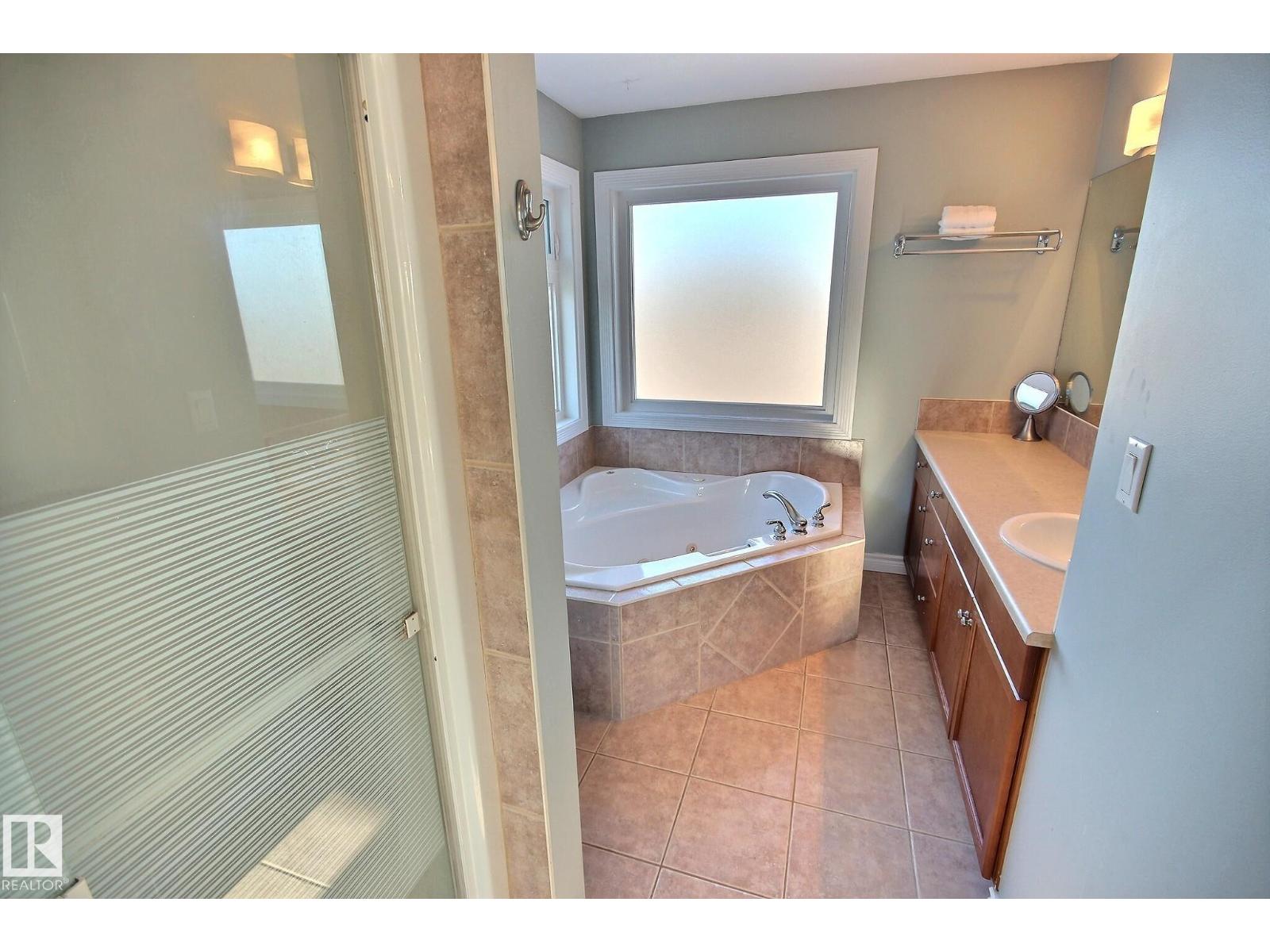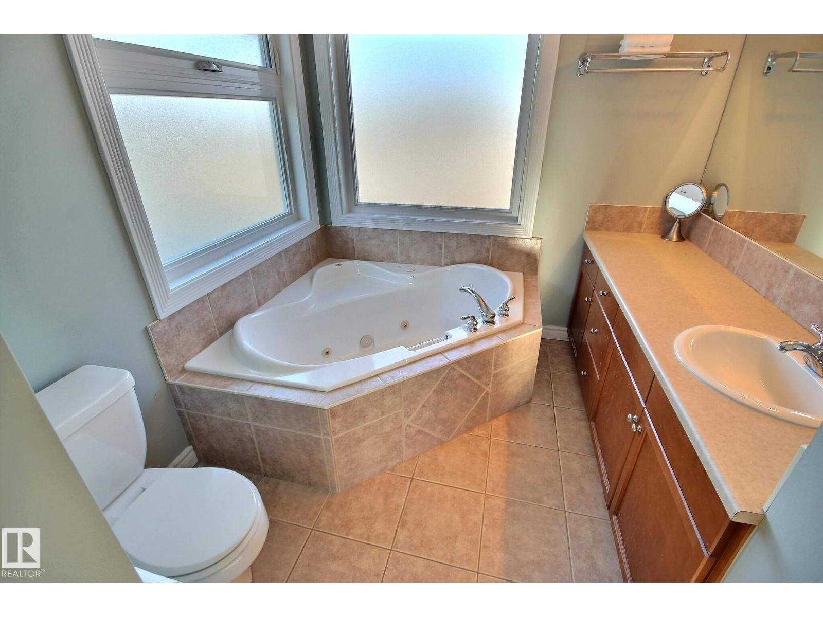 $50,000 in recent renovations! ALL new triple pane windows, NEW HE furnace & NEW shingles! Air Conditioned & across the street from a park & greenspace this beautiful home offers a super functional layout, open concept main floor w/full wall of huge windows, SW exposure floods the home in natural light, loads of cabinetry, island w/ extended eating bar, walk thru pantry, open to dining nook with Garden door access to attached back deck & fenced and landscaped yard w/handy back alley access, open to living room anchored by GAS fireplace w/mantle, down hall to 1/2 bath & laundry, upper level w/big vaulted bonus room. 3 bedrooms, primary ensuite with jetted tub & shower, other 2 rooms a good size & share a 4 piece bath, framed basement being used as a big playroom with carpeting & offers loads of framed in storage. Close to schools, around the corner from shops and restaurants, easy access to Edmonton and the international airport. Nothing to do here but move in and enjoy! (id:51989)