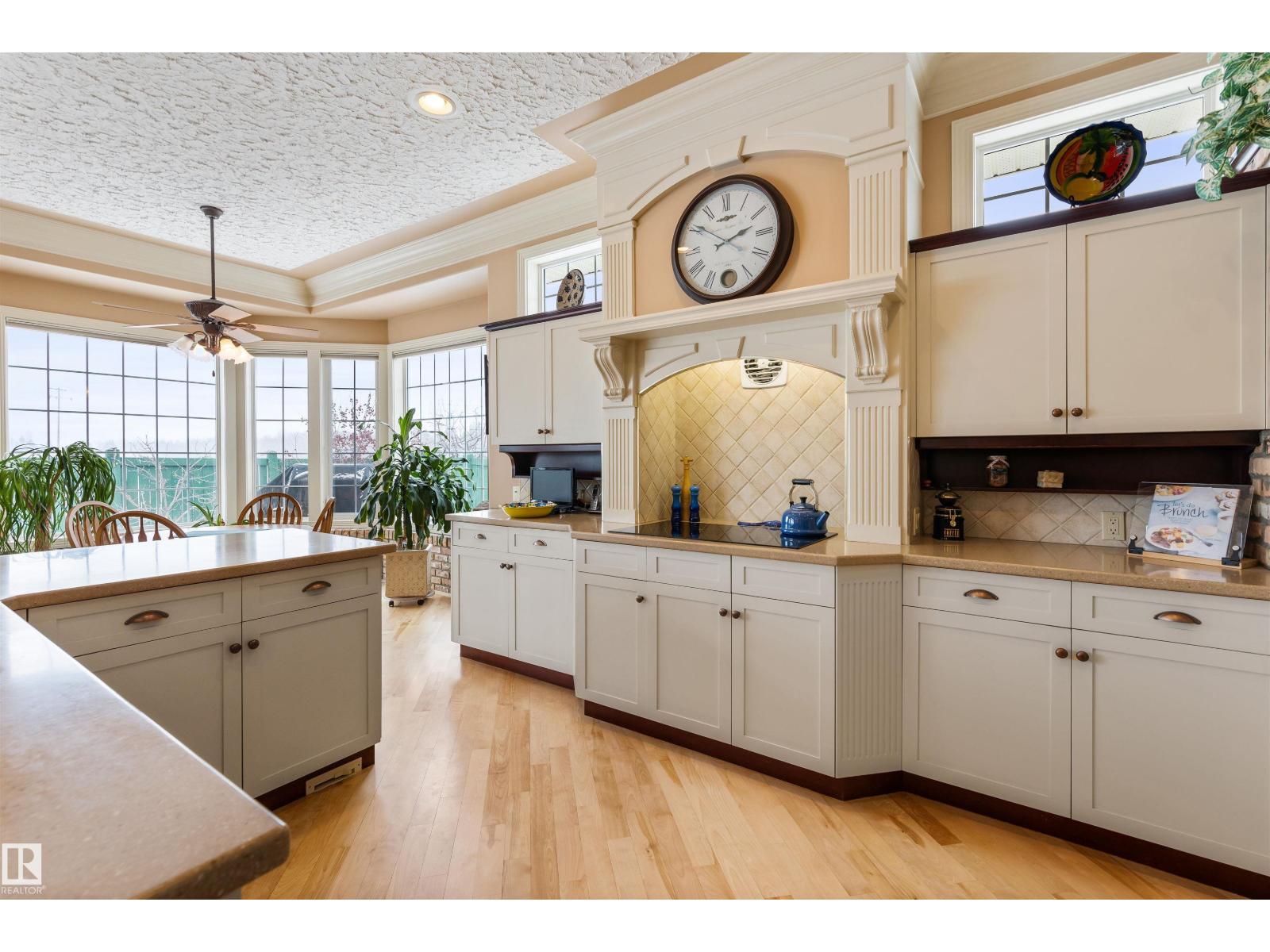 Welcome to this custom-built Heredity bungalow! The entrance has beautiful ceiling detail & overlooks the open design. French doors lead into a flex room w/ large windows looking out front. At the centre of the home is the dining space which can accommodate large scale entertaining. The living room has a grand wood-burning f/p w/ extensive brick character. The kitchen has a butler style walk through pantry, Corian counters, eating bar island, s/s appliances, double built in wall ovens & pot/pan drawers. The dining nook has access to the backyard wrap around deck & exposed aggregate patio. A convenient walk-through closet is located between the front door & the garage entry. The spacious laundry room has lots of natural light. The primary bedroom has large windows, a walk in closet & a 4pce ensuite which has a 2 person tub w/ jets. The FULLY FINISHED basement has a massive rec room, dry bar, 3 large bedrooms w/ their own walk in closet & a 3pce bath. A TRIPLE ATTACHED GARAGE with drive through! (id:51989)