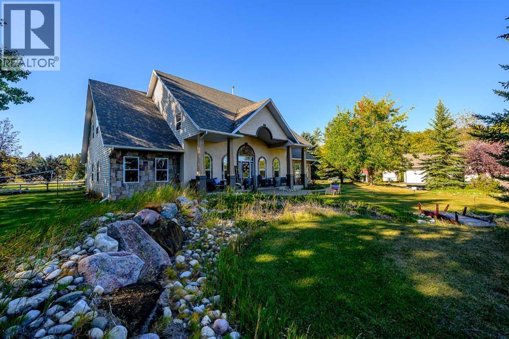 Spectacular setting for this stunning custom-built two-story home, just minutes from Grande Prairie! Nestled on 3.09 acres and zoned CR-5, this expansive 4,500 sq. ft. residence offers space, comfort, and endless possibilities.The main floor features a beautifully upgraded kitchen that flows seamlessly into the impressive great room with hardwood floors and a cozy fireplace. Also on the main level are four spacious bedrooms, three bathrooms, a private office, and convenient laundry.Upstairs, you’ll find three additional bedrooms, a full bathroom, and a dedicated theater room perfect for family movie nights.Step outside into your private outdoor oasis—hot tub, gazebo, and professionally landscaped yard featuring curbed tree islands.For parking and projects, the home includes an attached triple-car garage plus a heated 1,200 sq. ft. detached shop with double garage doors and fully finished living quarters above.This remarkable property offers room for trucks, the option to run a home-based business, and the lifestyle you’ve been searching for—all in a prime location just outside the city. (id:51989)