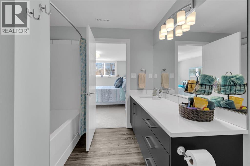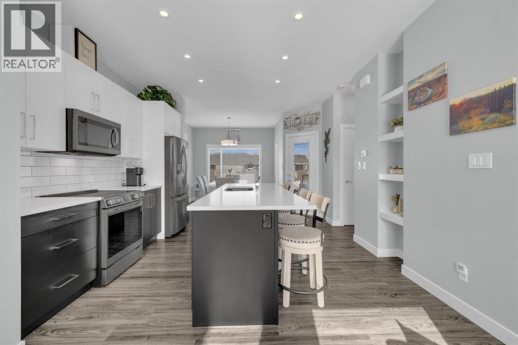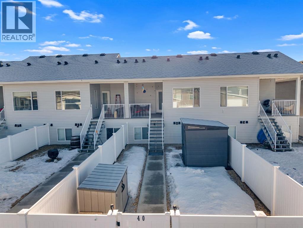 Welcome to 40 Evergreen Way in Red Deer. This stunning bi-level townhouse showcases premium upgraded finishes and a bright, open-concept design that’s both stylish and functional.The main floor features 9-foot ceilings, large windows in the living and dining areas, and durable vinyl plank flooring throughout, creating an inviting and airy atmosphere. The modern kitchen is a standout, complete with quartz countertops, a large central island, sleek white cabinetry, and stainless steel appliances, including an upgraded fridge and stove with a built-in air fryer—perfect for everyday living and entertaining alike. A convenient half bathroom completes the main level.Downstairs, the thoughtfully designed basement offers two spacious bedrooms, each with its own private ensuite bathroom and walk-in closet, providing comfort and privacy for family members or guests. The lower level also includes laundry facilities and additional storage space, ensuring practicality without sacrificing style.Step outside to enjoy a fully fenced backyard with low-maintenance zero-scape landscaping in both the front and back yards. The outdoor space also features a covered back deck, two backyard sheds for extra storage, and off-street parking conveniently located behind the yard.Situated near beautiful walking trails, green spaces, and parks, Evergreen is an ideal neighborhood for families and outdoor enthusiasts. Schools, shopping, restaurants, and everyday amenities are all just minutes away, offering the perfect balance of tranquility and convenience. Homes like this don’t come along often. Don’t miss your opportunity to make this exceptional property your own. (id:51989)