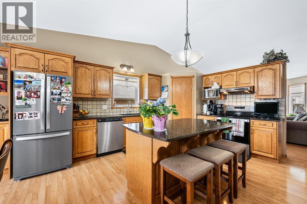 Welcome to this beautifully maintained home in the quiet and sought-after community of Parkview Estates in Lloydminster, AB. Built in 2001 by the original owners, this 1,350 sq ft property offers a rare and highly desirable layout with 3 bedrooms up and 2 bedrooms down—perfect for growing families.Step inside to discover a spacious and functional floor plan featuring generously sized rooms throughout. The main floor showcases all new laminate flooring, while the fully developed basement features new vinyl plank flooring and is constructed with ICF for added efficiency and durability. The large family room downstairs is the perfect place to relax, complete with a cozy gas fireplace, along with a separate laundry room offering ample storage.The kitchen is both stylish and practical with granite countertops (2018), and the home has seen numerous updates including new shingles in 2022 and freshly repainted ceilings throughout. Additional features include central air conditioning, central vacuum, and a heated double attached garage.Outside, you’ll find a beautifully maintained yard with mature trees including spruce, apple, and mountain ash, along with a garden area, garden shed, and convenient RV parking.This clean, well-cared-for home offers space, comfort, and pride of ownership in a fantastic location—an opportunity you don’t want to miss! (id:51989)