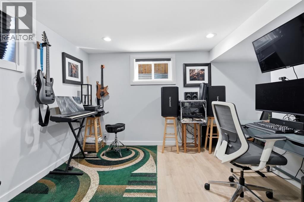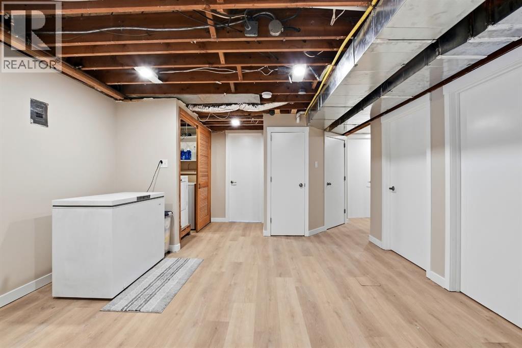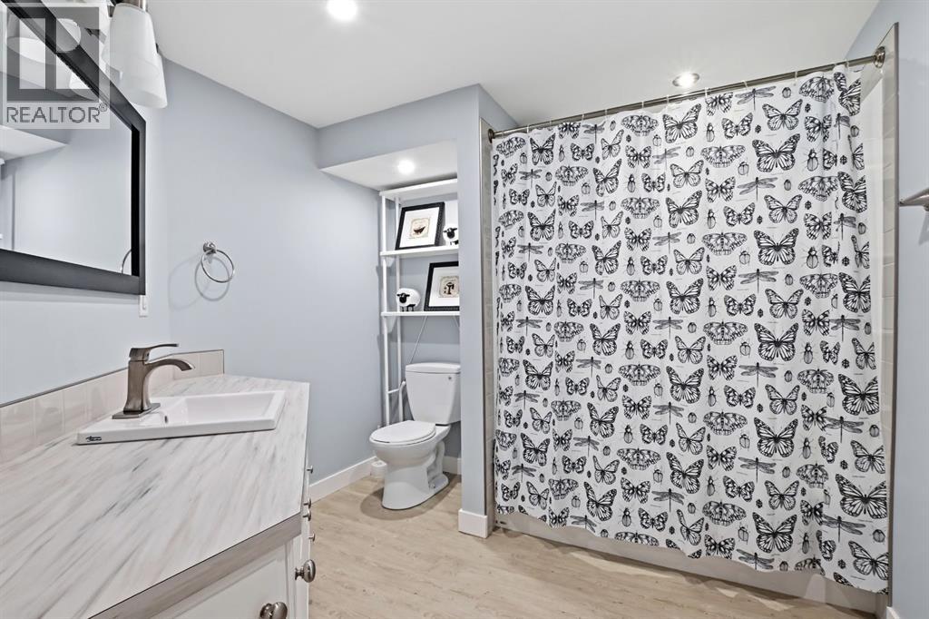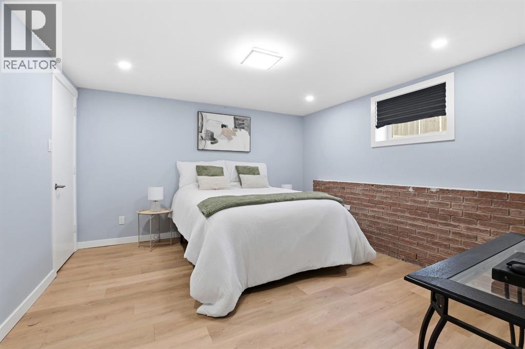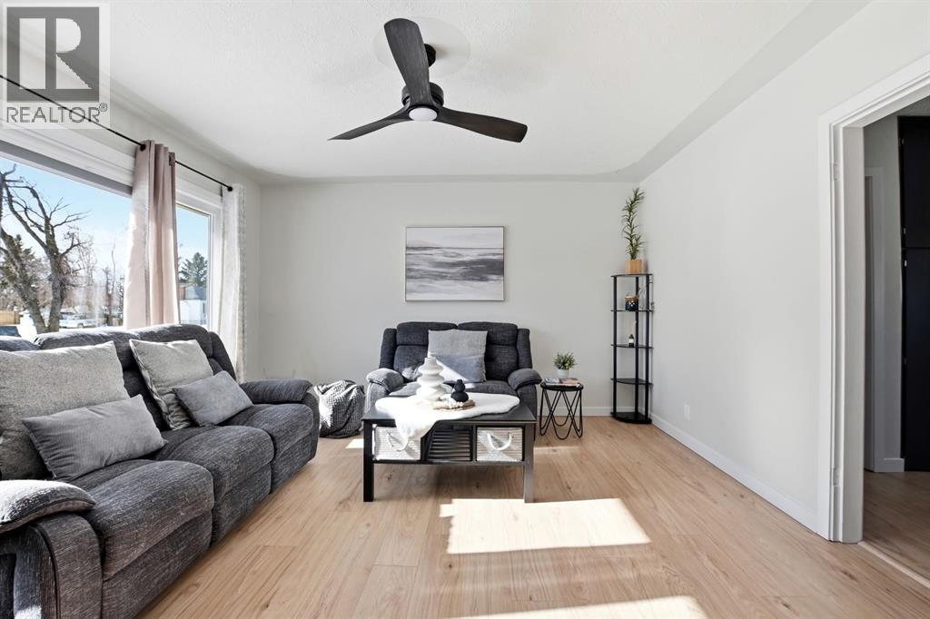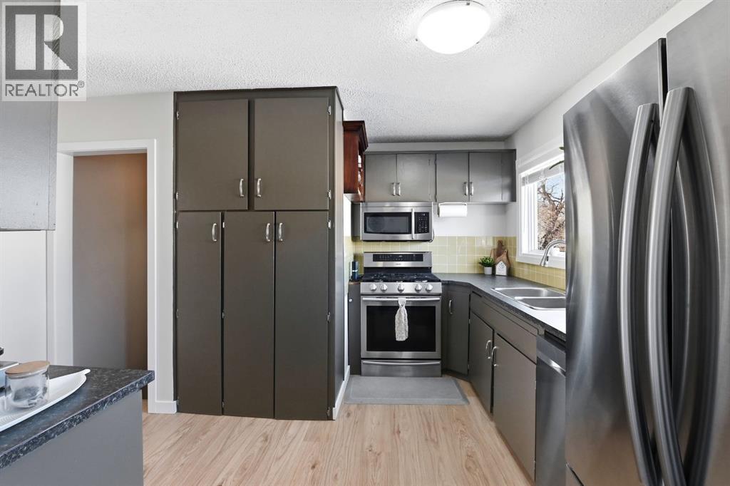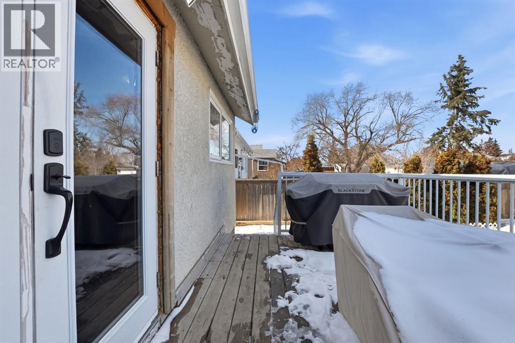 Welcome to this charming and thoughtfully updated bungalow situated on a double lot across from green space and a playground, and close to schools including Lindsay Thurber. From the moment you step inside, you’ll appreciate the blend of original character and modern finishes that create a warm and functional living space.The south-facing living room is filled with natural light and offers peaceful views of the park across the street. It flows seamlessly into the refreshed kitchen, featuring new countertops, freshly painted cabinetry, updated flooring (2026), and a gas stove (2019). A spacious dining area and large pantry add everyday practicality.The main floor offers two bedrooms, including a comfortable primary bedroom, along with a beautifully renovated 4-piece bathroom. Recent interior improvements include fresh paint throughout, updated flooring (2026), all new windows (2023) including the basement, and a new front door. Mechanical updates include a furnace (2012), hot water tank (2015), shingles (2015), and eavestroughs (2025), along with updated plumbing and electrical.The fully developed basement adds excellent flexibility with one additional bedroom, a very spacious 4-piece bathroom, updated flooring, and two additional rooms ideal for a studio, gym, office, or hobby space. A laundry closet and cold room provide additional functionality.Outside, the fully fenced yard features garden boxes and cedar trees, offering plenty of space to relax and enjoy. The oversized double garage provides ample room for vehicles, storage, or workshop space, and there is additional RV/trailer parking beside the garage.A well-cared-for home offering three bedrooms plus two additional flexible rooms, extensive storage, and numerous updates — all in a desirable, family-friendly location. (id:51989)