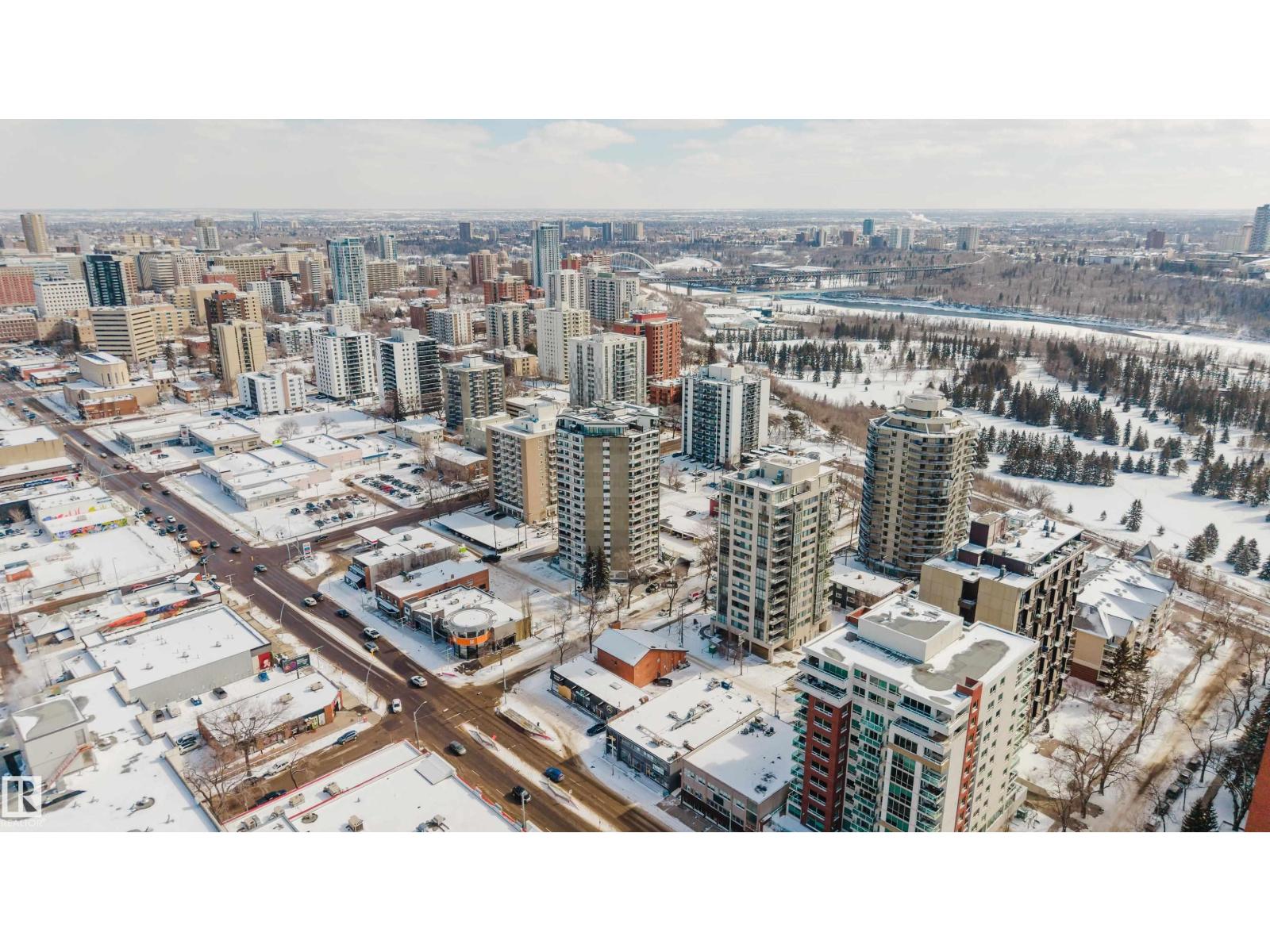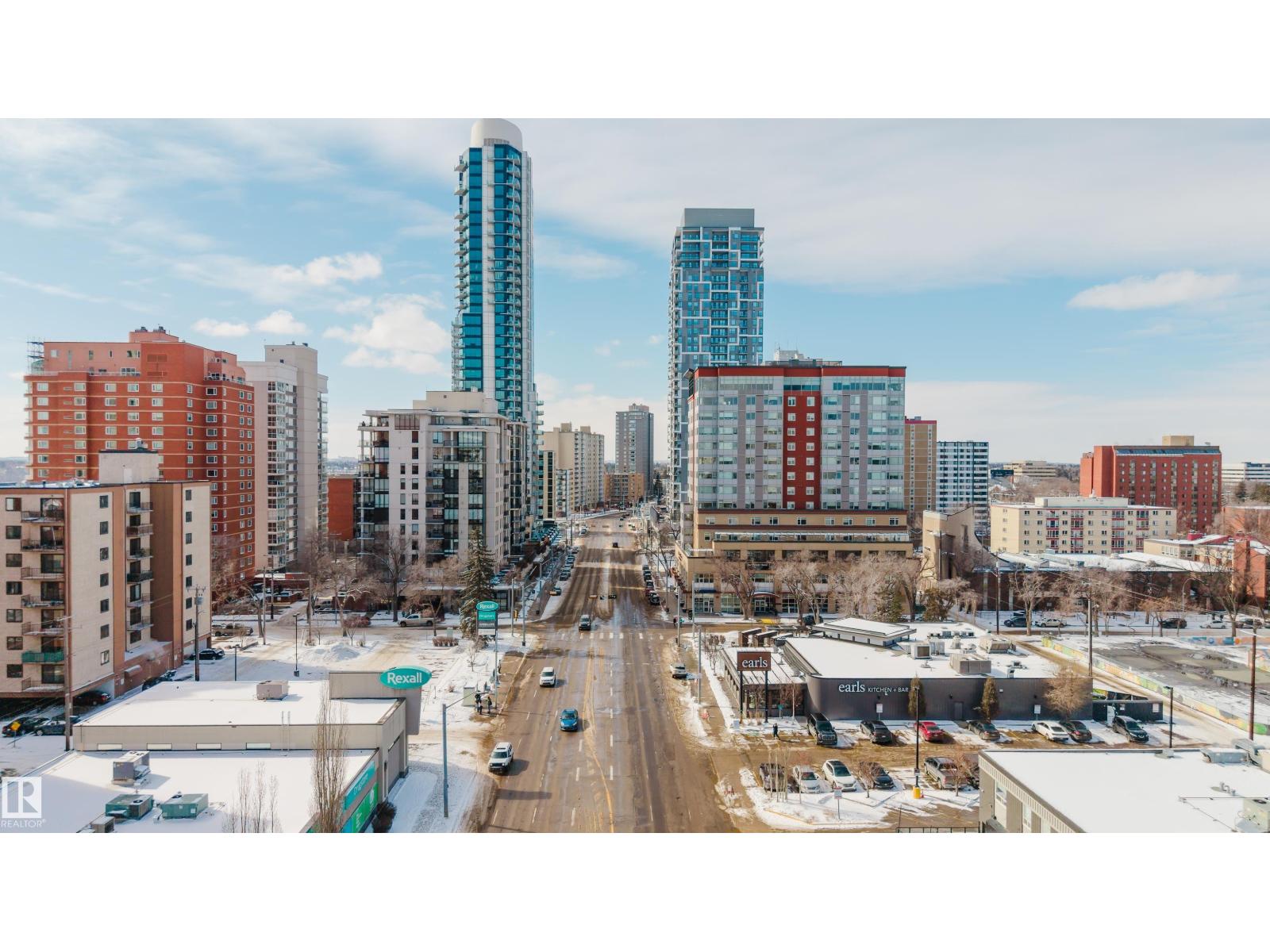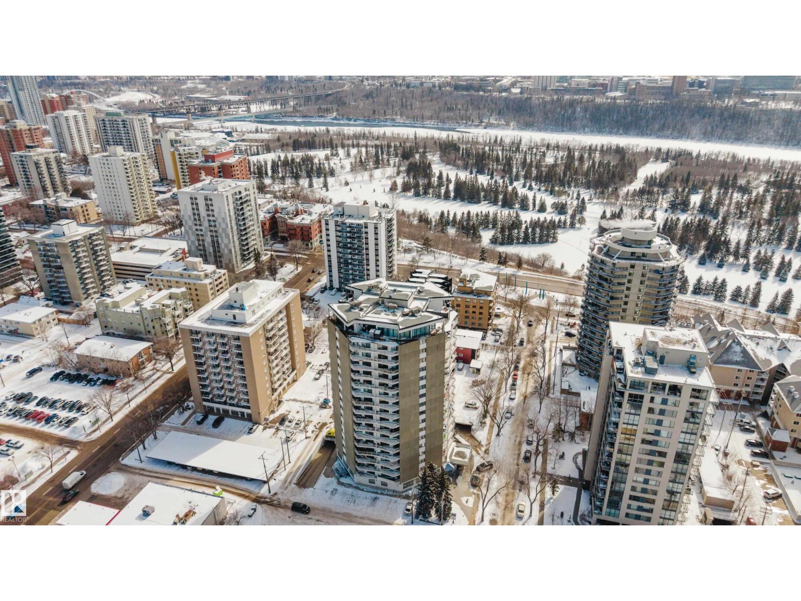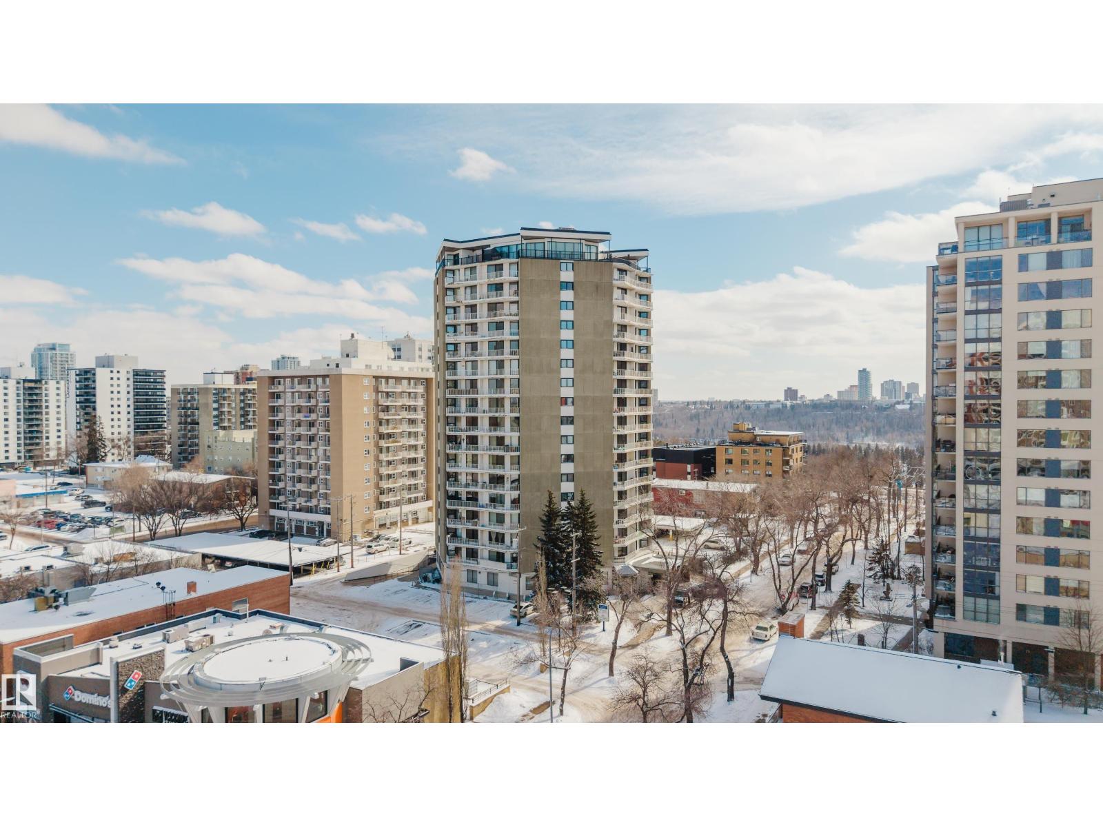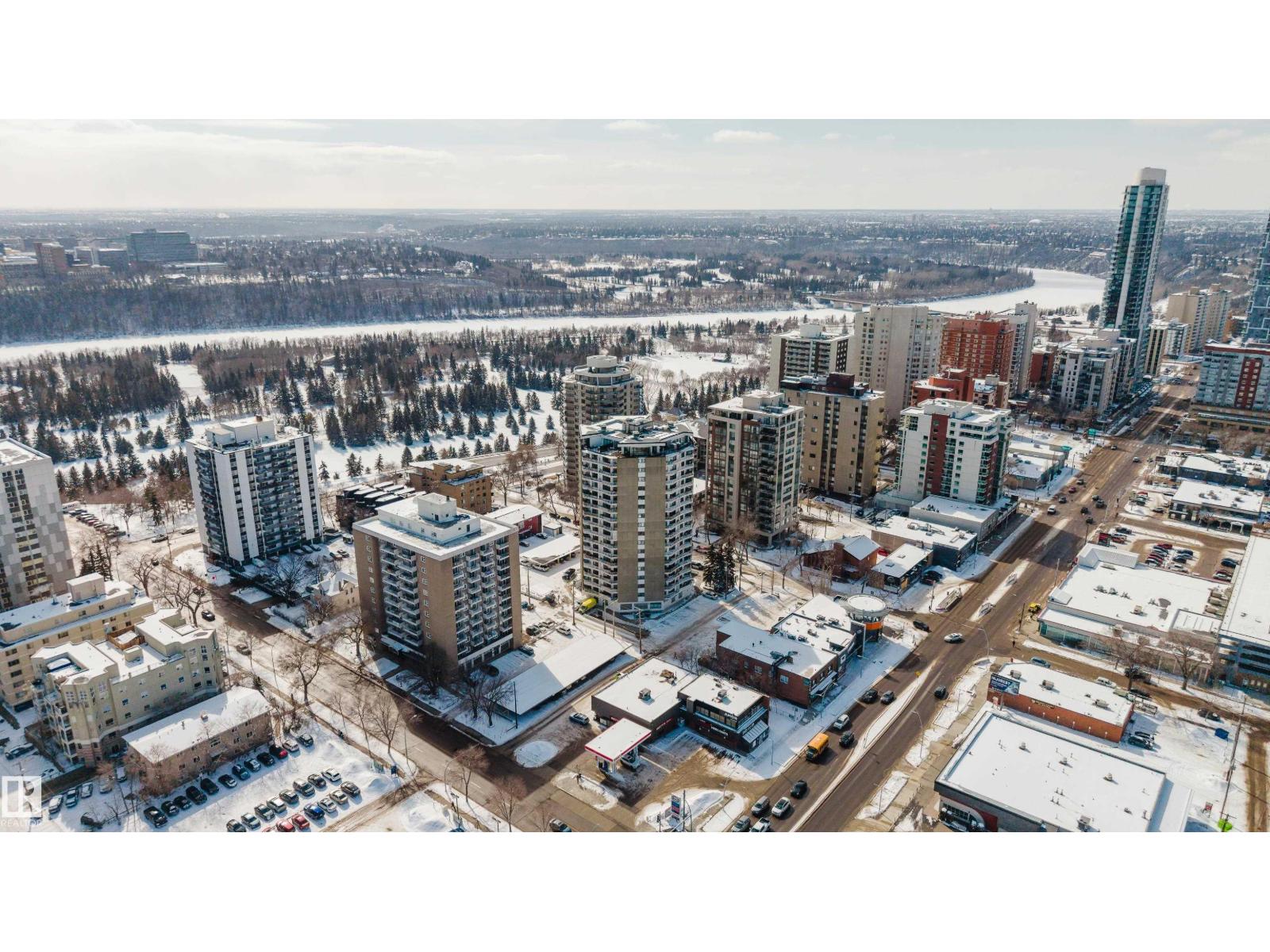 Turnkey 1,013 sq.ft. 2 bedroom, 2 bathroom condo with titled underground parking in a solid concrete high rise just steps from the river valley and Jasper Avenue. The layout offers well-separated bedrooms, ideal for shared living, guests, or a home office, along with a spacious primary suite and flexible second bedroom. Bright south-facing exposure fills the large living and defined dining areas, creating a comfortable space for everyday living and entertaining. The efficient kitchen supports low-maintenance urban living. Enjoy a full amenity building with pool, gym, sauna, library, visitor parking, same-floor laundry, and garbage chute access. Condo fees include all utilities, offering simple, predictable ownership in one of Edmonton’s most walkable central locations. (id:51989)