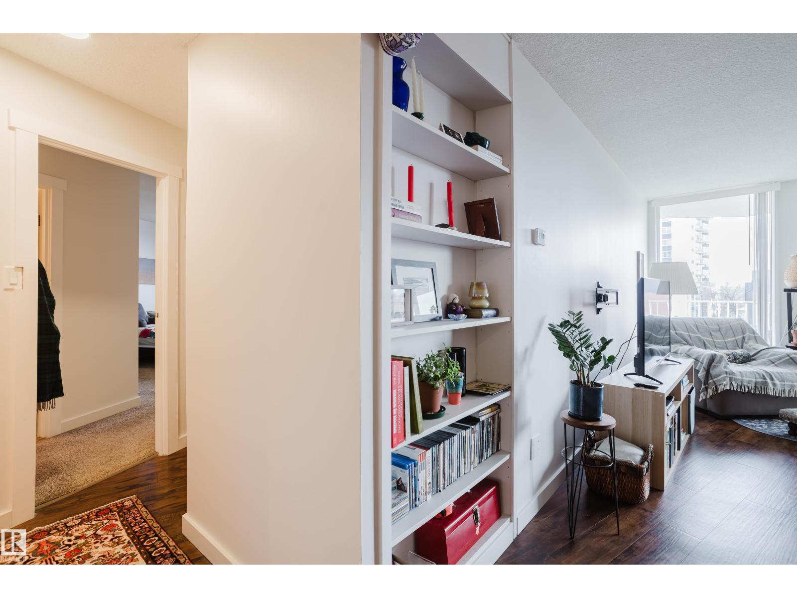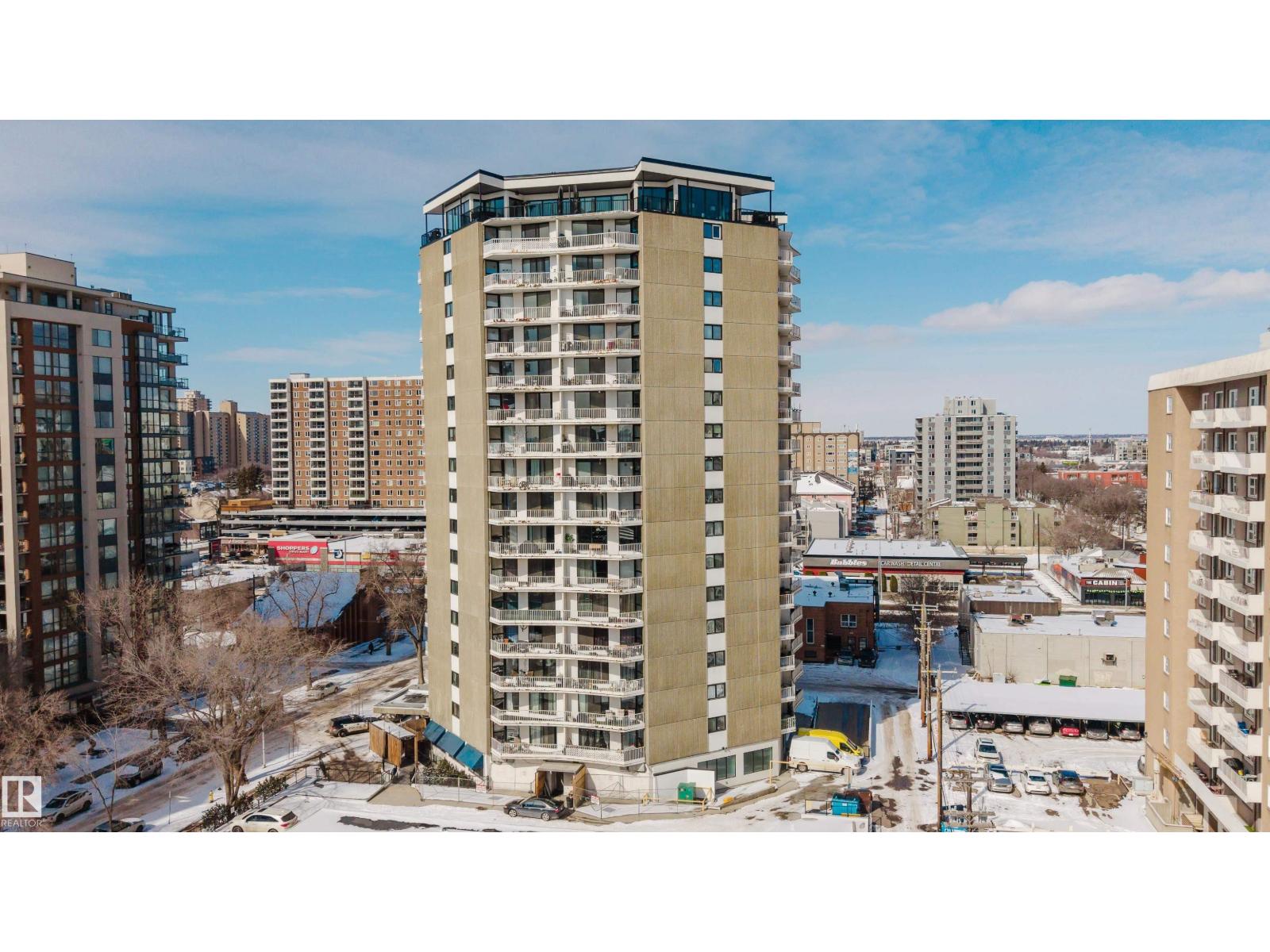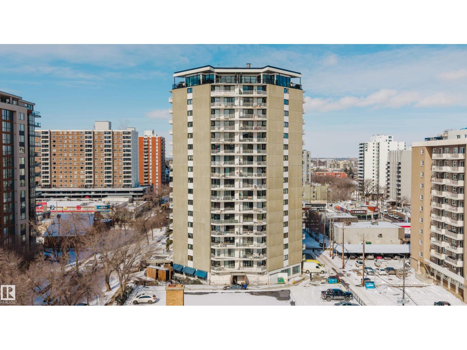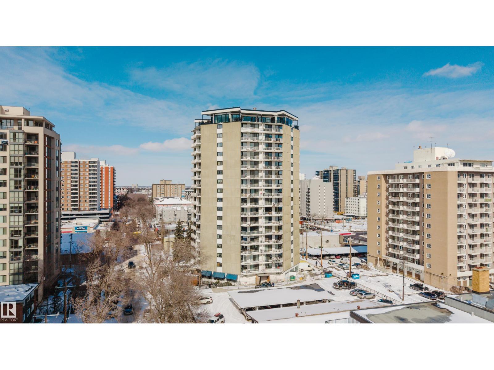 Turnkey 1,013 sq.ft. 2 bedroom, 2 bathroom condo with titled underground parking in a solid concrete high rise just steps from the river valley and Jasper Avenue. The layout offers well-separated bedrooms, ideal for shared living, guests, or a home office, along with a spacious primary suite and flexible second bedroom. Bright south-facing exposure fills the large living and defined dining areas, creating a comfortable space for everyday living and entertaining. The efficient kitchen supports low-maintenance urban living. Enjoy a full amenity building with pool, gym, sauna, library, visitor parking, same-floor laundry, and garbage chute access. Condo fees include all utilities, offering simple, predictable ownership in one of Edmonton’s most walkable central locations. (id:51989)