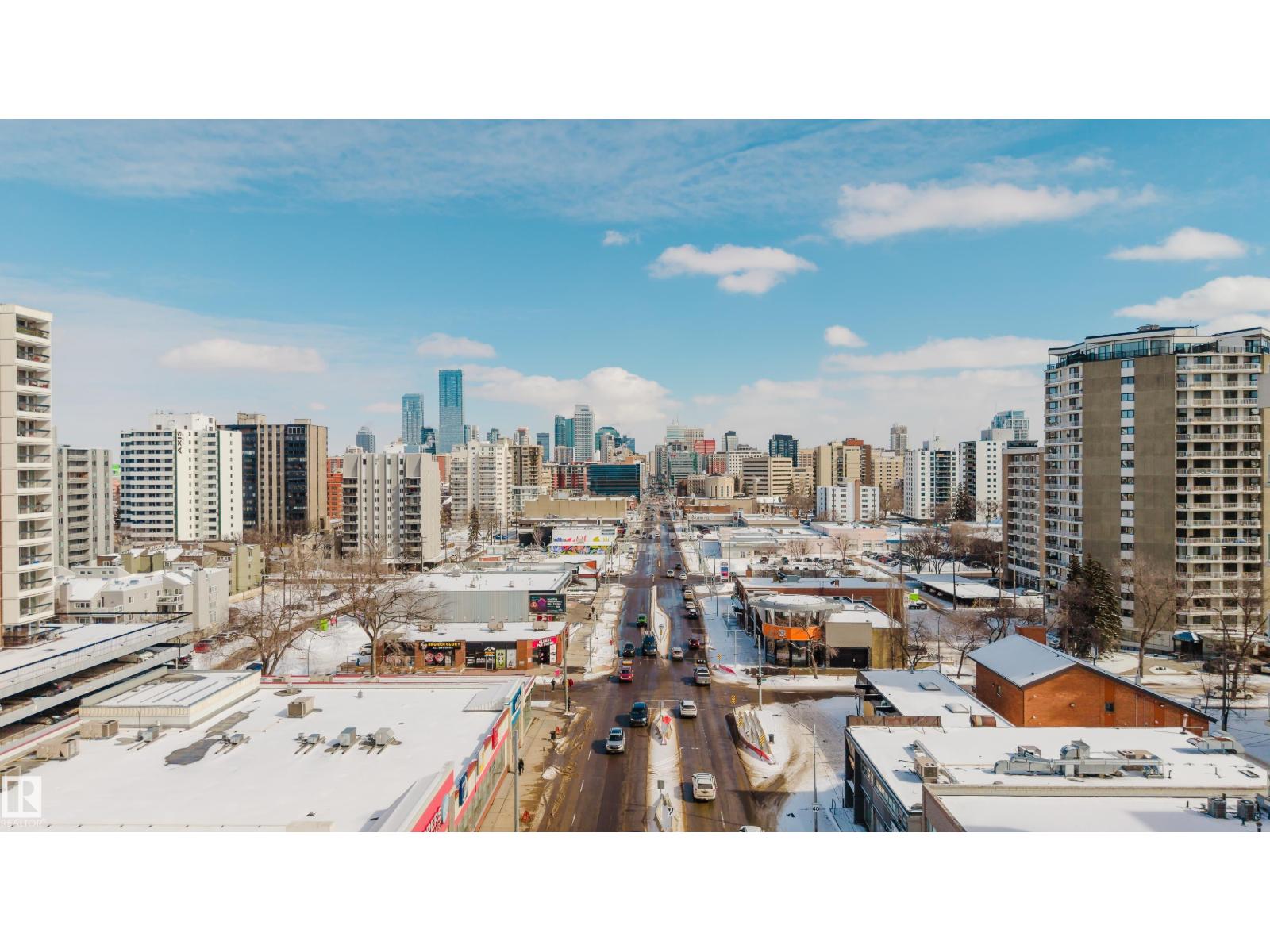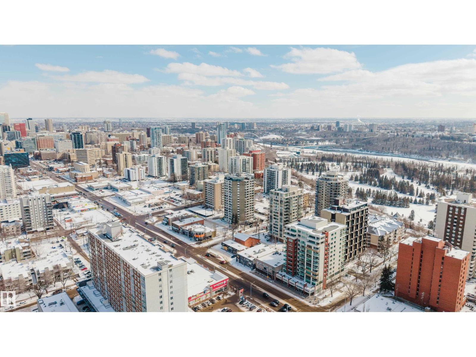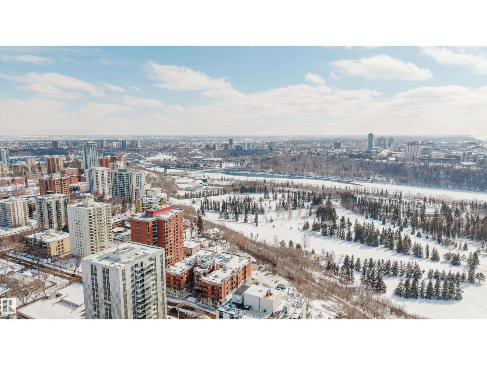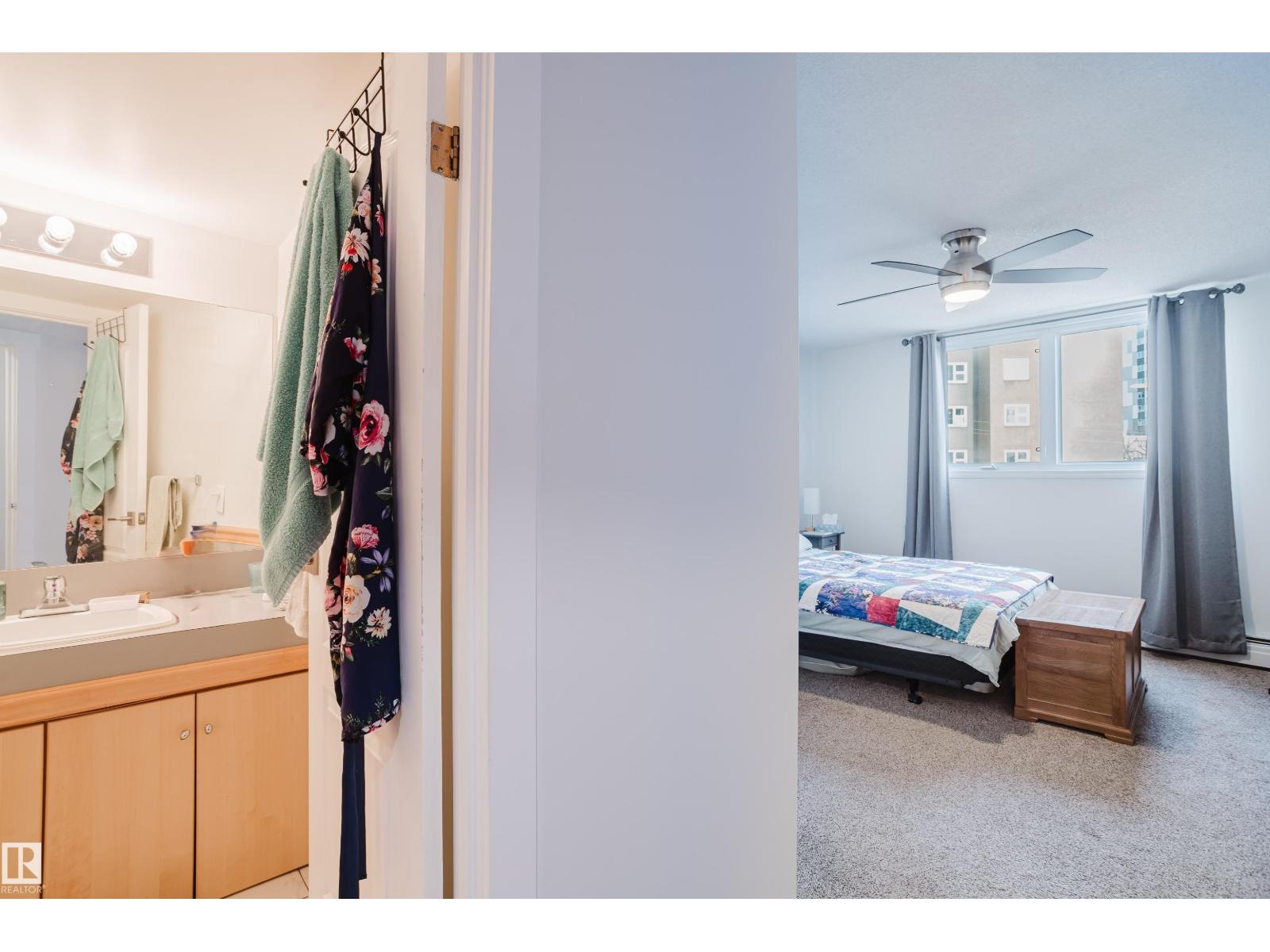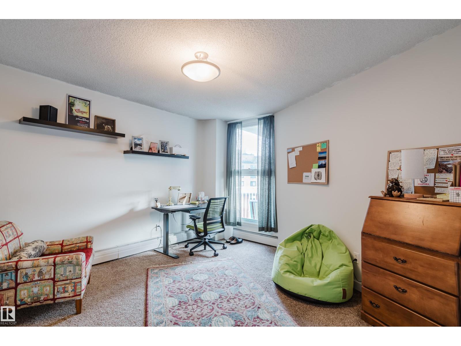 Turnkey 1,013 sq.ft. 2 bedroom, 2 bathroom condo with titled underground parking in a solid concrete high rise just steps from the river valley and Jasper Avenue. The layout offers well-separated bedrooms, ideal for shared living, guests, or a home office, along with a spacious primary suite and flexible second bedroom. Bright south-facing exposure fills the large living and defined dining areas, creating a comfortable space for everyday living and entertaining. The efficient kitchen supports low-maintenance urban living. Enjoy a full amenity building with pool, gym, sauna, library, visitor parking, same-floor laundry, and garbage chute access. Condo fees include all utilities, offering simple, predictable ownership in one of Edmonton’s most walkable central locations. (id:51989)