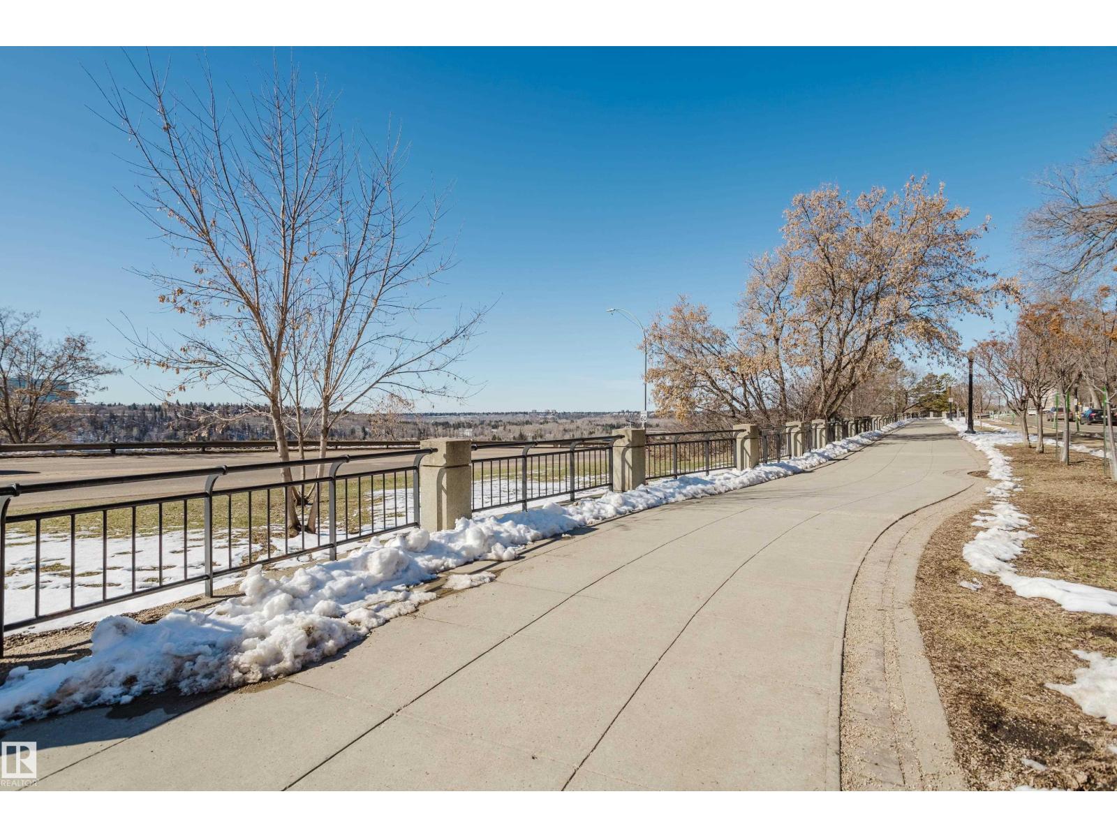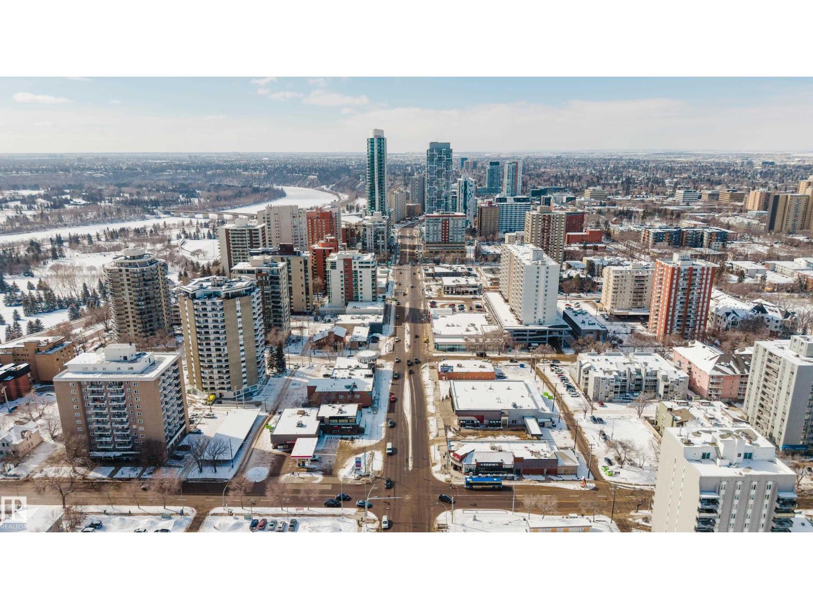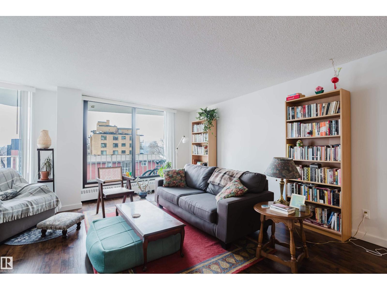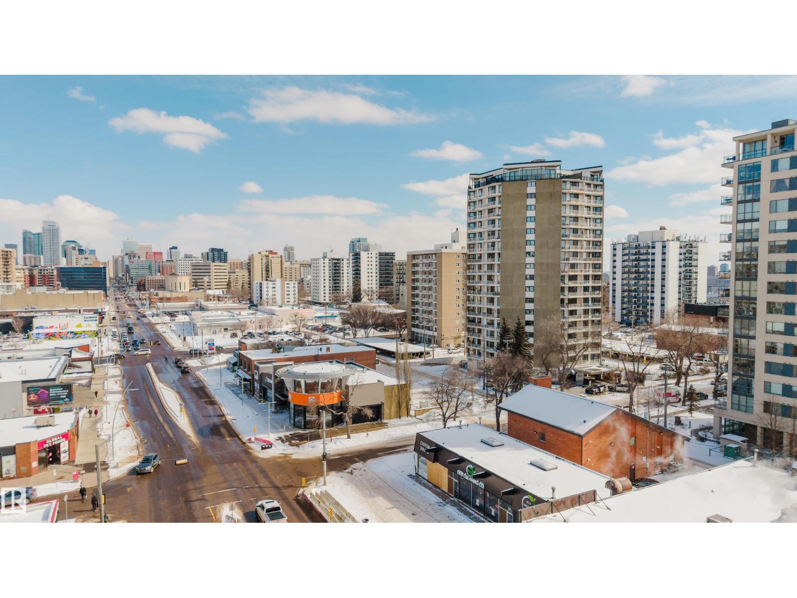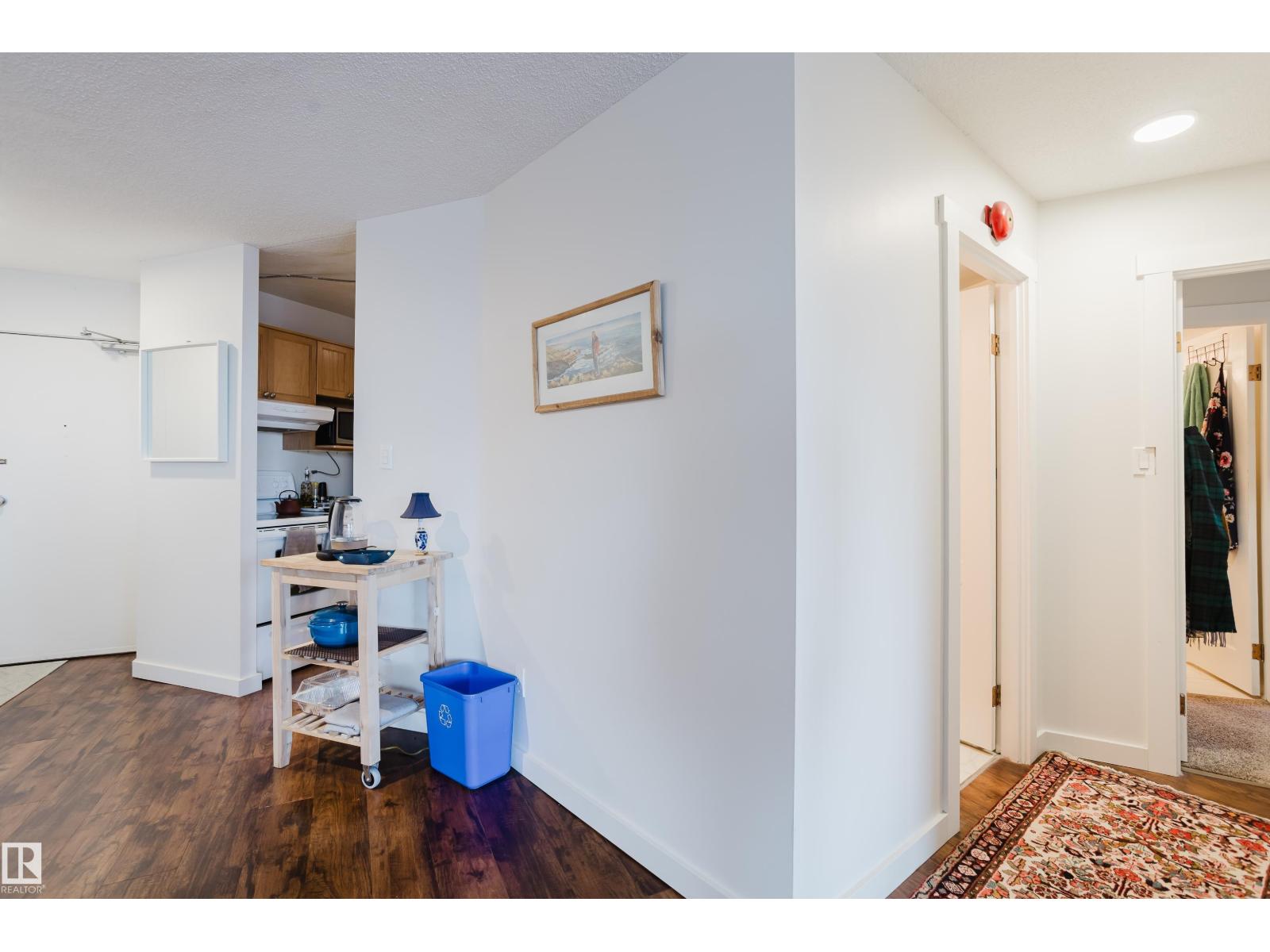 Turnkey 1,013 sq.ft. 2 bedroom, 2 bathroom condo with titled underground parking in a solid concrete high rise just steps from the river valley and Jasper Avenue. The layout offers well-separated bedrooms, ideal for shared living, guests, or a home office, along with a spacious primary suite and flexible second bedroom. Bright south-facing exposure fills the large living and defined dining areas, creating a comfortable space for everyday living and entertaining. The efficient kitchen supports low-maintenance urban living. Enjoy a full amenity building with pool, gym, sauna, library, visitor parking, same-floor laundry, and garbage chute access. Condo fees include all utilities, offering simple, predictable ownership in one of Edmonton’s most walkable central locations. (id:51989)