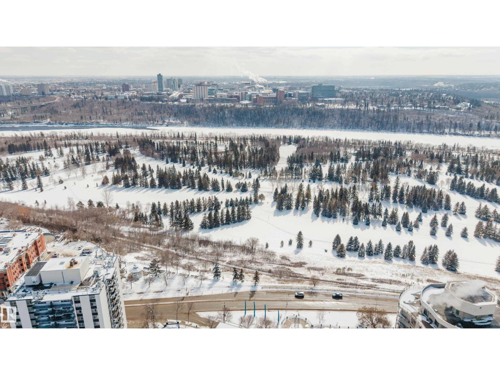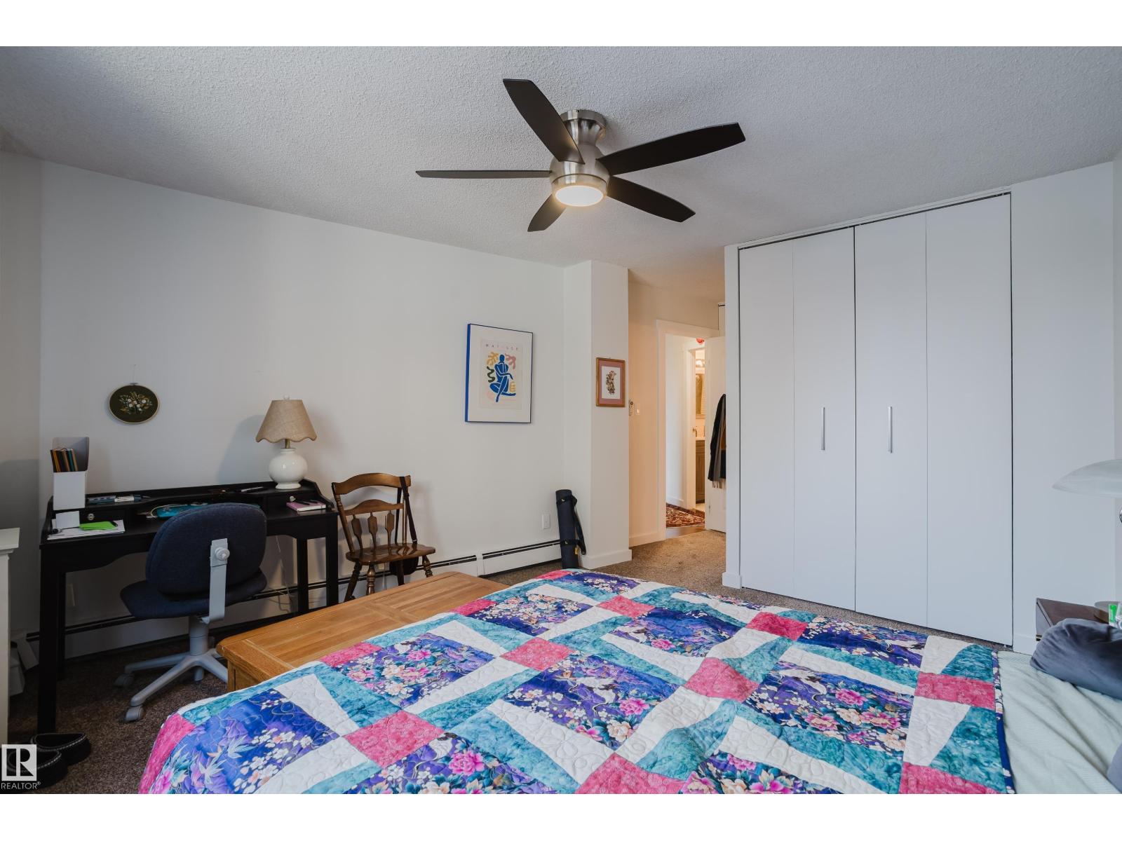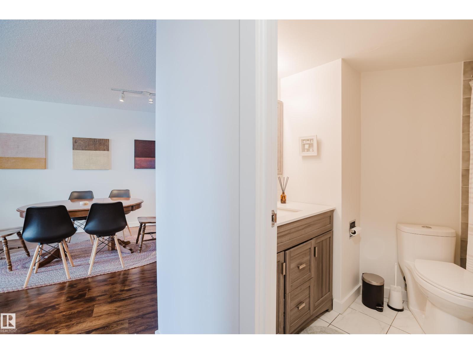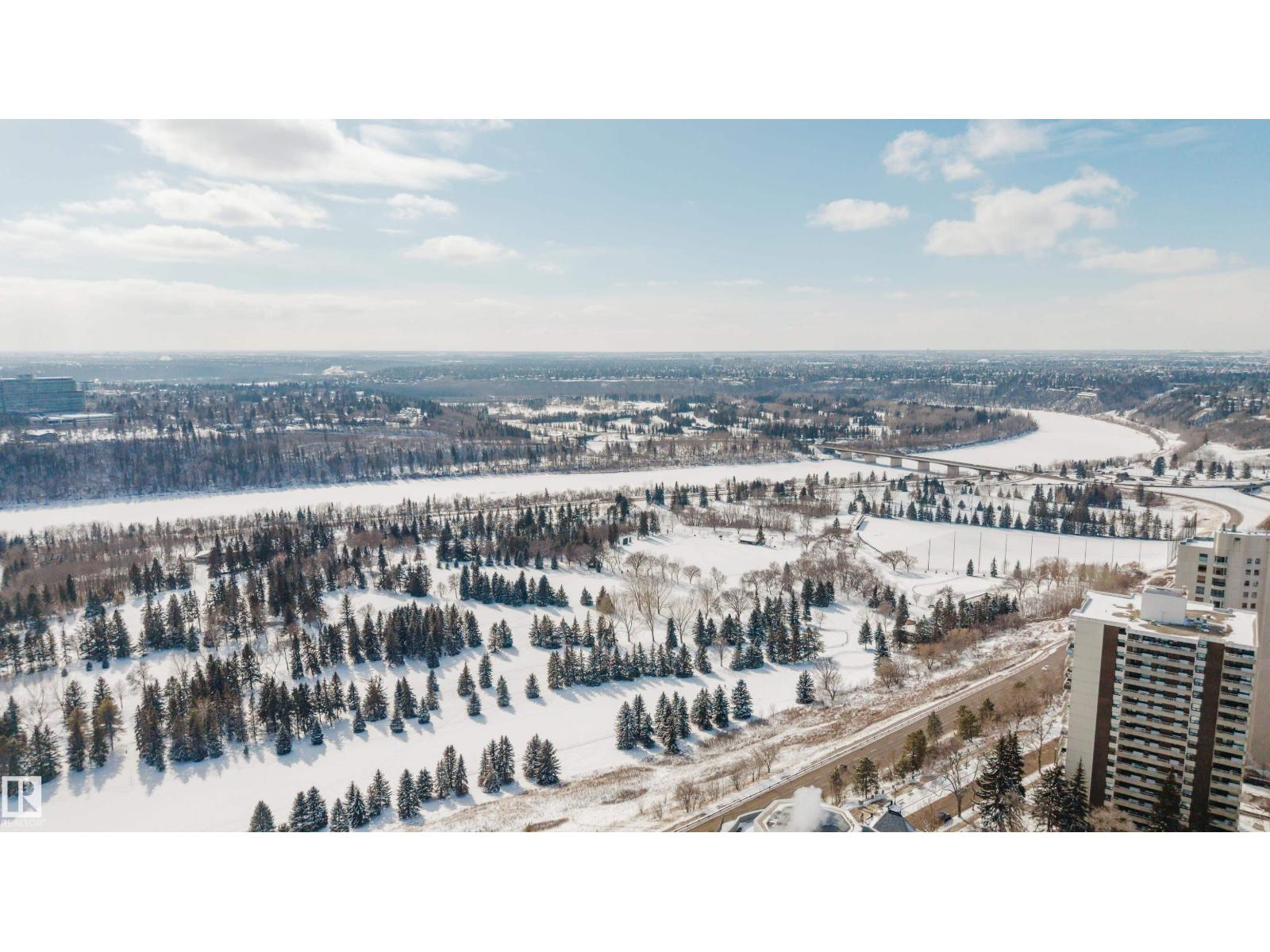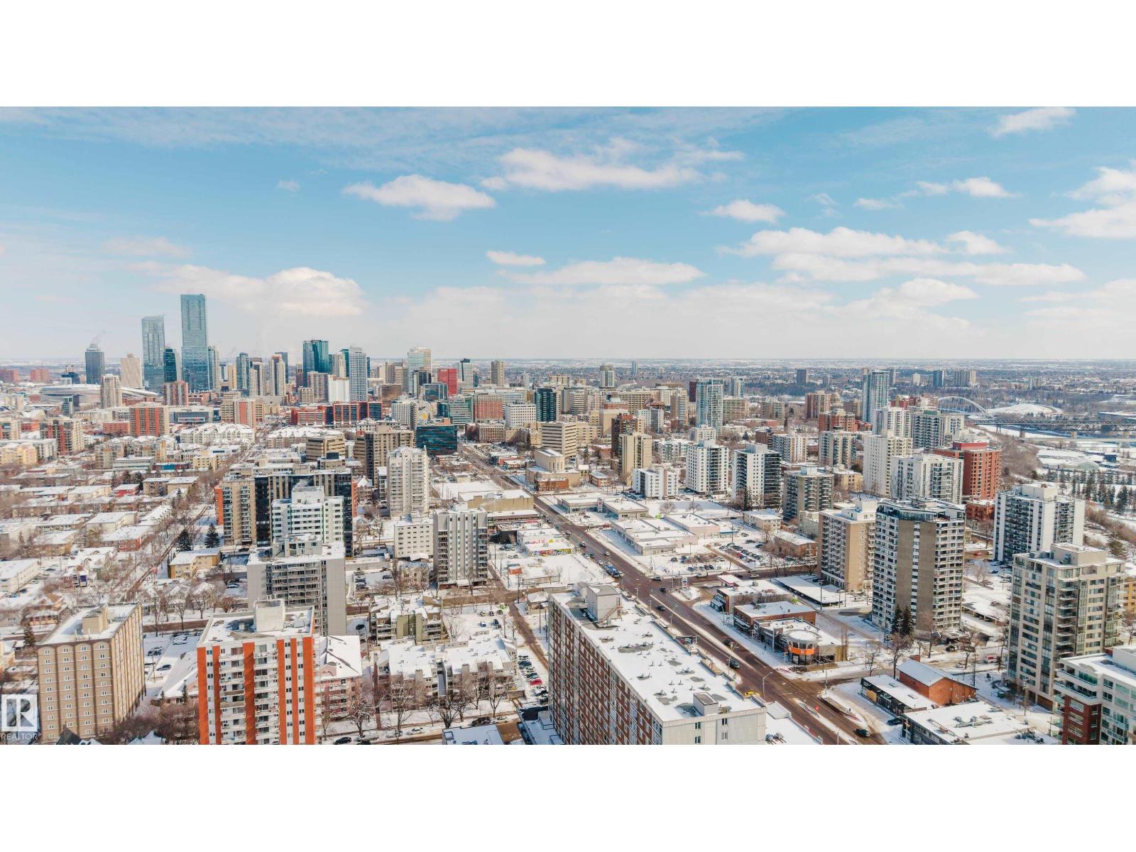 Turnkey 1,013 sq.ft. 2 bedroom, 2 bathroom condo with titled underground parking in a solid concrete high rise just steps from the river valley and Jasper Avenue. The layout offers well-separated bedrooms, ideal for shared living, guests, or a home office, along with a spacious primary suite and flexible second bedroom. Bright south-facing exposure fills the large living and defined dining areas, creating a comfortable space for everyday living and entertaining. The efficient kitchen supports low-maintenance urban living. Enjoy a full amenity building with pool, gym, sauna, library, visitor parking, same-floor laundry, and garbage chute access. Condo fees include all utilities, offering simple, predictable ownership in one of Edmonton’s most walkable central locations. (id:51989)
