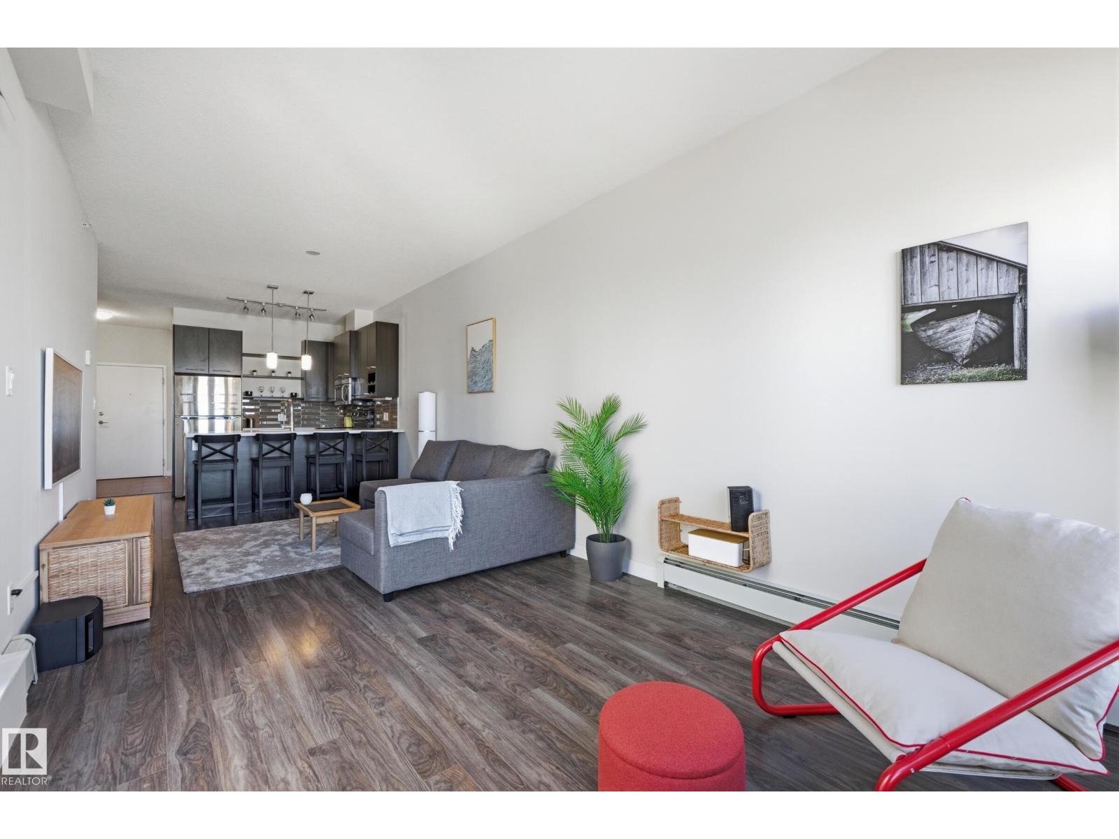 Located just a stone's throw from WHYTE AVE, UNIVERSITY OF ALBERTA, and numerous other amenities, this charming TOP-FLOOR 1-bedroom/1-den home is ideal for those looking to be situated in the heart of the city! This delightful home offers 694 sqft of comfortable living space and features in-suite laundry and a titled/secured/heated parking stall. The kitchen features quartz countertops, stainless-steel appliances, and a breakfast bar. The open floor plan leads to a bright living room with access to a spacious balcony. The den is perfect for a home office, library, or a hobby/game studio. Newer carpet throughout. Come see the home in person and prepare to be impressed! (id:51989)