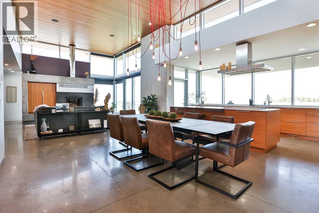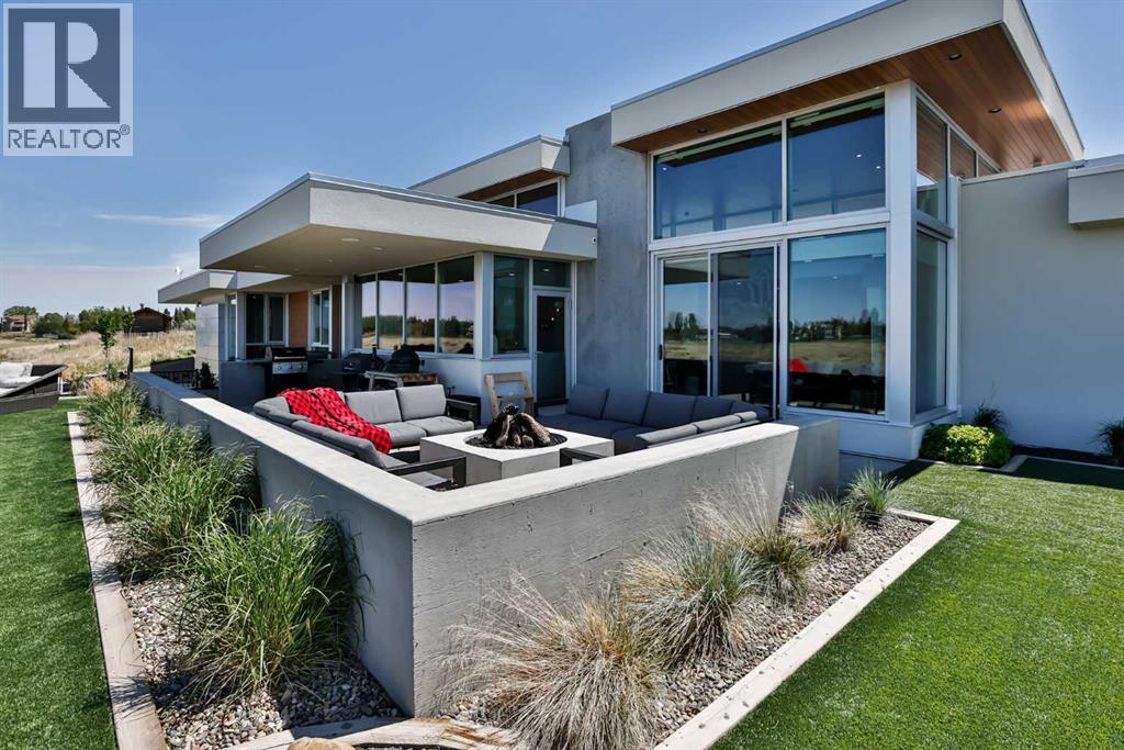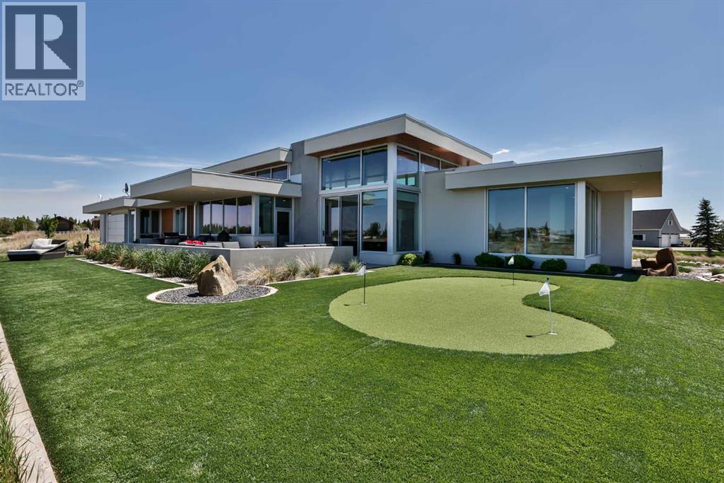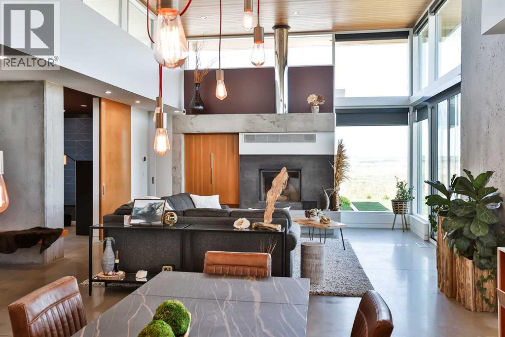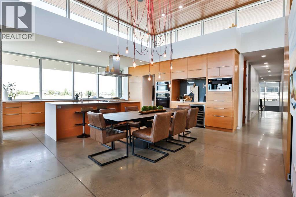 This property is as close to *Selling Sunset* as you'll find in Southern Alberta! This sprawling modern bungalow will capture your attention with the breathtaking view of the coulee in the distance. Stepping through the impressive wood pivot door, you know you're in for a treat. The main floor features 14-foot ceilings, complemented by floor-to-ceiling triple-pane commercial glass windows that will leave you speechless! The open-concept layout seamlessly combines the dining, living, and kitchen areas, with polished concrete floors being warmed by light wood cabinetry. The sleek white, quartz countertops, showcase your kitchen and island area, with windows that create a delightful connection between your indoor and outdoor spaces. The impressive appliance package, featuring a gas cooktop, a cabinet-paneled oversized fridge, a built-in microwave and oven, and a wine fridge. A coffee lover's dream, a built-in Miele espresso machine rivals even the best cafés. A cleverly hidden pantry door adds an extra touch of seamlessness! The living room is anchored by an oversized wood-burning fireplace, transom windows fill the space with natural light. There is an office with stylish floating shelves sits off of the Living room. The primary suite, features floor-to-ceiling windows that wrap the corner, providing spectacular morning & sunset views right from your bed. The walk-around closet is a shopper's dream, while the bright and airy ensuite features double vanities and a luxurious steam shower. Off the kitchen lies a spacious laundry/all-purpose room perfect for sewing or supervising homework while you prepare dinner. In the east wing, you’ll find three spare bedrooms. One has its own ensuite bathroom, while the other two share a Jack and Jill bathroom with a beautifully tiled shower, double vanities, and a skylight that invites natural light. Continuing down the hallway, another floor-to-ceiling glass panel reveals your very own gymnasium, measuring an impressive 32 x 40 fee t with 20-foot ceilings, complete with built-in basketball hoops, pickleball court & 3 wide closet for organizing all your sports gear. Floating wood stairs with striking black railings lead you to the basement living room, perfect for movie nights, and entertaining with your side bar. With large windows typical of a walkout basement, this space feels open and bright, completed by a half bath. Outside the gym exit, is a newly installed large sunken patio that blends with the home’s aesthetic. Complete with double gas fireplaces, a pergola, and oversized hot tub. The main patio off the kitchen features a covered deck, built-in speakers, a gas fire pit, and views that are unmatched in all of Southern Alberta. Equipped with cutting-edge technology, most lights, blinds, heating, cooling, and music can be controlled via a control panel or your phone—an upgrade valued at $100,000! The home also offers both forced air and indulgent in-floor heating. Call your REALTOR® for a private viewing today! (id:51989)
