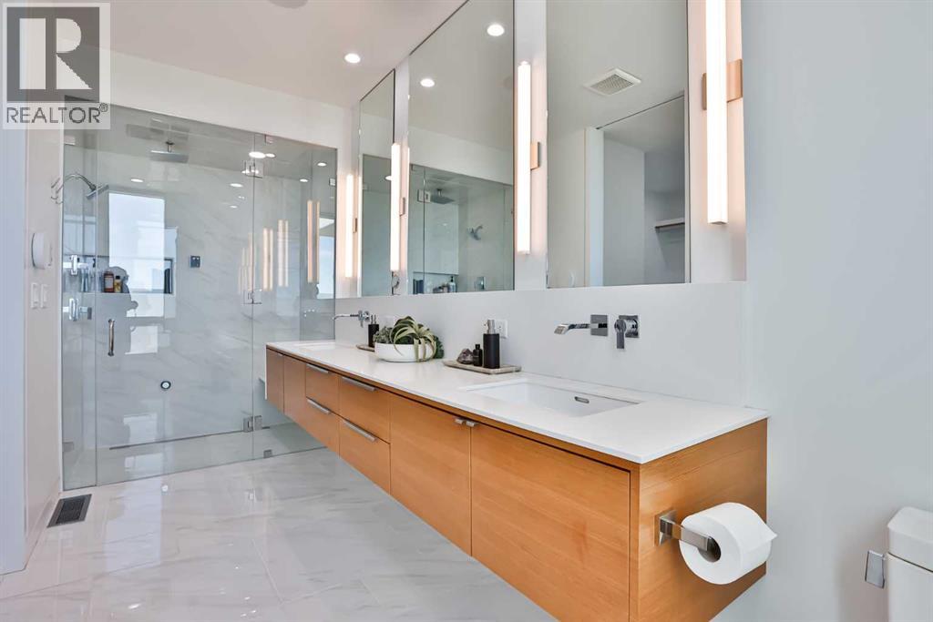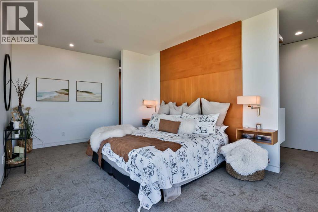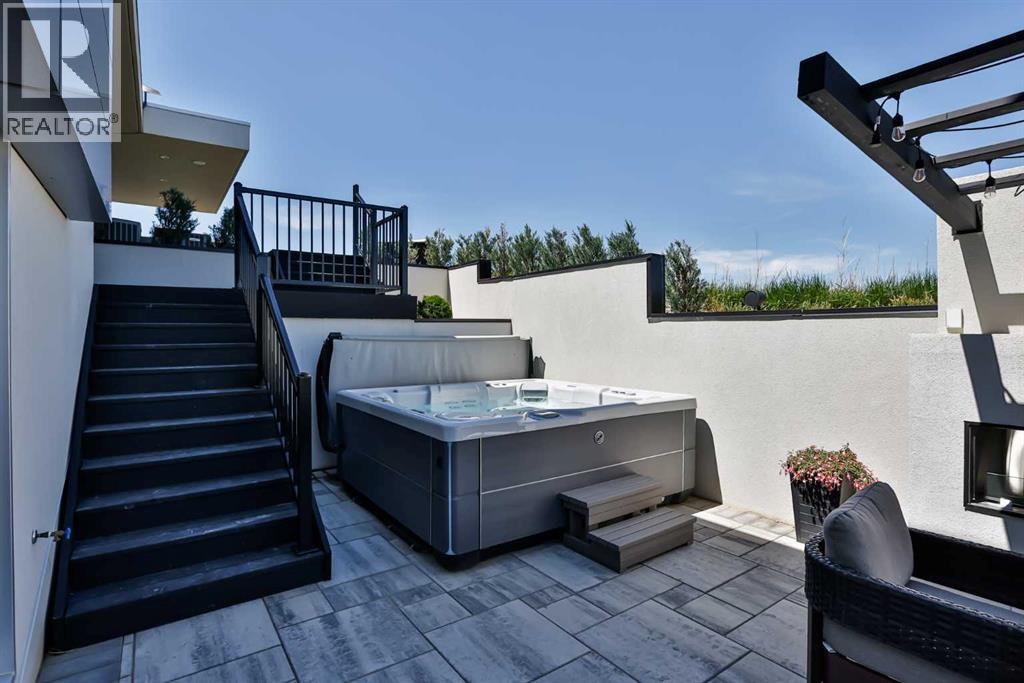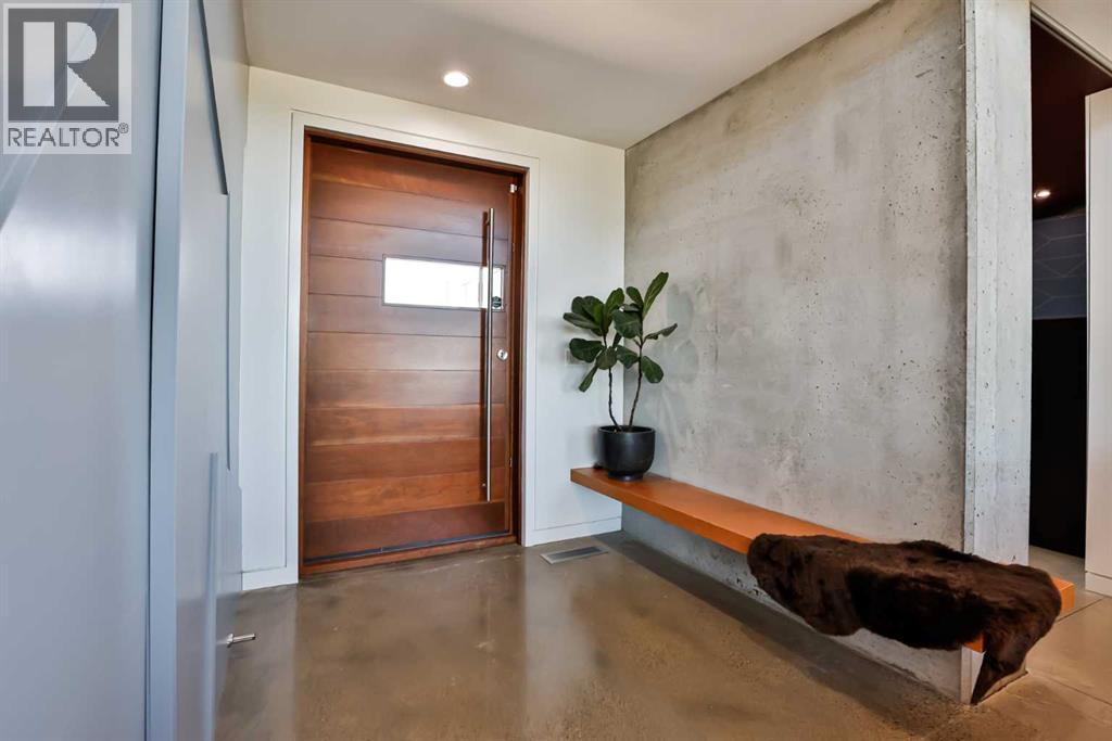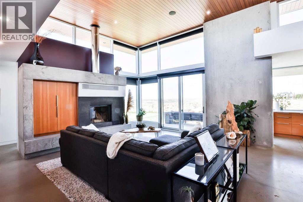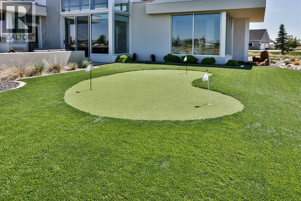 This property is as close to *Selling Sunset* as you'll find in Southern Alberta! This sprawling modern bungalow will capture your attention with the breathtaking view of the coulee in the distance. Stepping through the impressive wood pivot door, you know you're in for a treat. The main floor features 14-foot ceilings, complemented by floor-to-ceiling triple-pane commercial glass windows that will leave you speechless! The open-concept layout seamlessly combines the dining, living, and kitchen areas, with polished concrete floors being warmed by light wood cabinetry. The sleek white, quartz countertops, showcase your kitchen and island area, with windows that create a delightful connection between your indoor and outdoor spaces. The impressive appliance package, featuring a gas cooktop, a cabinet-paneled oversized fridge, a built-in microwave and oven, and a wine fridge. A coffee lover's dream, a built-in Miele espresso machine rivals even the best cafés. A cleverly hidden pantry door adds an extra touch of seamlessness! The living room is anchored by an oversized wood-burning fireplace, transom windows fill the space with natural light. There is an office with stylish floating shelves sits off of the Living room. The primary suite, features floor-to-ceiling windows that wrap the corner, providing spectacular morning & sunset views right from your bed. The walk-around closet is a shopper's dream, while the bright and airy ensuite features double vanities and a luxurious steam shower. Off the kitchen lies a spacious laundry/all-purpose room perfect for sewing or supervising homework while you prepare dinner. In the east wing, you’ll find three spare bedrooms. One has its own ensuite bathroom, while the other two share a Jack and Jill bathroom with a beautifully tiled shower, double vanities, and a skylight that invites natural light. Continuing down the hallway, another floor-to-ceiling glass panel reveals your very own gymnasium, measuring an impressive 32 x 40 fee t with 20-foot ceilings, complete with built-in basketball hoops, pickleball court & 3 wide closet for organizing all your sports gear. Floating wood stairs with striking black railings lead you to the basement living room, perfect for movie nights, and entertaining with your side bar. With large windows typical of a walkout basement, this space feels open and bright, completed by a half bath. Outside the gym exit, is a newly installed large sunken patio that blends with the home’s aesthetic. Complete with double gas fireplaces, a pergola, and oversized hot tub. The main patio off the kitchen features a covered deck, built-in speakers, a gas fire pit, and views that are unmatched in all of Southern Alberta. Equipped with cutting-edge technology, most lights, blinds, heating, cooling, and music can be controlled via a control panel or your phone—an upgrade valued at $100,000! The home also offers both forced air and indulgent in-floor heating. Call your REALTOR® for a private viewing today! (id:51989)