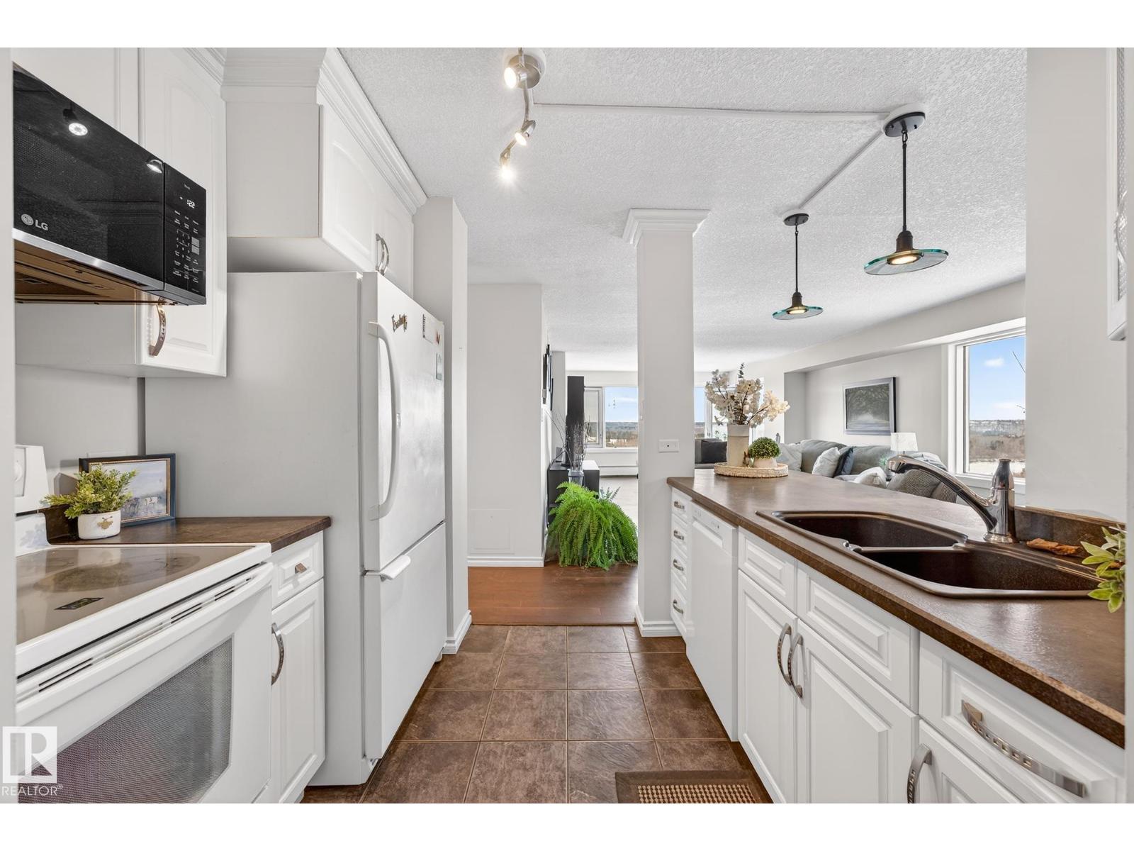 Some condos have a view. This one has a RIVER VALLEY PANORAMA that wraps around you on 3 sides - the backdrop for every morning coffee, every evening wind down, and every quiet moment in between. Welcome to The Gainsborough on Jasper Ave: a thoughtfully updated 1 bed / 1 bath residence inside one of downtown Edmonton's most elegantly re-imagined buildings with MILLION DOLLAR VIEWS. The kitchen delivers with OPEN CONCEPT, NEW MICROWAVE, NEW DISHWASHER, and thoughtful pantry storage. FREE laundry on the same floor, only shared with 3 other units! Experience a sense of occasion every time you walk through the lobby – intricate detail, elegant finishes, and a social room & fitness centre that feel more boutique hotel than condo building. The BBQ area and grassy knoll perch above the river valley for a 2nd sunset view. UNDERGROUND PARKING. Grocery & transit steps away. The view brings you here. But the building? It makes you want to stay. (id:51989)