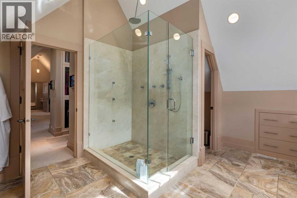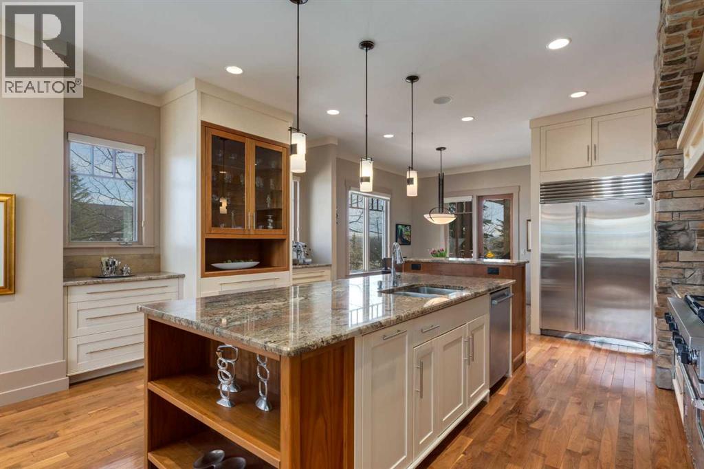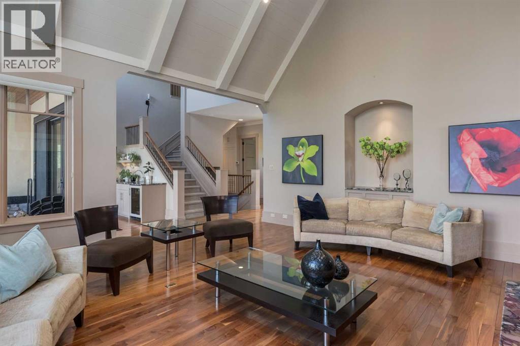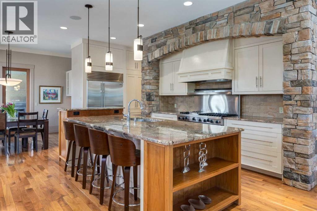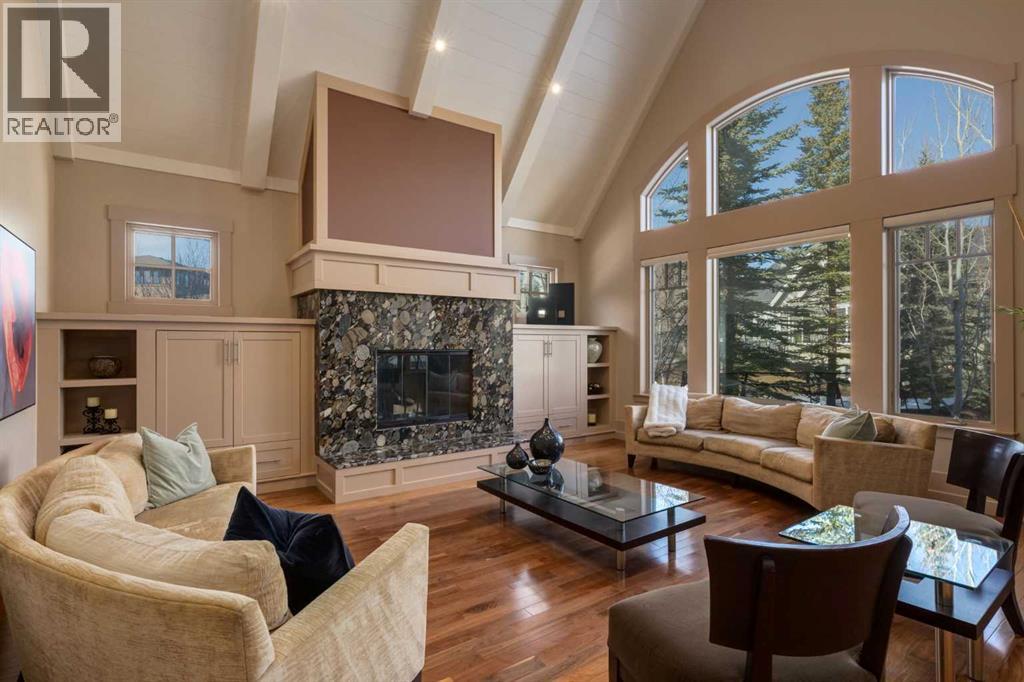 Welcome to luxury living in the prestigious community of Elbow Valley—an award-winning neighborhood just minutes from the city. Surrounded by forests, rivers, and lakes, this custom-built two-story home offers an exceptional lifestyle with a rare four-car heated garage offering over 5690 square feet of living area. As you arrive, the sense of privacy and natural beauty immediately sets the tone. As you enter the home there is a spacious foyer with built-in cabinetry. Just off the entrance is a private powder room and an impressive living room featuring soaring 20-foot vaulted ceilings, abundant natural light, built-in cabinetry, and a cozy wood-burning fireplace. The main floor also showcases an elegant formal dining room with vaulted ceilings highlighted by a two-way fireplace that connects seamlessly to the Italian-inspired chef’s kitchen, complete with high-end appliances, a large island, and stunning marble countertops. Adjacent to the kitchen is a bright breakfast nook with access to a barbecue patio and a secondary entrance to the home. The large mudroom has a second half bathroom leading to the garage which features storage cabinet, built in bike racks, and a dog washing station. Step outside to enjoy the beautifully treed and private backyard featuring a covered deck, fire pit area, and space for a trampoline—perfect for family gatherings and outdoor relaxation.Upstairs, you’ll find two generously sized bedrooms, each with its own ensuite bathroom and walk in closets. The dream-worthy primary retreat spans over 935 sq. ft., offering a sitting area, spacious walk-in closet, and a luxurious five-piece ensuite. A bonus room overlooking the main floor adds additional living space and architectural charm. The fully developed basement is designed for entertainment and wellness, featuring a recreation room with a pool table, gathering space, and wet bar. The lower level also includes a fourth bedroom with walk in closet, a full bathroom with a steam room, and a d edicated gym—ideal for home workouts. Comfort is ensured year-round with in-floor heating in the basement and full air-conditioning throughout the home. Residents of Elbow Valley also enjoy access to the Elbow Valley Residents Club and hundreds of acres of preserved natural parkland offering unmatched recreation including hiking, biking, kayaking, swimming, fishing, skating, tennis, and beach activities. Commuting is effortless with quick access to Stoney Trail, placing downtown Calgary approximately 20 minutes away. Shopping is conveniently nearby at Westhills Towne Centre and Aspen Landing Shopping Centre. The area is served by excellent schools including Springbank Community Schools, and private schools Webber Academy, Rundle College, and Calgary French & International School. A rare opportunity to own an extraordinary home in one of the Calgary's most desirable communities—book your private showing today before it’s gone. (id:51989)