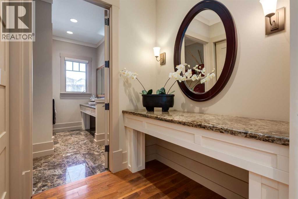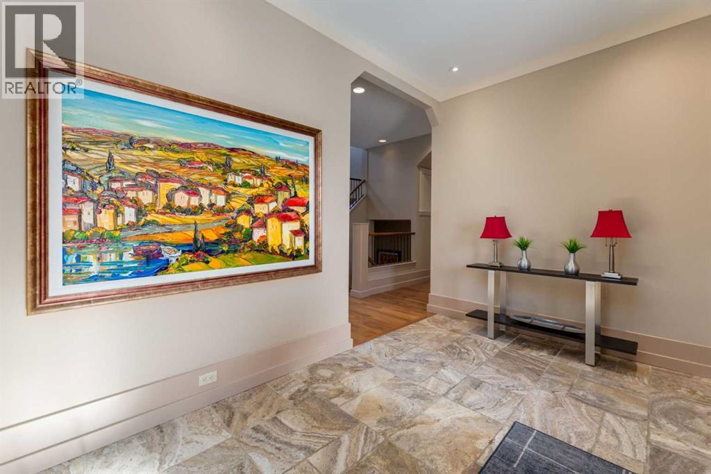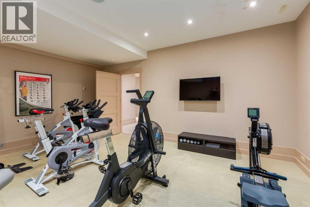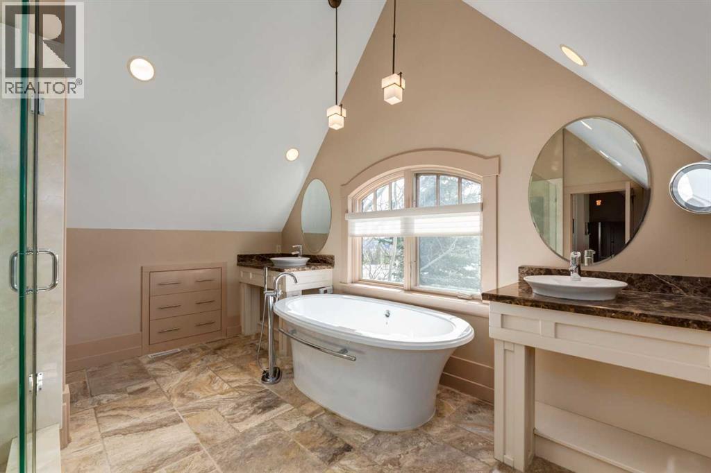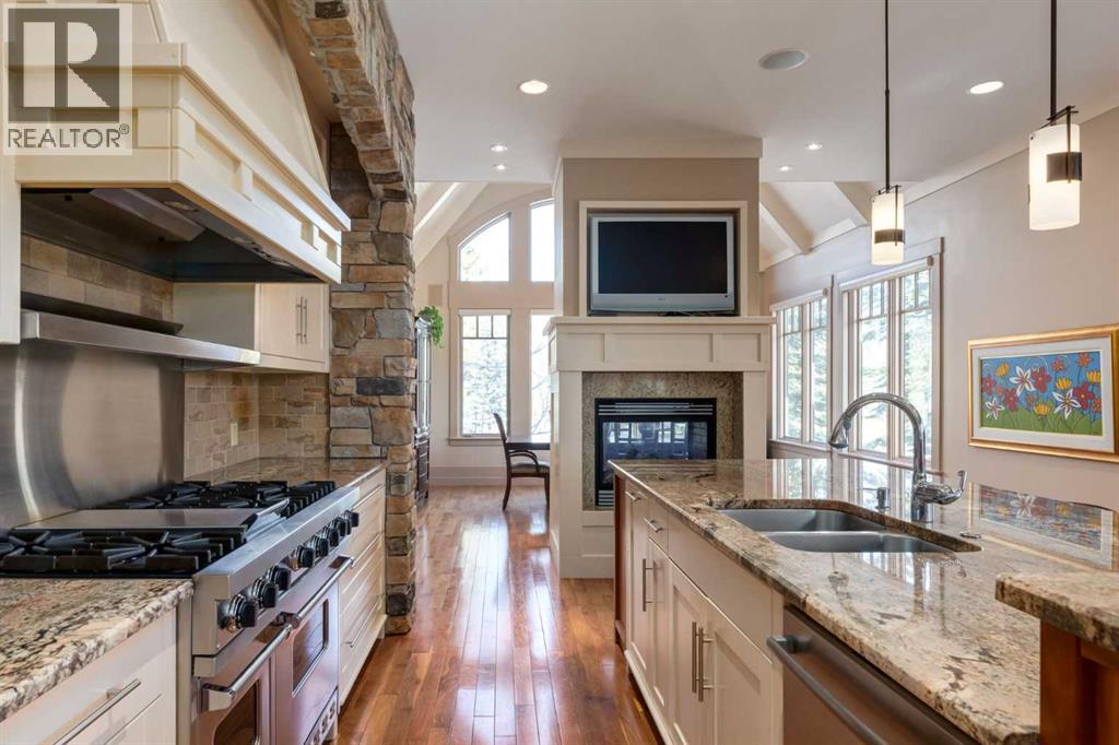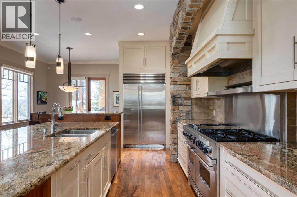 Welcome to luxury living in the prestigious community of Elbow Valley—an award-winning neighborhood just minutes from the city. Surrounded by forests, rivers, and lakes, this custom-built two-story home offers an exceptional lifestyle with a rare four-car heated garage offering over 5690 square feet of living area. As you arrive, the sense of privacy and natural beauty immediately sets the tone. As you enter the home there is a spacious foyer with built-in cabinetry. Just off the entrance is a private powder room and an impressive living room featuring soaring 20-foot vaulted ceilings, abundant natural light, built-in cabinetry, and a cozy wood-burning fireplace. The main floor also showcases an elegant formal dining room with vaulted ceilings highlighted by a two-way fireplace that connects seamlessly to the Italian-inspired chef’s kitchen, complete with high-end appliances, a large island, and stunning marble countertops. Adjacent to the kitchen is a bright breakfast nook with access to a barbecue patio and a secondary entrance to the home. The large mudroom has a second half bathroom leading to the garage which features storage cabinet, built in bike racks, and a dog washing station. Step outside to enjoy the beautifully treed and private backyard featuring a covered deck, fire pit area, and space for a trampoline—perfect for family gatherings and outdoor relaxation.Upstairs, you’ll find two generously sized bedrooms, each with its own ensuite bathroom and walk in closets. The dream-worthy primary retreat spans over 935 sq. ft., offering a sitting area, spacious walk-in closet, and a luxurious five-piece ensuite. A bonus room overlooking the main floor adds additional living space and architectural charm. The fully developed basement is designed for entertainment and wellness, featuring a recreation room with a pool table, gathering space, and wet bar. The lower level also includes a fourth bedroom with walk in closet, a full bathroom with a steam room, and a d edicated gym—ideal for home workouts. Comfort is ensured year-round with in-floor heating in the basement and full air-conditioning throughout the home. Residents of Elbow Valley also enjoy access to the Elbow Valley Residents Club and hundreds of acres of preserved natural parkland offering unmatched recreation including hiking, biking, kayaking, swimming, fishing, skating, tennis, and beach activities. Commuting is effortless with quick access to Stoney Trail, placing downtown Calgary approximately 20 minutes away. Shopping is conveniently nearby at Westhills Towne Centre and Aspen Landing Shopping Centre. The area is served by excellent schools including Springbank Community Schools, and private schools Webber Academy, Rundle College, and Calgary French & International School. A rare opportunity to own an extraordinary home in one of the Calgary's most desirable communities—book your private showing today before it’s gone. (id:51989)