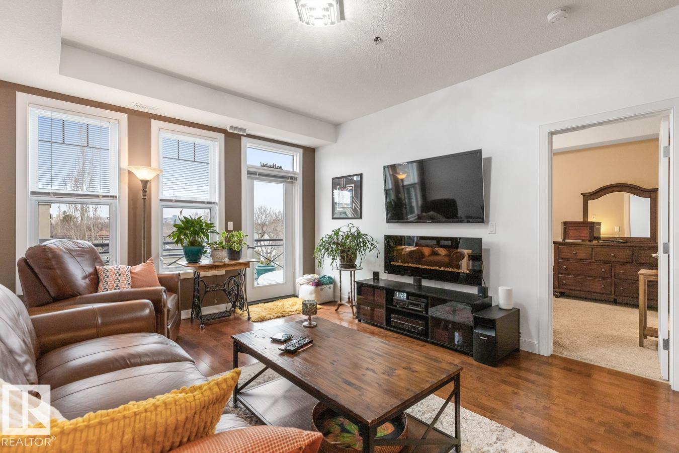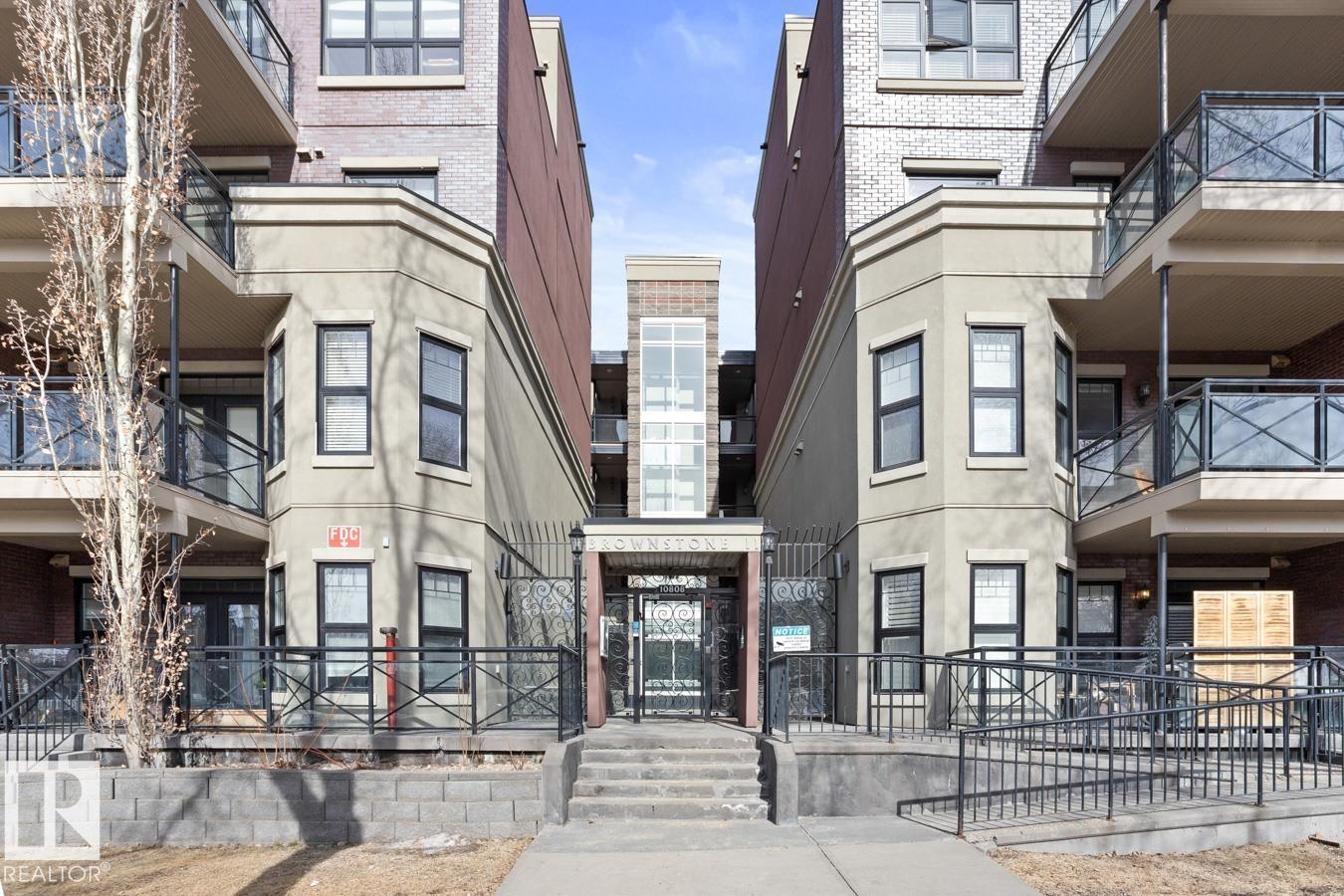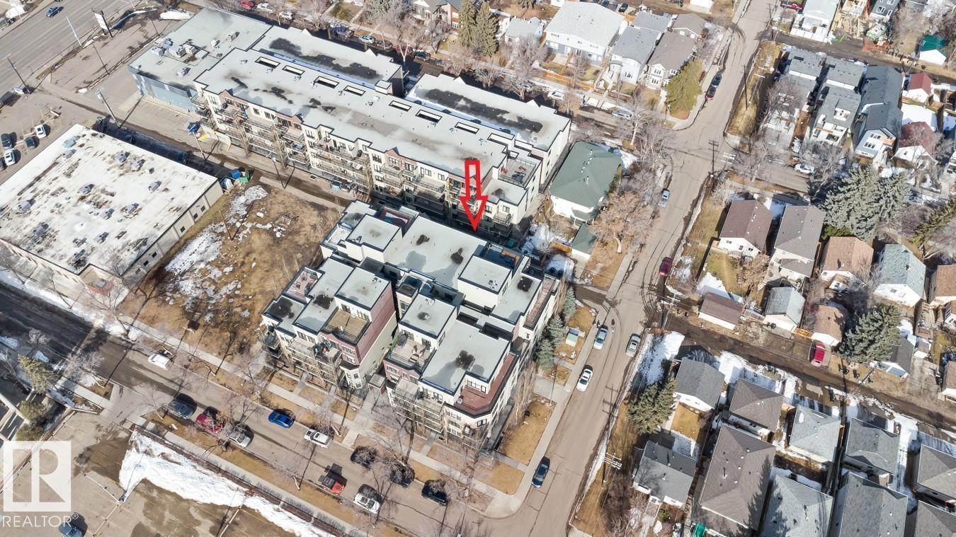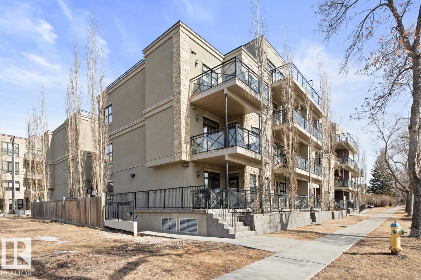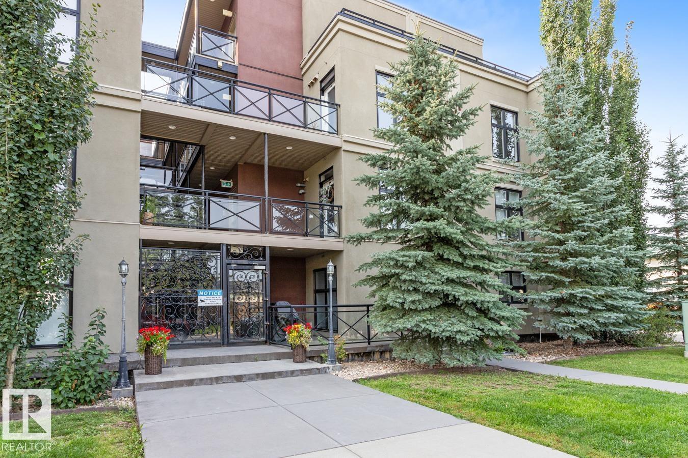 Top floor living in a beautiful Brownstone! This spacious 2 bed, 1 bath open-concept condo offers 9' ceilings, A/C, hardwood floors, fresh paint, and an immaculate interior. The inviting space features a stunning electric fireplace and flows onto a huge private balcony with downtown views - perfect for relaxing or entertaining. Both bedrooms are generously sized, and the large bathroom includes a soaker tub and separate shower. Enjoy in-suite laundry, plus a titled underground heated parking stall with storage cage. Located in a secure, pet-friendly building on tree-lined streets in a sought-after neighbourhood with shopping nearby. Ideal for professionals, students or investors; just minutes to Whyte Ave, U of A, downtown, and the Whitemud. (id:51989)