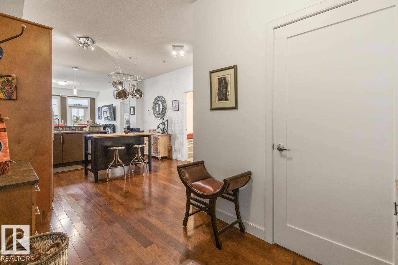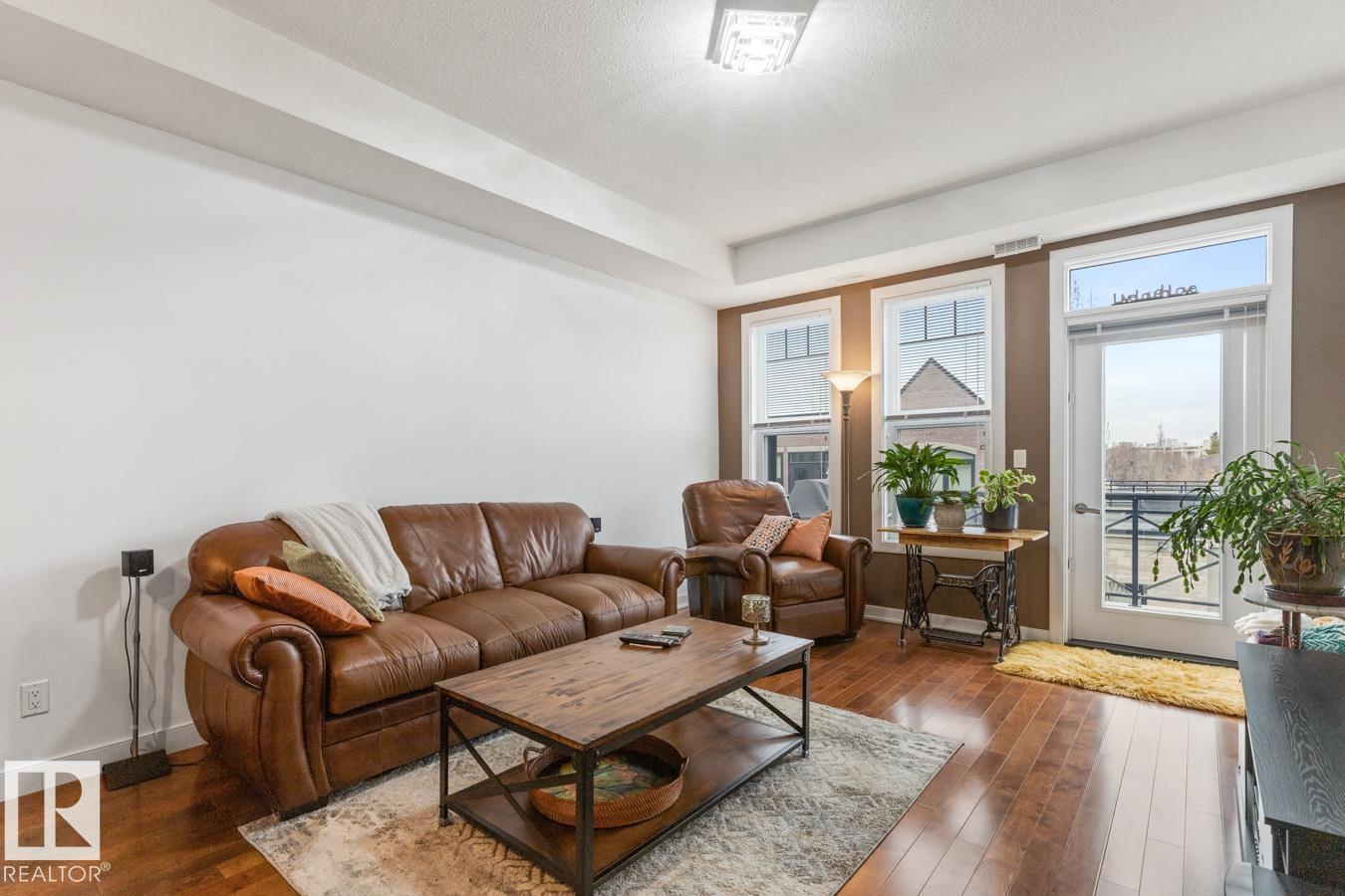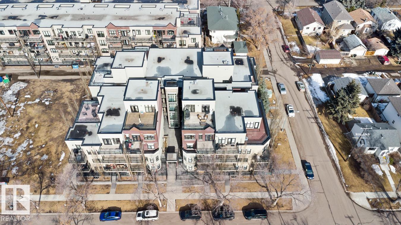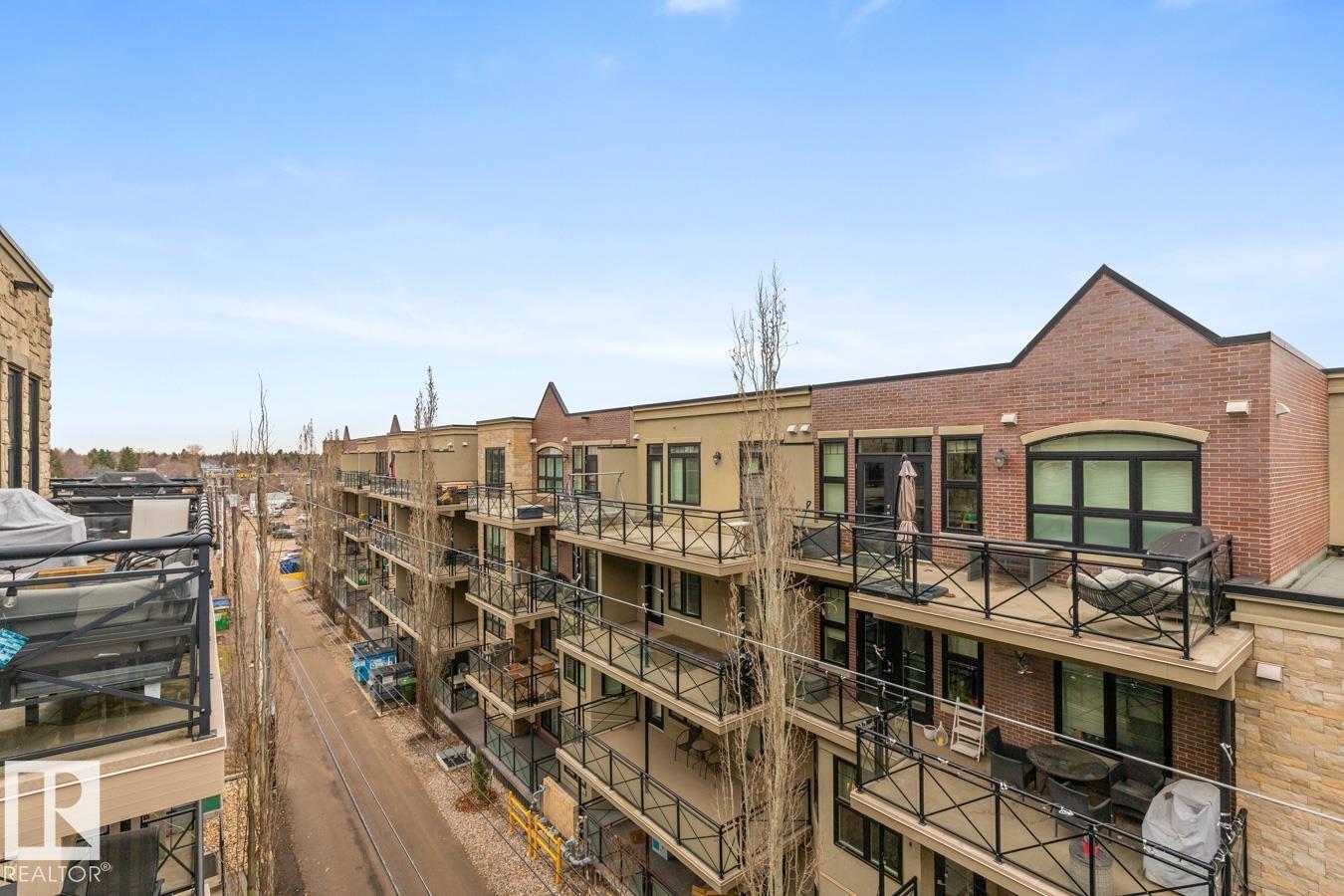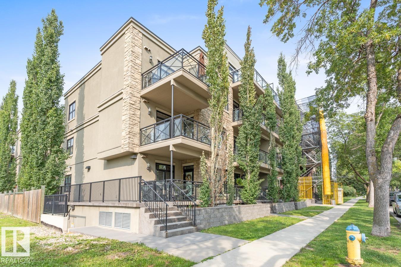 Top floor living in a beautiful Brownstone! This spacious 2 bed, 1 bath open-concept condo offers 9' ceilings, A/C, hardwood floors, fresh paint, and an immaculate interior. The inviting space features a stunning electric fireplace and flows onto a huge private balcony with downtown views - perfect for relaxing or entertaining. Both bedrooms are generously sized, and the large bathroom includes a soaker tub and separate shower. Enjoy in-suite laundry, plus a titled underground heated parking stall with storage cage. Located in a secure, pet-friendly building on tree-lined streets in a sought-after neighbourhood with shopping nearby. Ideal for professionals, students or investors; just minutes to Whyte Ave, U of A, downtown, and the Whitemud. (id:51989)