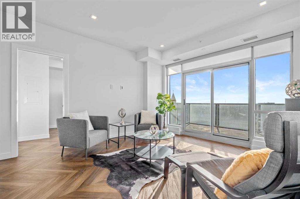 Welcome to Gateway West II – the epitome of urban elegance in West Calgary. This refined residence boasts an enviable location, featuring unobstructed mountain views and a spacious balcony. Nestled in one of Calgary's most sought-after neighbourhoods, you’ll find yourself mere steps from acclaimed dining establishments such as Fergus and Bix, Mercato, Blanco, and UNA. Families will appreciate the proximity to prestigious schools, including Saint Joan of Arc, Waldor, Calgary French and International School, and Rundle, while everyday conveniences like Co-op and other grocery stores are within easy walking distance. Spanning over 1,000 sq ft, the thoughtfully designed open-concept layout includes 2 generous bedrooms and 2 luxurious bathrooms, one of which is a spa-like ensuite. The chef-inspired kitchen caters perfectly to culinary aficionados, complemented by a versatile flex den/dining room space for seamless entertaining. Crafted with high-end finishes and premium appliances, this residence is well-suited for young professionals, growing families, and discerning investors alike. Enjoy effortless access to downtown, the Rocky Mountains, and Stoney Trail, ensuring a harmonious blend of convenience and stunning natural beauty. Additional features include central AC and titled underground parking. Take advantage of amenities such as the Lobby Concierge service, a party/event room, roof top patio, and secure underground visitor parking. Seize the opportunity to claim this extraordinary property and elevate your living experience in Calgary! (id:51989)