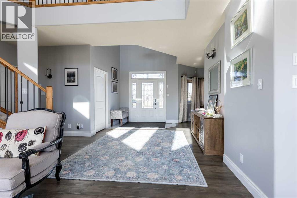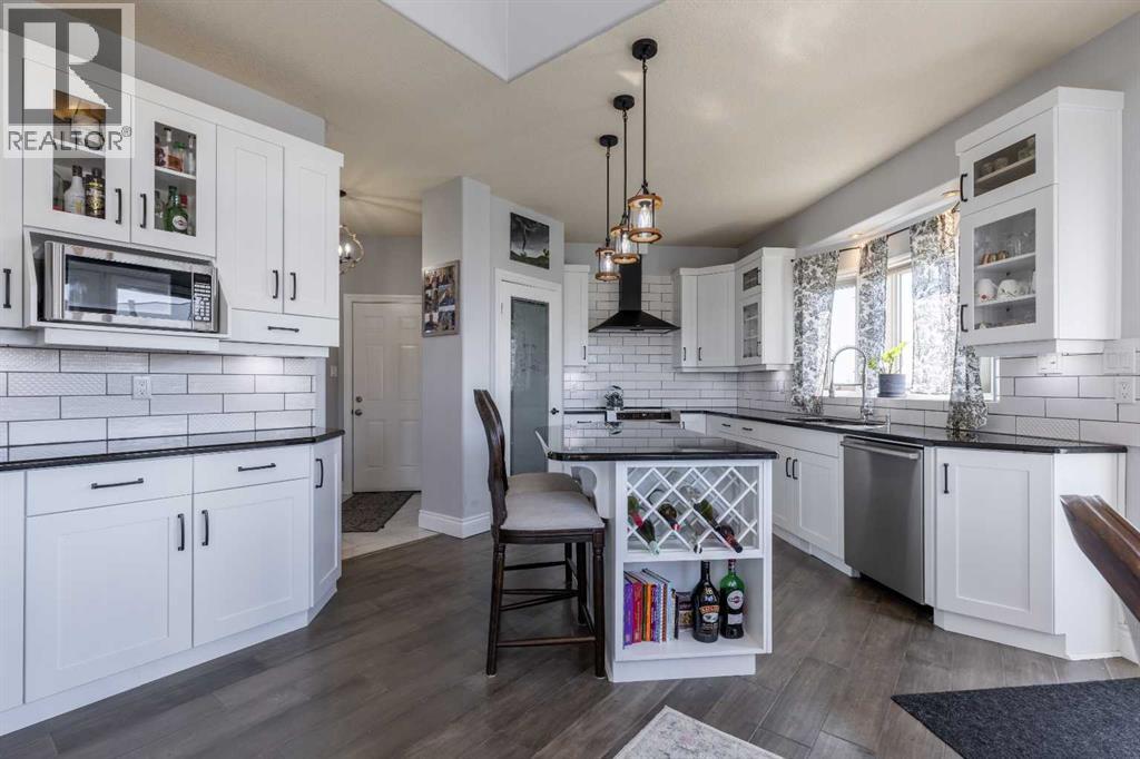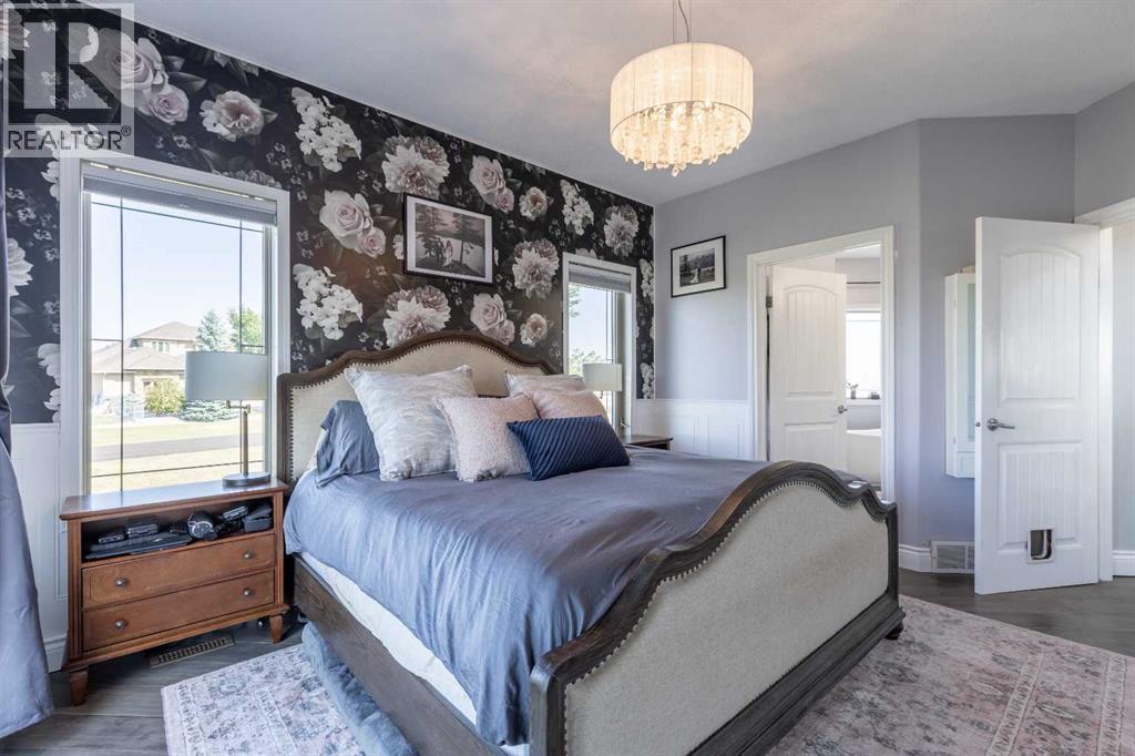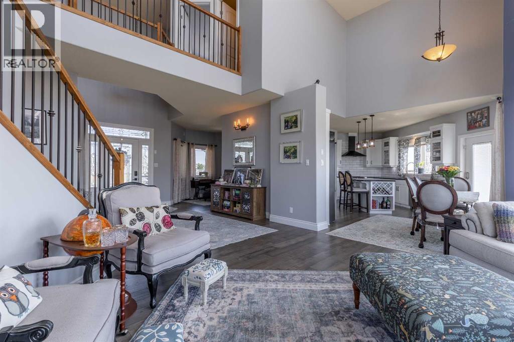 A stunning home in Mountain Meadows - a pristine community just west of Lethbridge that offers unobstructed coulee and mountain views, 1 acre lot size and peaceful country living. This 5 bed, 3.5 bath 2 storey boasts recent upgrades including a newly renovated bathroom and new paint! There's soaring ceilings, a walk-up to grade basement and plentiful parking! Stepping inside the grand entrance, there's an office/flex space, a huge living room with tons of natural light and a gas fireplace, granite adorned kitchen, powder room and walk-through mudroom. The primary suite enjoys a 4 piece ensuite with soaker tub and a massive walk-in closet! Heading upstairs there are 2 additional bedrooms that share a 4 piece bathroom. The basement has 9' ceilings, a bright family room with direct access to the covered patio, 2 more bedrooms, laundry room with sink, 3 piece bathroom and storage space! There's a ton of deck space, a gazebo protected by wind screen, fenced yard and more! (id:51989)
