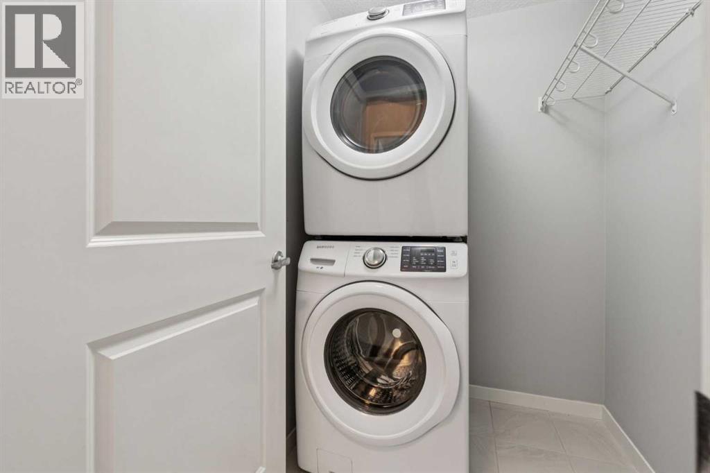 Welcome to The Rise—this bright, top-floor 2-bedroom, 1-bathroom condo offers move-in ready living. Freshly painted with new carpet, the open-concept layout is filled with natural light and complemented by vinyl plank flooring. The sleek kitchen is a standout, featuring quartz countertops, stainless steel appliances, full-height cabinetry, and a classic subway tile backsplash—perfect for everyday living and entertaining. The sunny living area opens to a west-facing balcony with a gas line for summer BBQs overlooking the courtyard. The spacious primary bedroom features a bright west-facing window and a closet, while the second bedroom is ideal for guests, a home office, or a nursery. A 4-piece bathroom and a convenient laundry/storage room complete this fantastic unit. Additional features include a TITLED outdoor parking stall, visitor parking, and plenty of street parking. Enjoy a pet-friendly community with ample outdoor activities including parks and walking paths, plus unbeatable access to Deerfoot and Stoney Trail, the airport, shopping, restaurants, schools, and entertainment. All you need is the key! (id:51989)