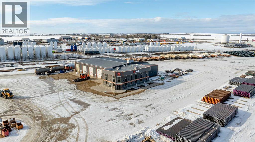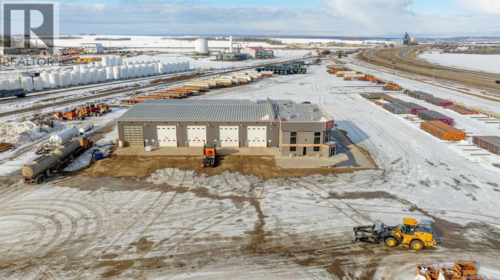 This expansive 75-acre commercial property offers a strategic location and comprehensive infrastructure to meet a variety of business needs. Located with prime access and frontage to Highway 2, and quick connections to Highway 672 and Highway 43, this property is ideal for industrial, logistics, or manufacturing operations.Property Highlights:Main Building (~21,000 sq. ft.): Built in 2014, the main building features over 13,800 sq. ft. of shop space, 5,600 sq. ft. of office space, and a convenient storage mezzanine. Shop has 4 x 100' drive through bays and 1 100' drive through wash bay. Office main floor has 4 spacious offices, a dispatcher room, large lunch room and reception. Upstairs are 6 more offices, another dispatcher room, and a board room.Two Additional Shops (approximately 6000 sq ft combined): These fully equipped, standalone shops provide additional space for operations, complementing the main facility. There is a powered hitching post that is about 800 feet long for plugging trucks in.Rail Spur (4,800 feet.): A dedicated rail spur offers seamless rail access that is TDG certified for shipping and receiving, connecting you to major routes and providing efficient logistics solutions.28 Acres of Pipe Yard: The expansive pipe yard offers versatile storage and handling options for industrial materials.Well-Graveled Site: About 50 acres of the site is fully graveled, offering superior access and usability year-round.Security & Safety: The property is enclosed with chain-link fencing, and yard lights mounted on metal standards ensure security and visibility at all times.This property offers unmatched flexibility with its vast acreage, top-tier infrastructure, and exceptional access to major transportation routes. With rail and highway access, it is the ideal location for industrial or logistics-focused businesses.Contact us today to schedule a tour and explore the potential of this remarkable industrial property! (id:51989)