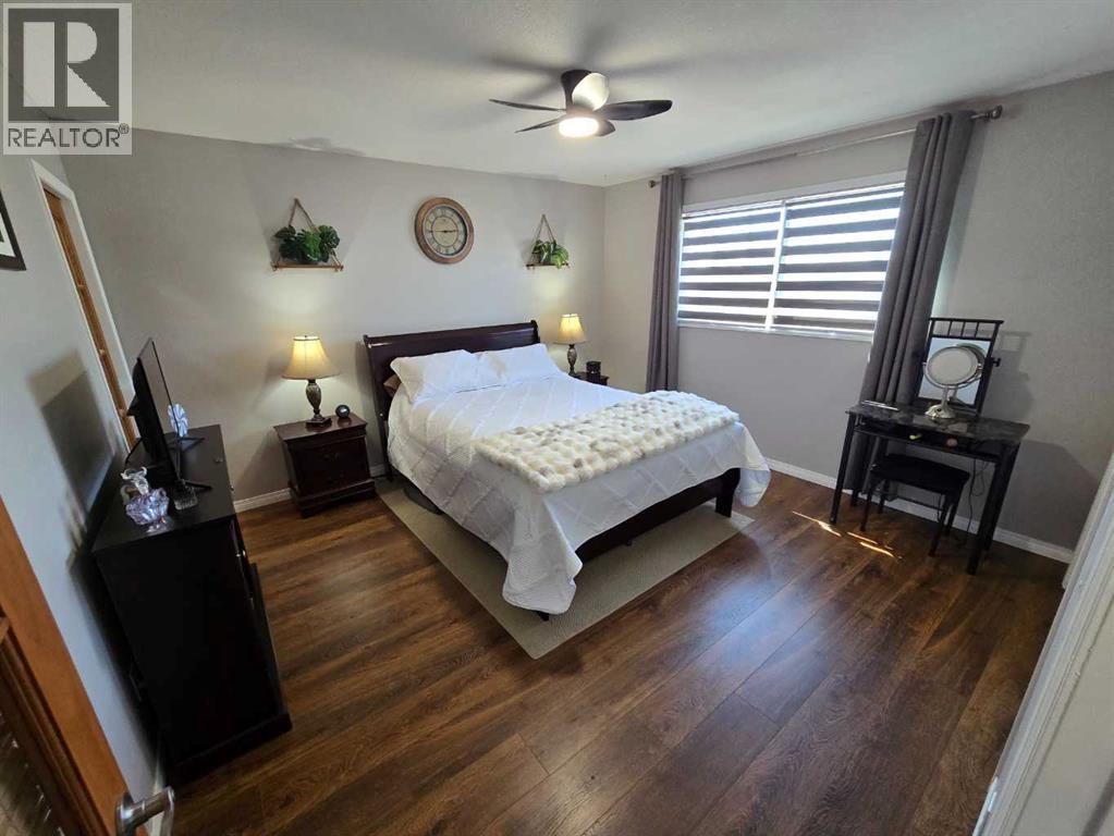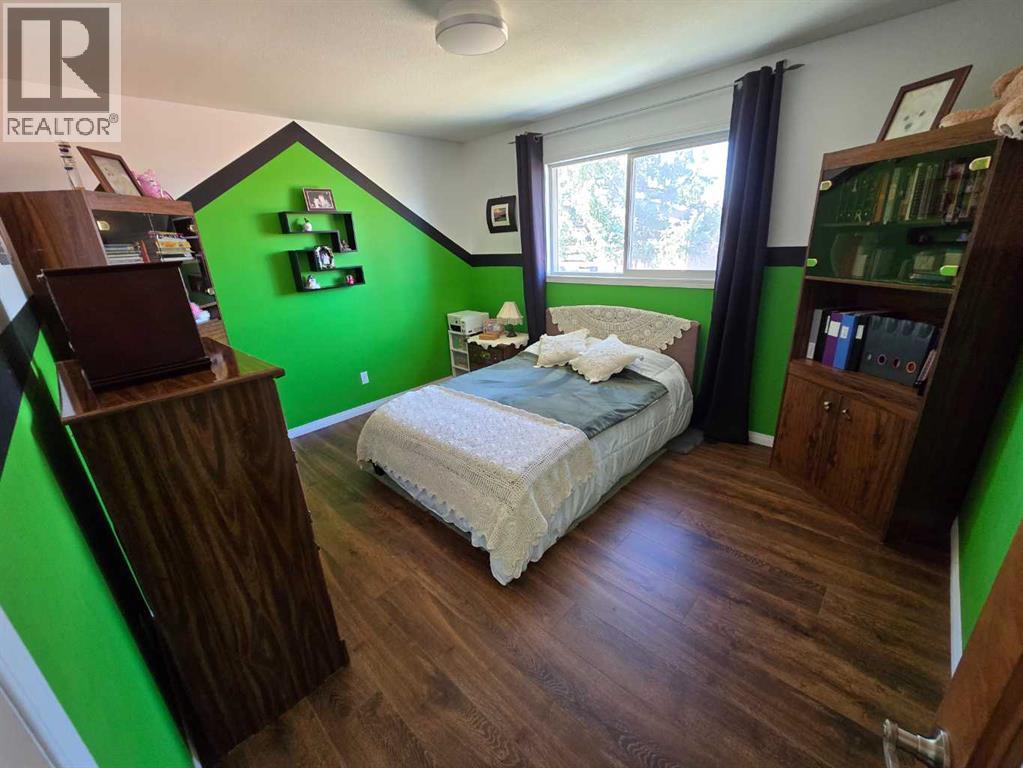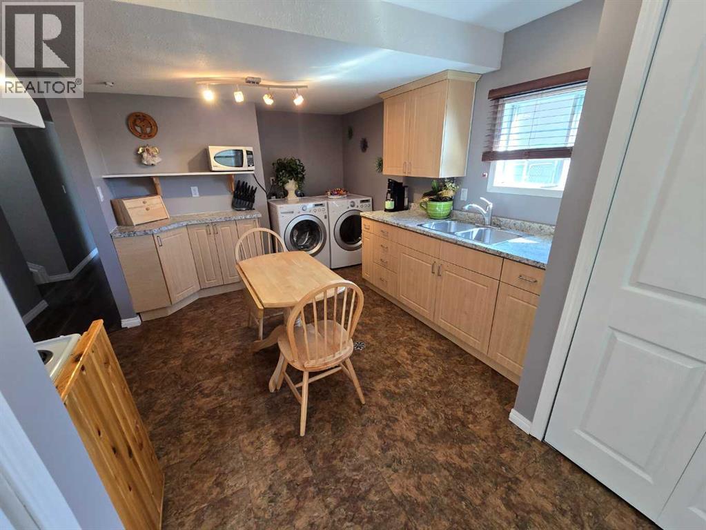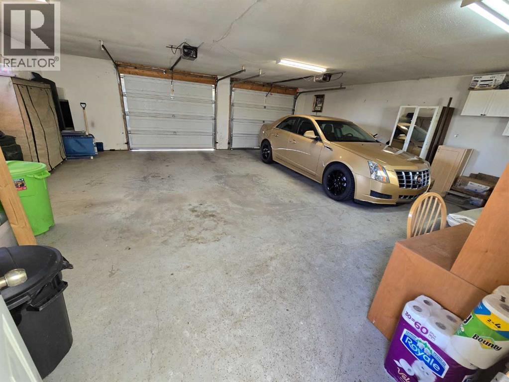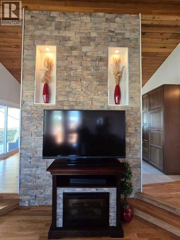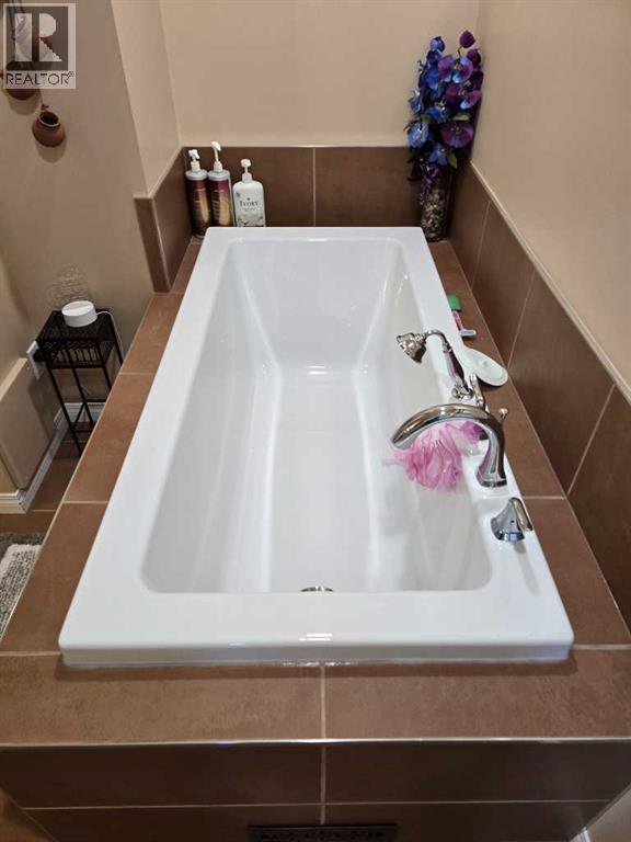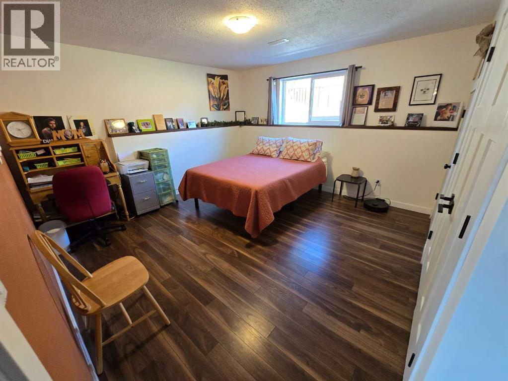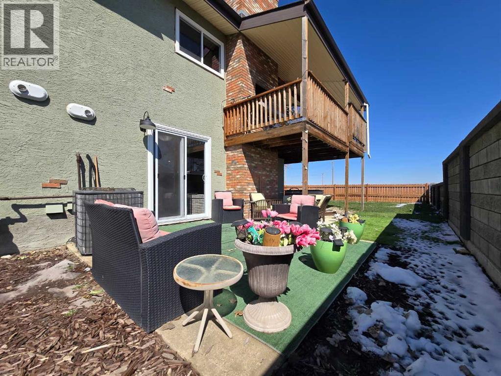 Stunning walkout bungalow with incredible views and standout character! This well-maintained 1979 home offers a bright and open main level with vaulted wood ceilings flowing through the living room, dining area, and kitchen, creating a warm and inviting space full of natural light. The updated kitchen features granite countertops, ample cabinetry, and a functional layout ideal for everyday living and entertaining. The main floor includes two bedrooms and a beautifully updated bathroom complete with a tiled shower and separate soaker tub. The fully developed walkout basement offers excellent flexibility with a second kitchen, spacious family room with brick feature wall, two large bedrooms, and a bathroom with jetted tub. With its own entrance near the garage as well as patio access, this space is perfect for extended family, a mother-in-law setup, or future suite potential. Step outside to a large wrap-around deck spanning the width of the home, complete with a built-in brick fireplace/BBQ—an ideal spot to take in the unobstructed views toward Medicine Hat and beyond, with no neighbours directly in front. Additional features include a 26’ x 28’ double detached garage with finished interior and electric heater, double concrete driveway plus extra parking, underground sprinklers, and a spacious yard. The exterior offers a combination of stucco and wood siding for added character. Additional updates and features include hardwood flooring, a high-efficiency furnace (2024), tankless hot water system (2023), and many vinyl windows, with only a few original aluminum windows remaining. A truly unique property offering space, versatility, and spectacular views—far from cookie-cutter. (id:51989)