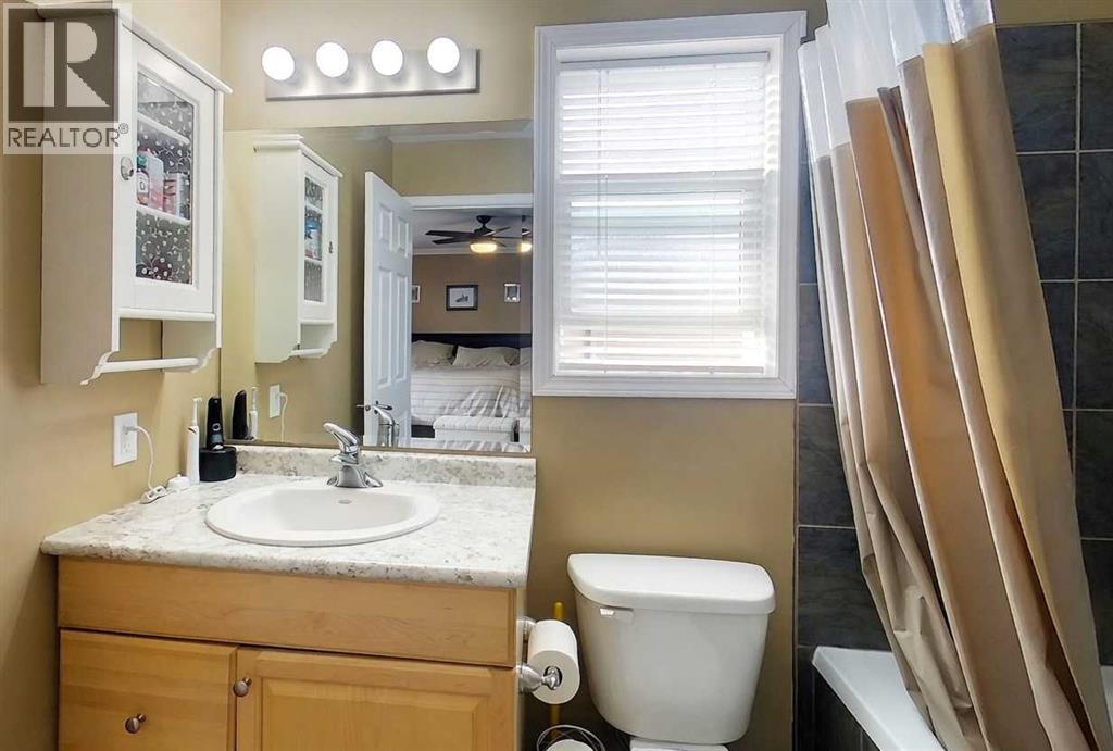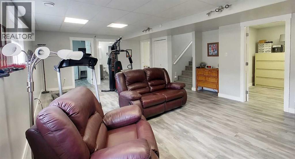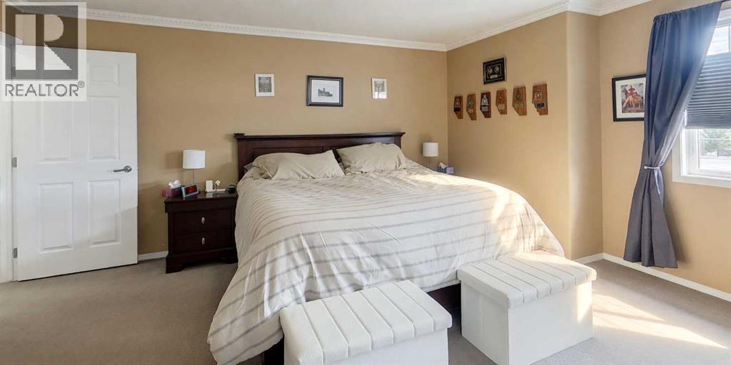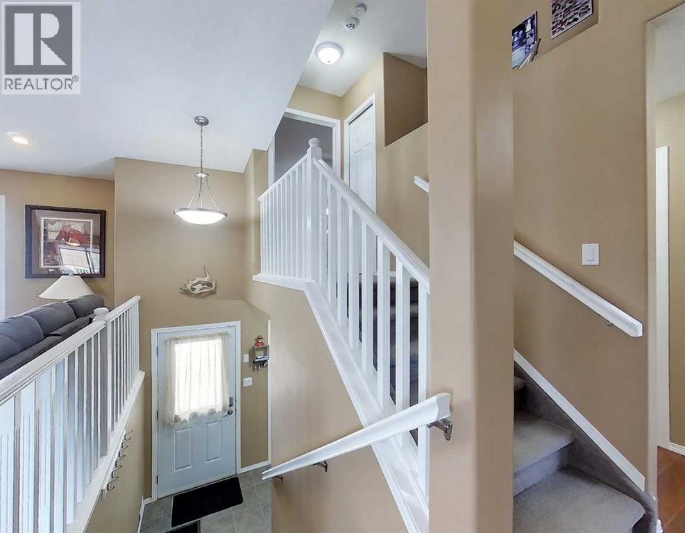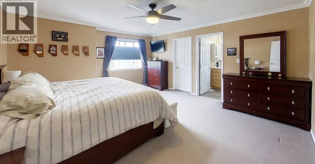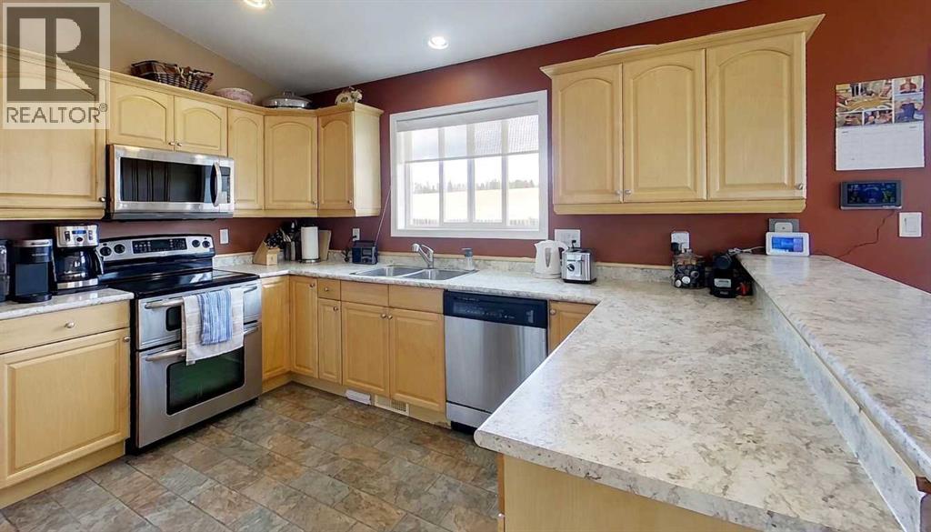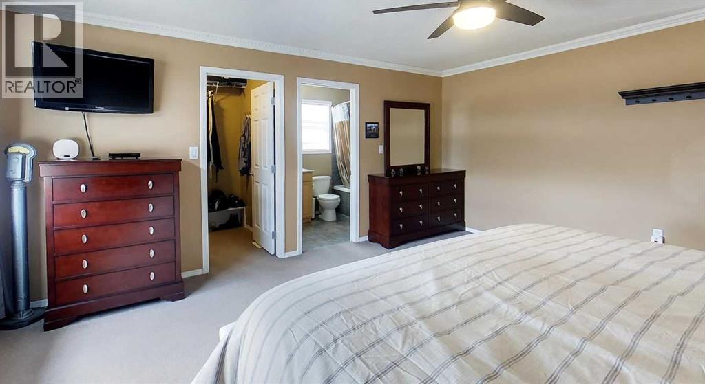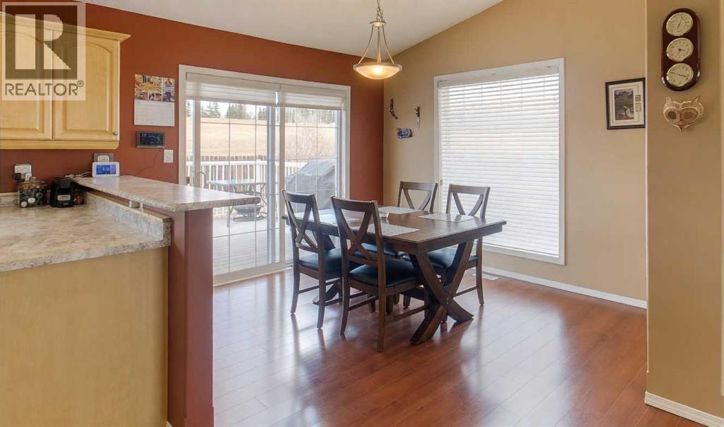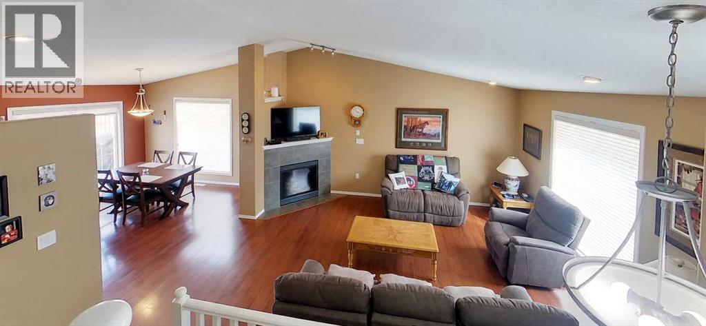Beautifully updated modified bi-level located on the north side of the family-friendly Hillendale subdivision. This spacious home offers 5 bedrooms, 3 bathrooms, and a bright, open-concept layout—perfect for growing families and entertaining. The main floor features a welcoming living room with a cozy gas fireplace, a dining area, and a well-appointed kitchen complete with a corner pantry, breakfast bar, and ample cabinetry and counter space. Two bedrooms and a 4-piece bathroom complete this level. The upper level is dedicated to the oversized primary suite, showcasing a walk-in closet and a private 4-piece ensuite. The fully developed basement adds even more living space with a large family room, two additional bedrooms, a 3-piece bathroom, plus laundry and utility areas. Step outside to enjoy the 12’ x 14’ composite deck and fully fenced yard, complete with a large storage shed. The property also offers a triple concrete driveway and convenient RV parking along the west side of the home. Recent upgrades include stainless steel appliances, custom window coverings, new kitchen countertops, a high-efficiency furnace with central air conditioning (2022), and brand new shingles (March 2026). Ideally located within walking distance to schools, the hospital, and the town’s trail system, with quick access to all amenities. (id:51989)
