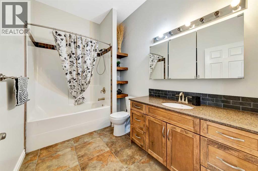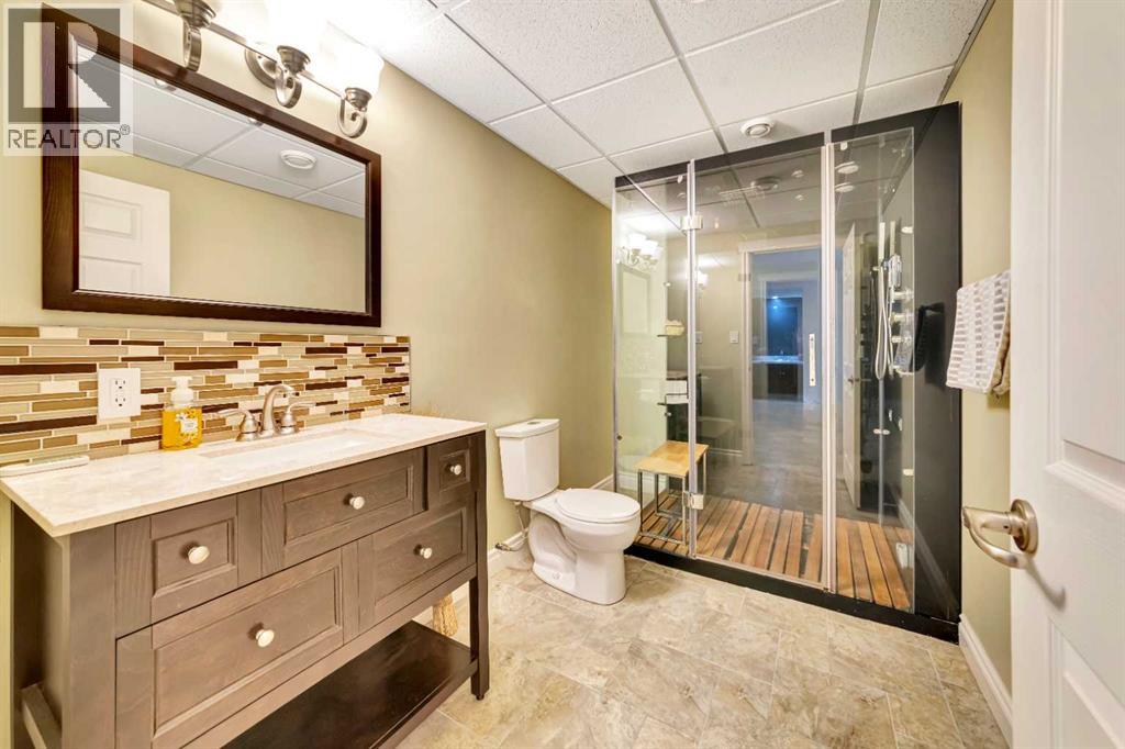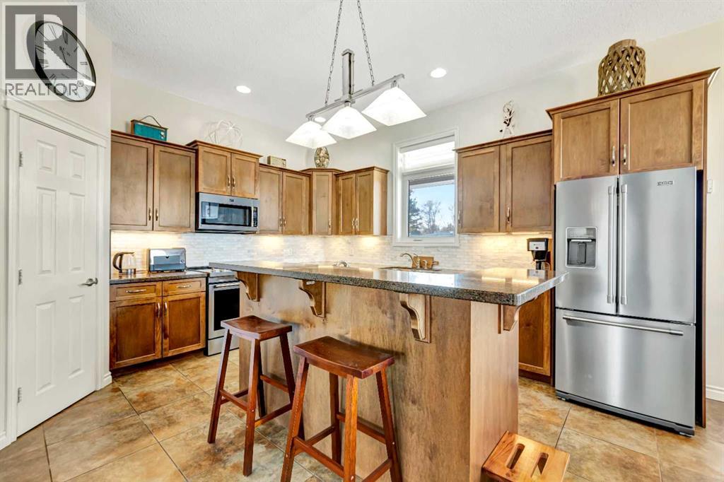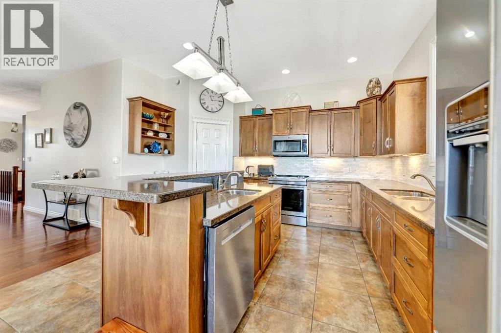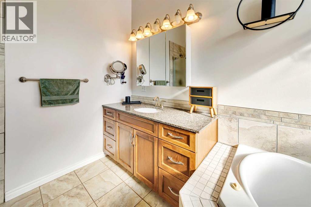 Welcome to this thoughtfully crafted custom bungalow, seated on a generously sized lot with a expansive backyard. This five-bedroom, three-bath home delivers over 1,800 square feet of refined main-floor living, blending comfort, style, and ample space for family life.From the moment you enter, you’ll notice a distinctive, open layout that connects living, dining, and kitchen areas and a two-sided fireplace separating the living and dining rooms giving the space a cozy, home feeling. Soaring ceilings and wide windows flood the space with natural light, creating an inviting, sunlit ambiance. The kitchen offers abundant cabinet storage, pantry and quartz counter tops. The dining room has access to the massive covered back deck the runs the entire length of the back of the home. Five versatile bedrooms accommodate various needs, with the primary suite featuring a private ensuite for a tranquil retreat and access to the back covered deck. The main floor also features a large laundry room and access to the 21x23 attached heated garage. The fully finished basement expands your living space with a large recreation area, a flex space that is wired to be a theatre room, small kitchen space, two sizable bedrooms, and another bathroom with steam shower. Step outside to the expansive backyard—whether you envision a lush landscape, a play zone for kids & pets, or an entertainer’s oasis, this large lot provides endless possibilities. Enjoy the convenience of the location with easy access to shopping, restaurants, Bud Miller Park and local schools. This home also features fresh paint, new central air conditioning, an ICF basement construction and ample parking, including generous RV parking on the MASSIVE lot. (id:51989)