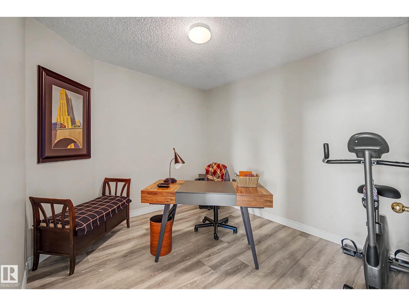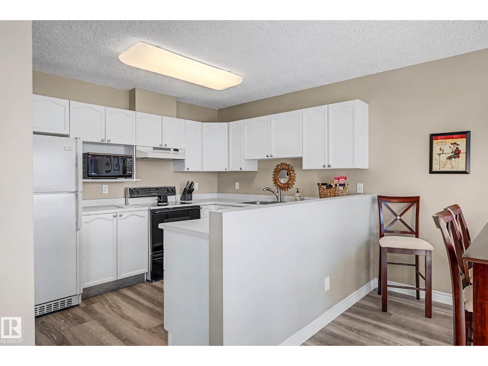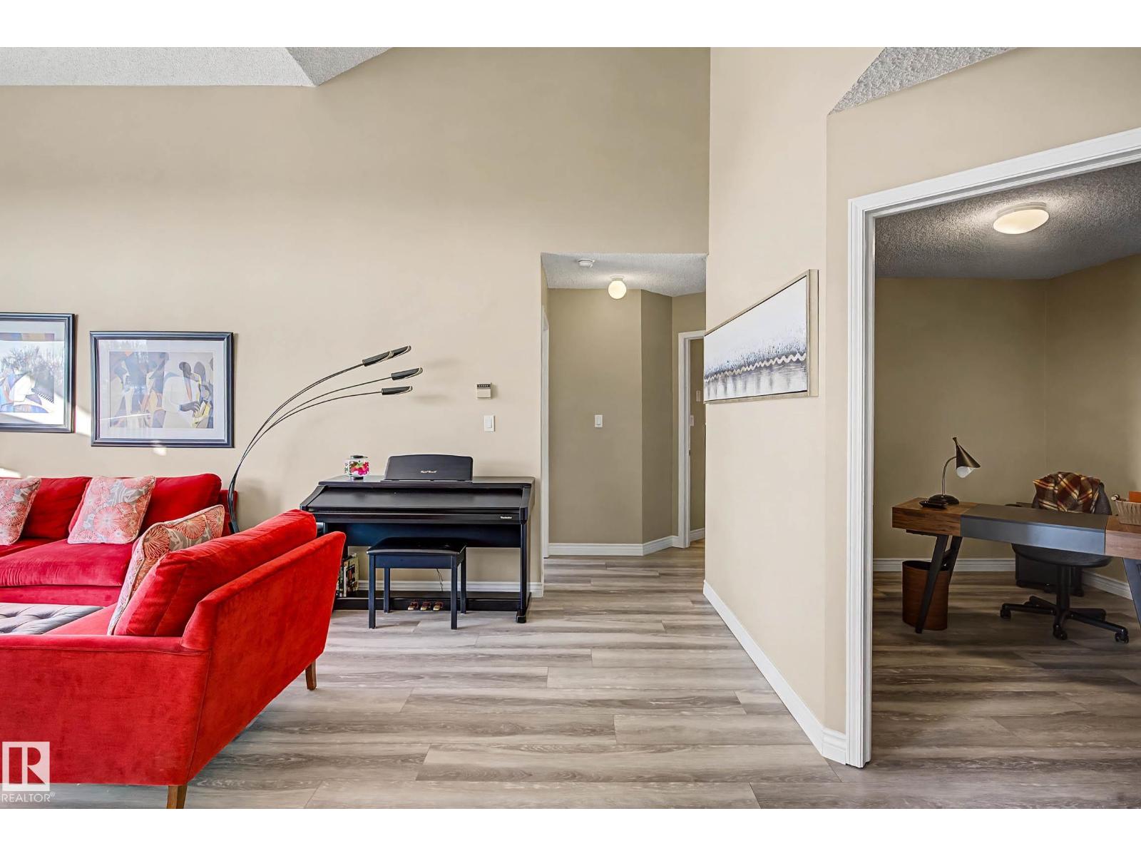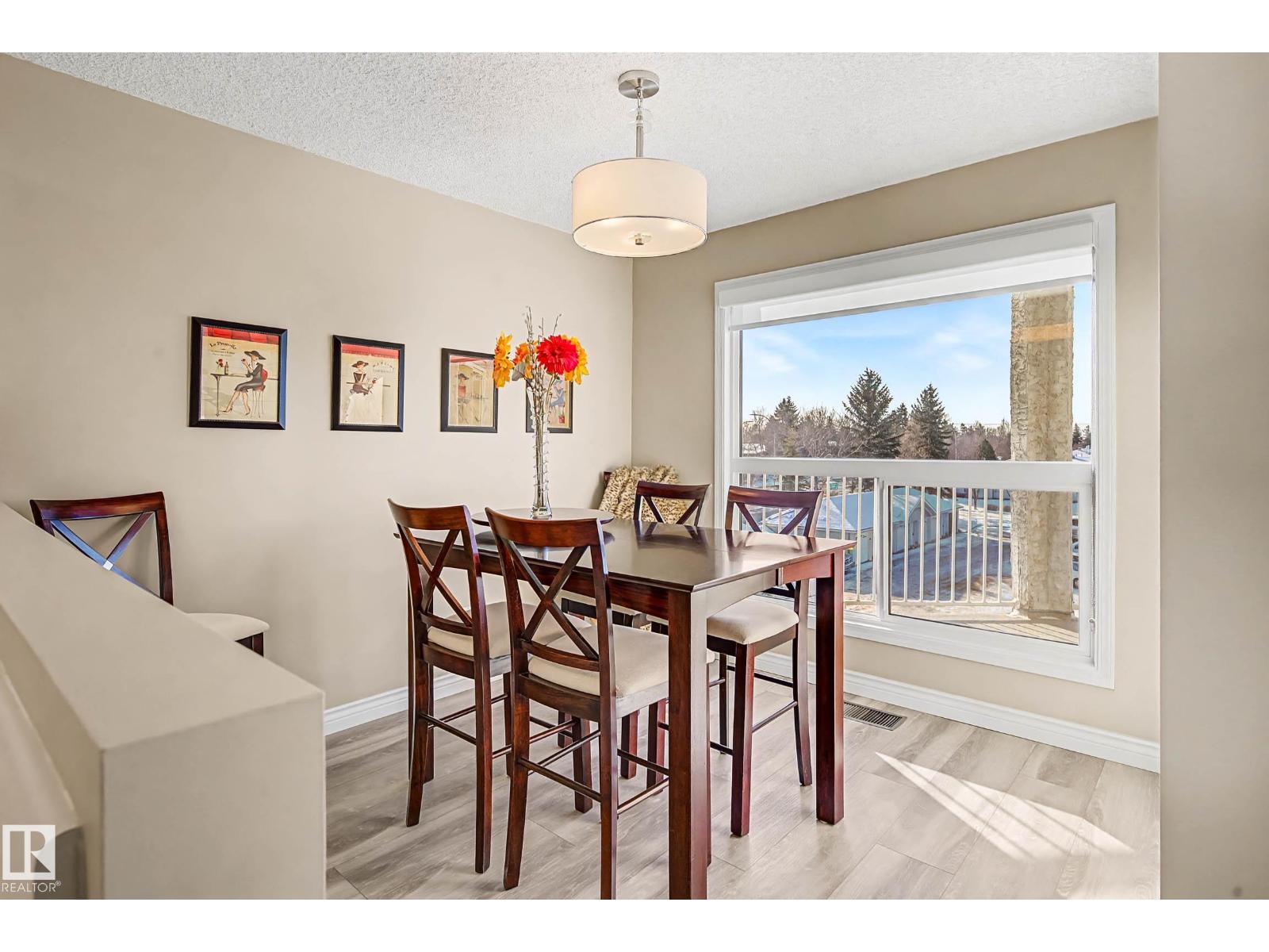 Wow! Top floor (4th) upgraded condo with soaring vaulted ceilings. The south exposure and large windows (including upper clerestory windows) combine to fill this home with light all day. Add this interior to the large south exposure deck and sunshine reigns supreme! Gas BBQ line to deck. This 1 bedroom plus den unit is immaculately kept exuding gracious living. Newer Luxury vinyl plank floor floor & fresh paint makes this home feel like new. Large living room with gas fireplace enjoys the spacious beauty of the windows and vaulted ceiling. Warm winter nights with cozy fireplace and cool summer days with the central air conditioning make this home a year round pleasure. Well planned kitchen and spacious dining room adjoin the living room. Great functional floorplan for entertaining and everyday living. Primary bedroom also enjoys the south view and light. Your personal den/office space is great flexible space Single car GARAGE plus one assigned energized outdoor stall complete this fantastic package. (id:51989)